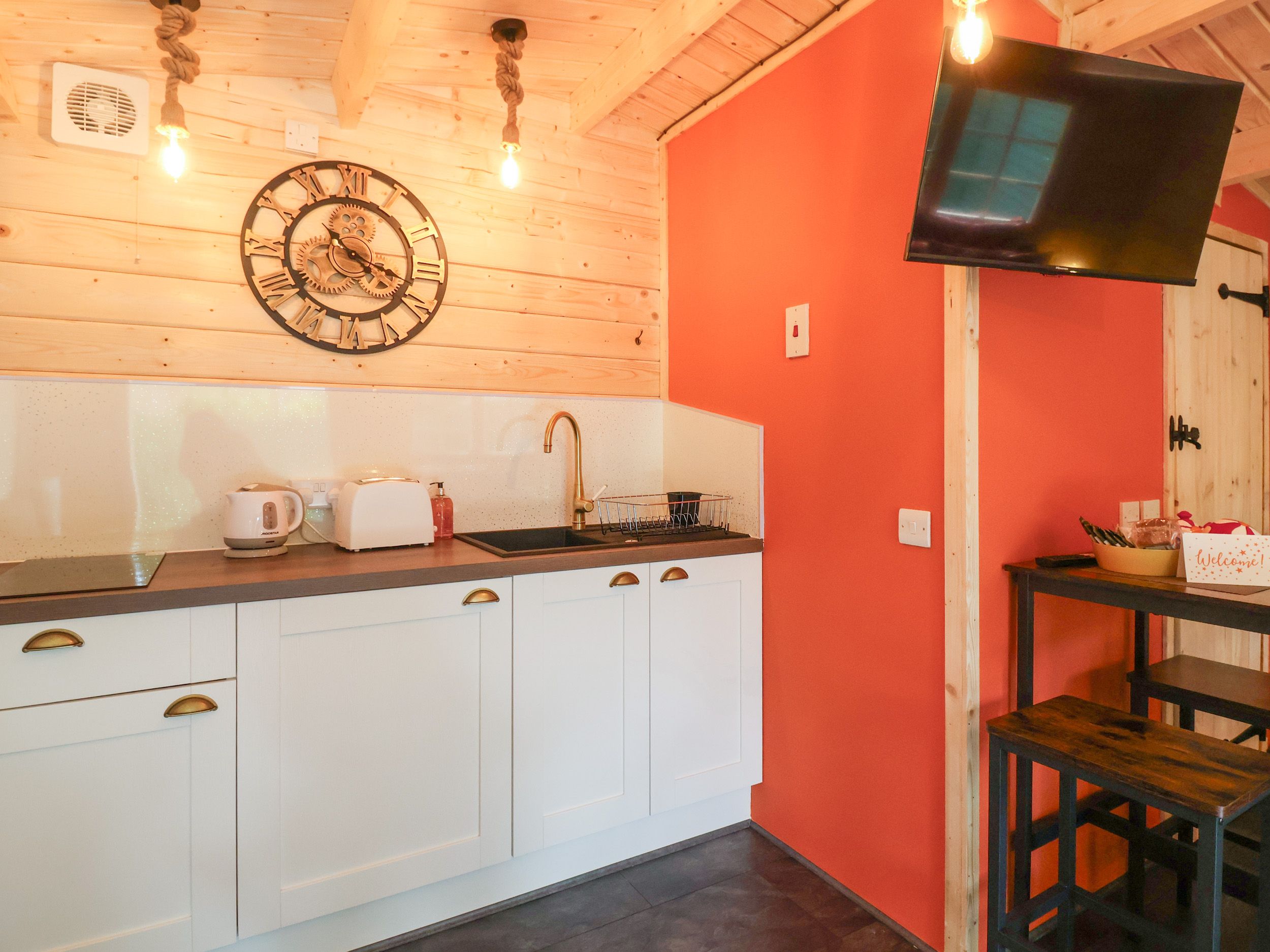 Holiday home Log Cabin - Amber Glow is a single-storey holiday cabin, that consists of a studio style living space with a kitchen area with electric hob, microwave, fridge, kettle, and toaster, a dining area with dining seating for 2, and a sitting area with TV along with a double bed, plus a sofa bed sleeping 2. There is a wet room with walk-in shower, basin and WC. Outside, there is an enclosed patio with furniture and off-road parking for two cars. Sorry, no smoking. One well behaved dog welcome. You can find a shop in 3 miles and a pub in 2.9 miles. WiFi, fuel, power, bed linen and towels are all included in the price. Whatever the weather, a wonderful stay awaits at Log Cabin - Amber Glow. Note: Check-in from 4 pm, check-out by 10 am. Additional double sofa bed, sleeps 2