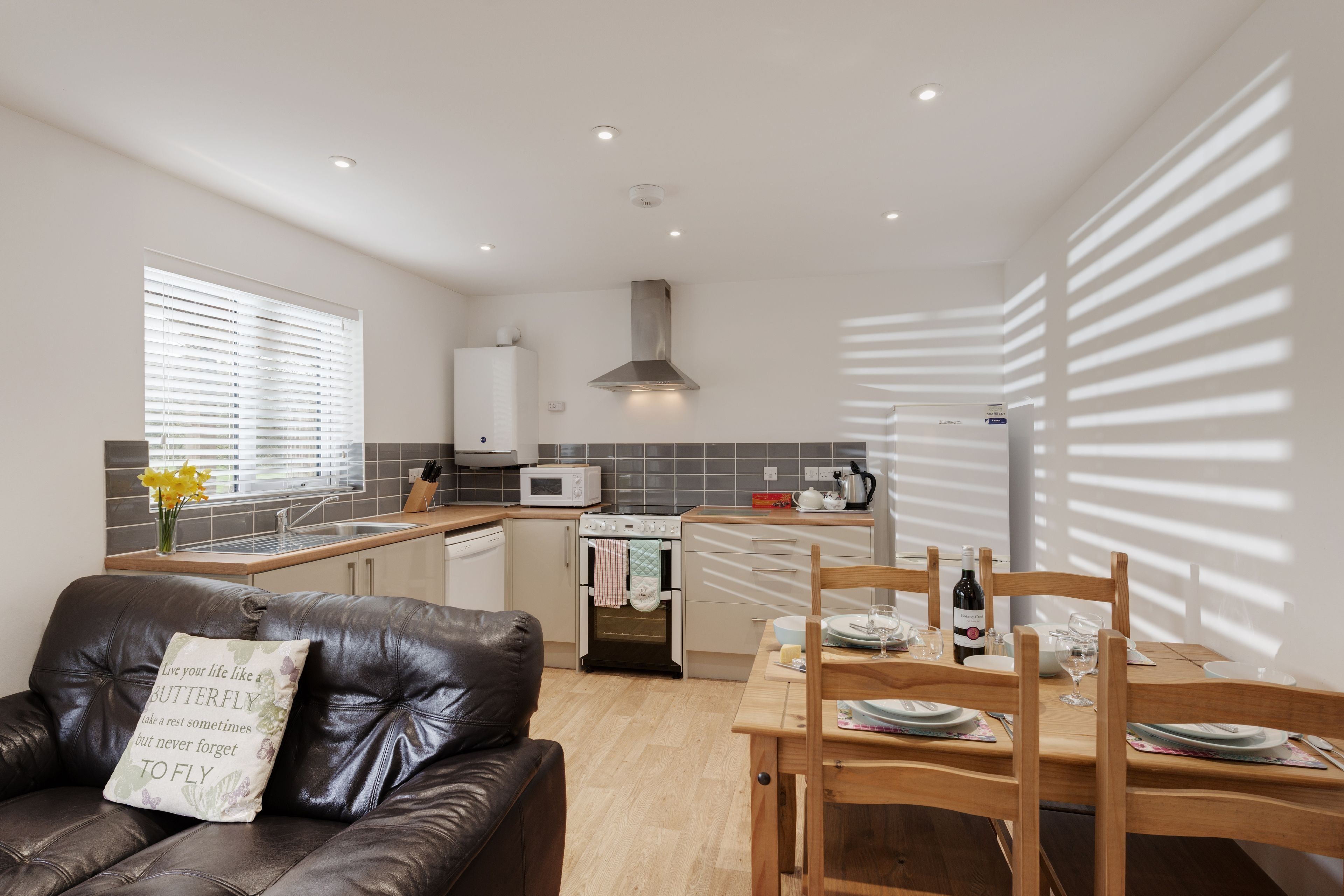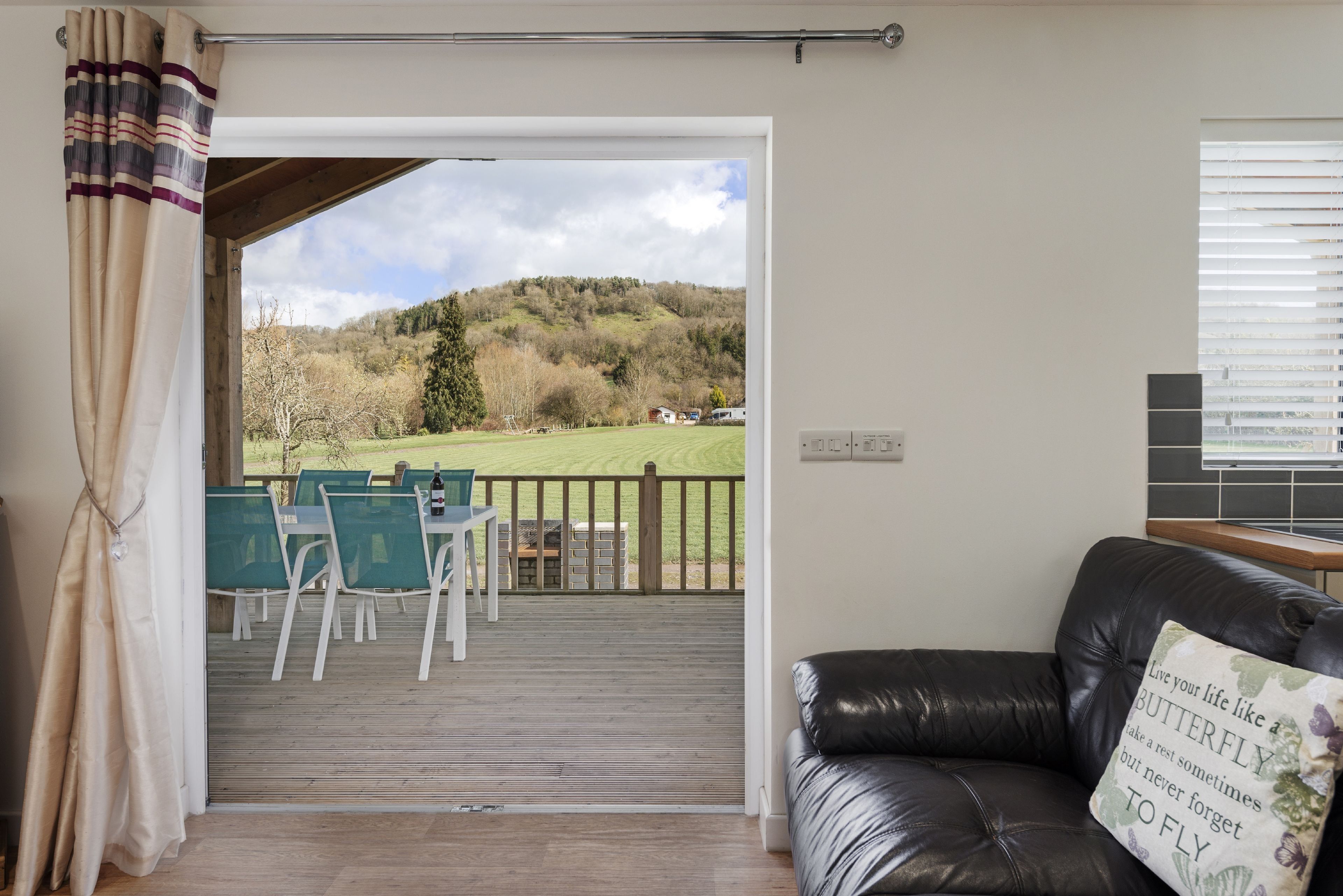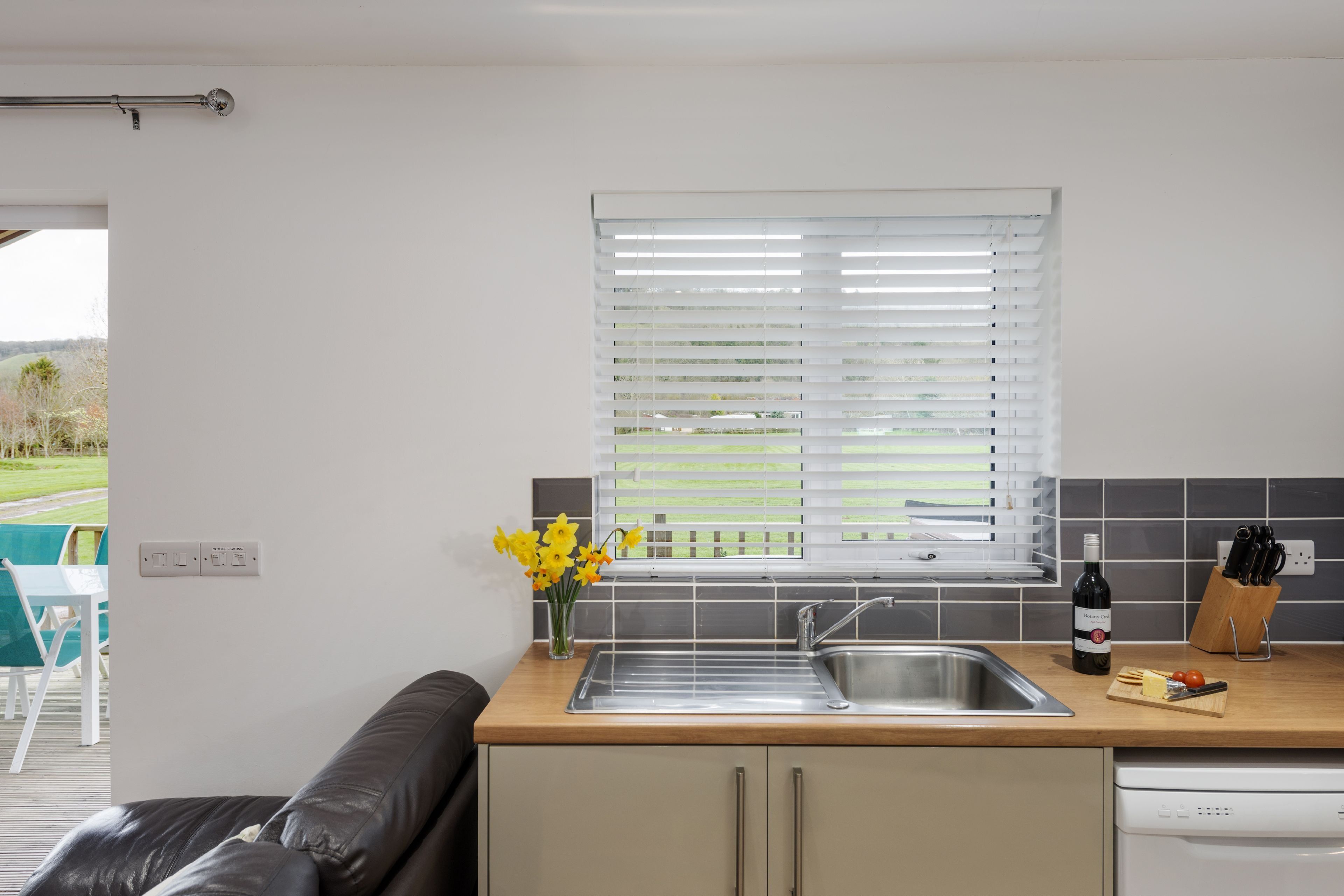 Living areaOpen plan with the kitchen and dining area with access to the decked terrace. Two sofas seating four and Flatscreen TV with Freeview. KitchenOpen plan with dining and living area with access to the decked terrace. Double gas oven with gas hob, microwave, fridge freezer and dishwasher. DiningOpen plan with the kitchen and dining area with access to the decked terrace. Dining table with four chairs. Master BedroomKing size bed, wardrobe and dressing table. En-suite. Bedroom TwoTwin zip and link beds that can be made up as a king size bed if requested at the time of booking. Wardrobe and dressing table. En suite. Family bathroomEn suite to master bedroom has a walk-in shower cubicle, WC and wash basin. Bathroom TwoEn suite to bedroom two has a walk-in shower cubicle, WC and wash basin. OutdoorsDecked terrace to the front of the property with a table, chairs and private hot tub. Parking for two cars next to your lodge.
