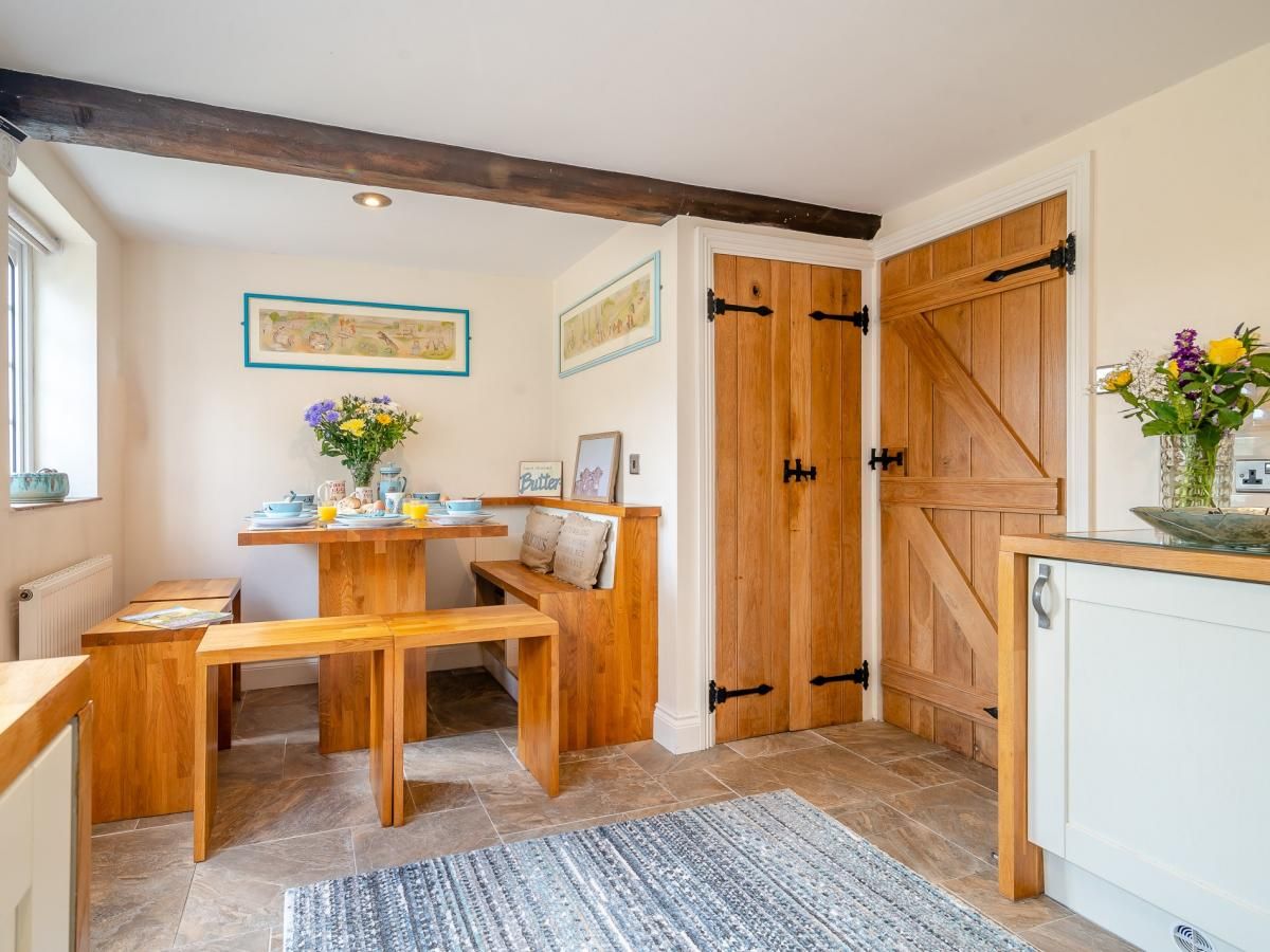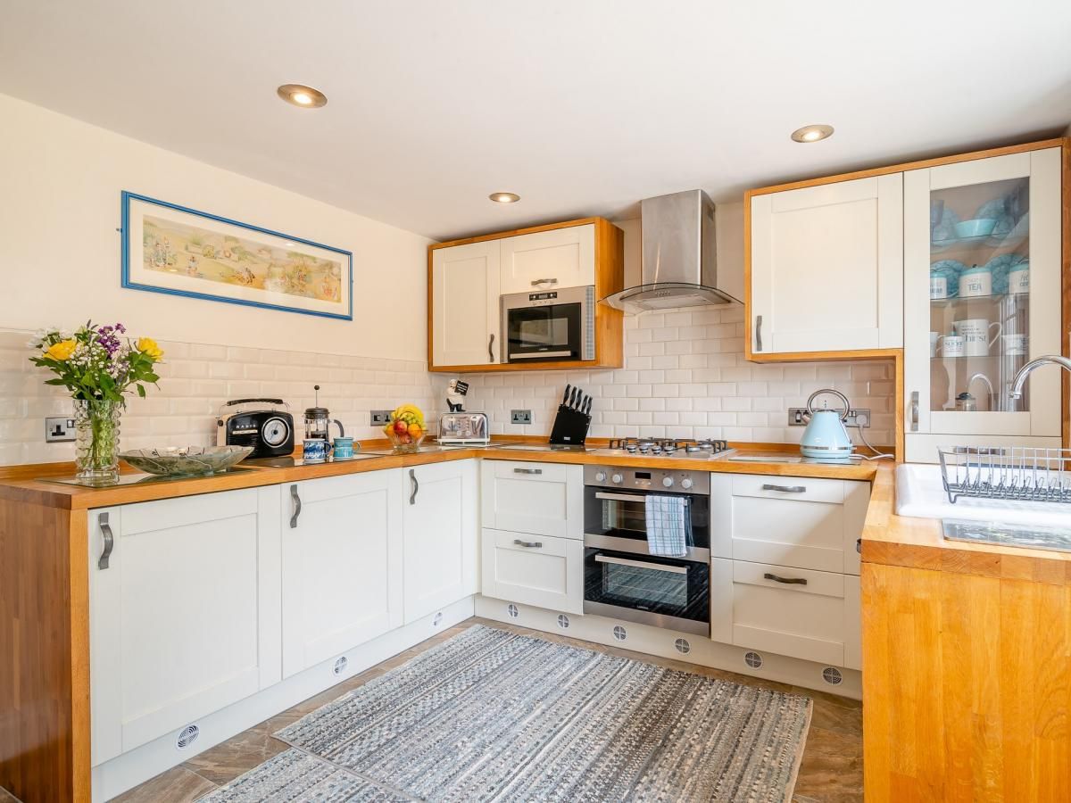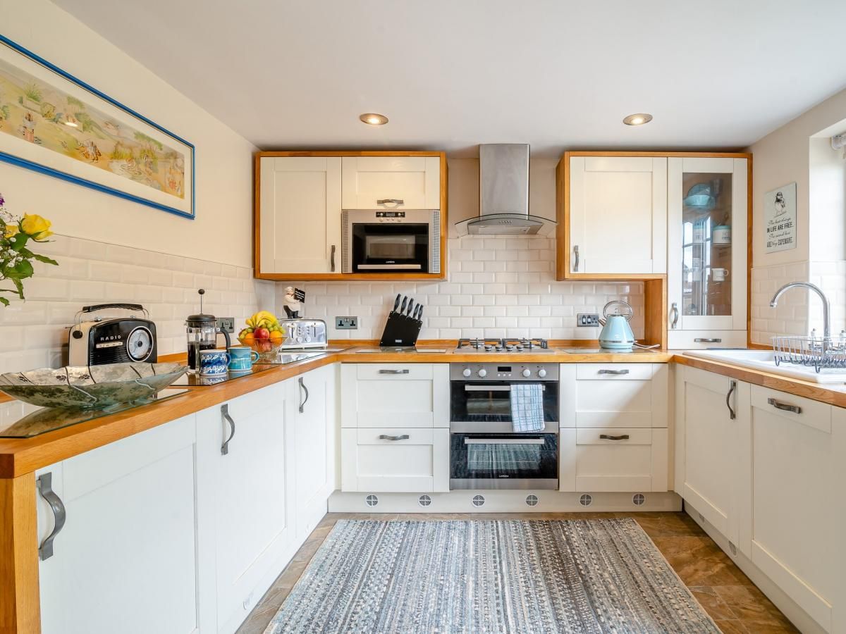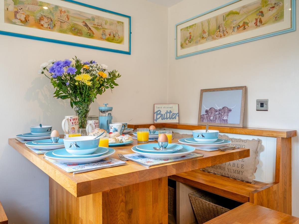 On entering the detached property from the parking area, you are met by a stylish kitchen/diner. The kitchen area is well-equipped with an electric oven and gas hob, fridge, freezer, microwave and dishwasher.
