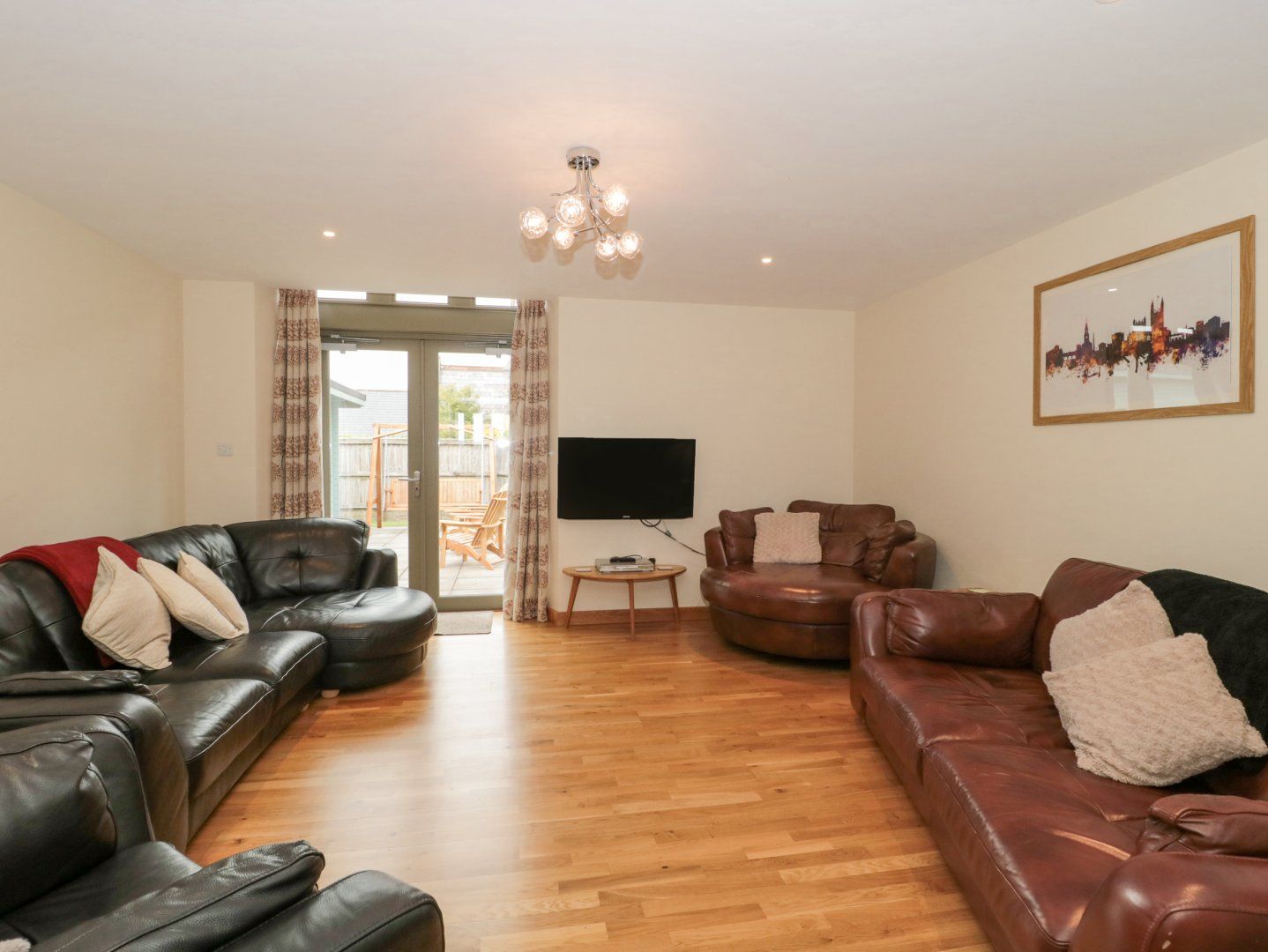 Accomodation Details Four bedrooms: 1 x super-king-size (zip/link, can be twin on request) with TV and en-suite bathroom with bath, shower over, basin, heated towel rail, and WC, 2 x super-king-size (zip/link, can be twin on request), 1 x twin (zip/link, can be super-king-size on request). Bathroom with bath, walk-in shower, basin, heated towel rail, and WC. Ground-floor wet room with shower, basin, and WC. Kitchen/diner. Utility. Sitting room. Snug. Games room