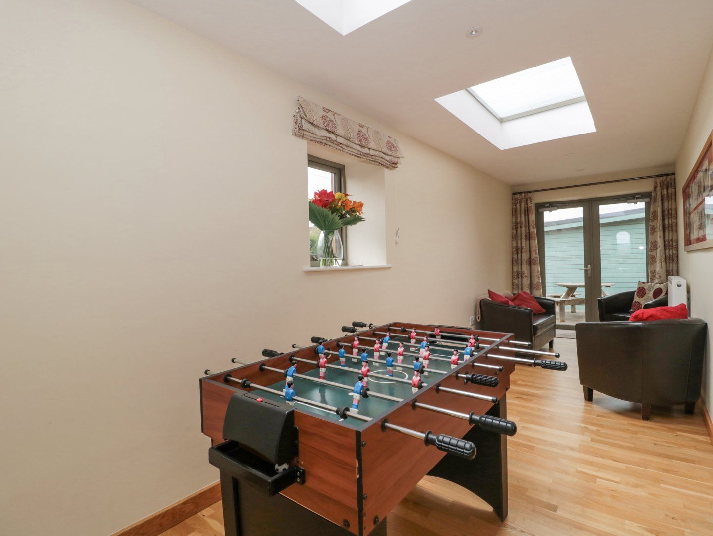 Holiday home The living areas in this home consist of a kitchen/diner with an electric oven and hob, microwave, two fridge/freezers, and a dishwasher, a utility with washing machine, a sitting room with Smart TV, a snug with Smart TV and foosball table, and a games room with a multi-top games table and a selection of games. The bedrooms consist of three super-king-size (zip/link), one with TV and en-suite, and a twin (zip/link), serviced by a bathroom and a ground-floor wet room. Outside there is an enclosed rear garden with lawn, patio, furniture, barbecue and an outhouse with hot tub, and a private driveway for four cars. This is a pet-free and smoke-free home. WiFi, fuel, power, bed linen and towels are all included in the price, along with a highchair and two travel cots. You'll find a shop in 0.6 miles and a pub in 0.3 miles. For a fabulous base in Somerset, book The Old Schoolrooms. Note: There are steps to the exterior; please take care.