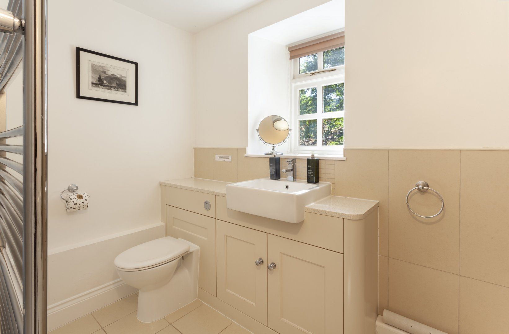 1 bedroom (one large first floor double attached to bathroom with bath/shower over, toilet, and hand basin) Modern, well-equipped ground floor kitchen with cooker, fridge, freezer, microwave, toaster, plus broad range of cooking equipment, pots and pans, and crockery/cutlery/glassware Spacious ground floor sitting room with dining table and electric wood burner Bed linen and towels provided. (Please bring own beach towels for day trips) Wifi, central heating, and electricity included in cost Up to two dogs welcome (supplement of £15 per dog) Beautiful grounds with a fantastic array of magnificent trees, including some of England's oldest and largest—a horticulturist's dream! French doors from kitchen open onto enclosed gravel patio area with picnic bench Property also features grass area with comfortable loungers Pedestrian gate at end of garden leads over small bridge to fields with right of way along hedge-line leading to woodland on lower slopes of Dunkery. Separate laundry room shared with adjoining property, containing washing machine and clothes dryer Parking available for one car on driveway, just a short walk from the front door