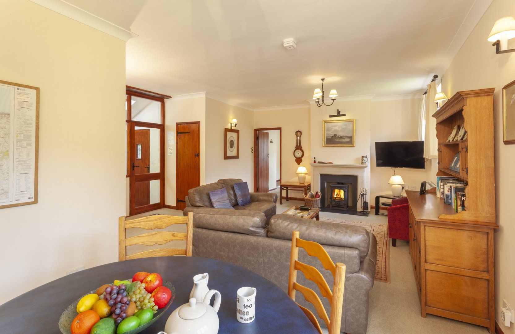 The first floor is accessed from the rear of the property through the boot room/cloak room with stone tiled flooring. A glassed doorway leads to a spacious living room/dining room with wood-burning stove, TV, DVD player and CD player/radio and free wifi is available throughout the cottage. The large window takes advantage of the far-reaching valley views. The staircase has a stair gate.