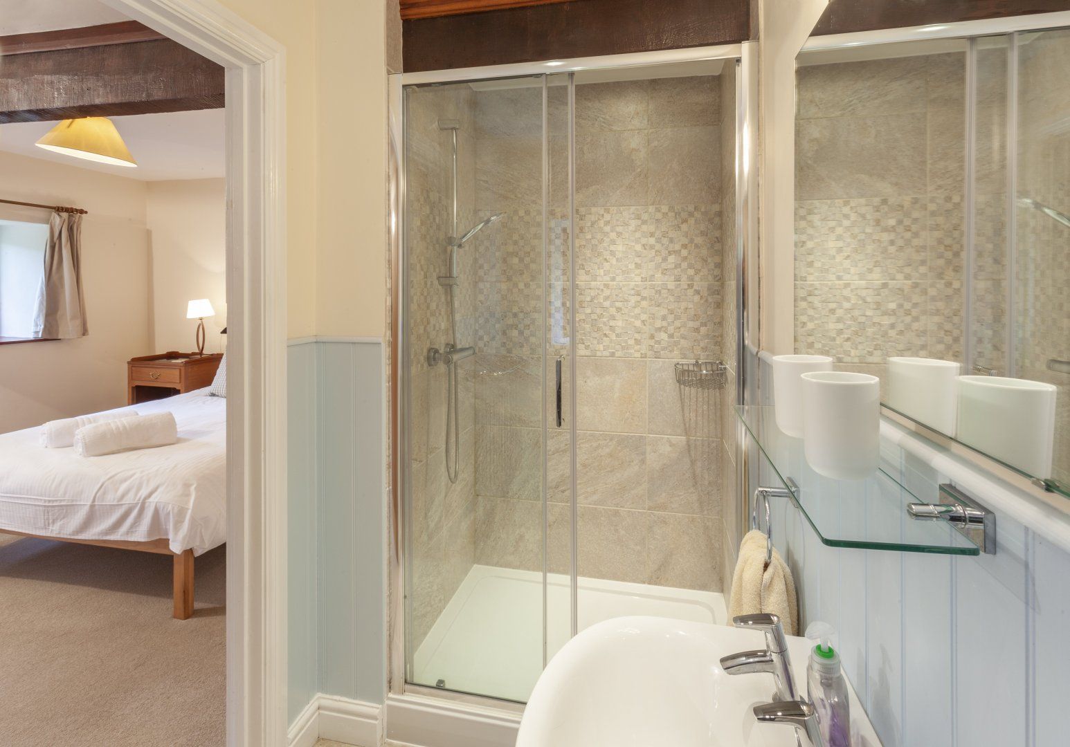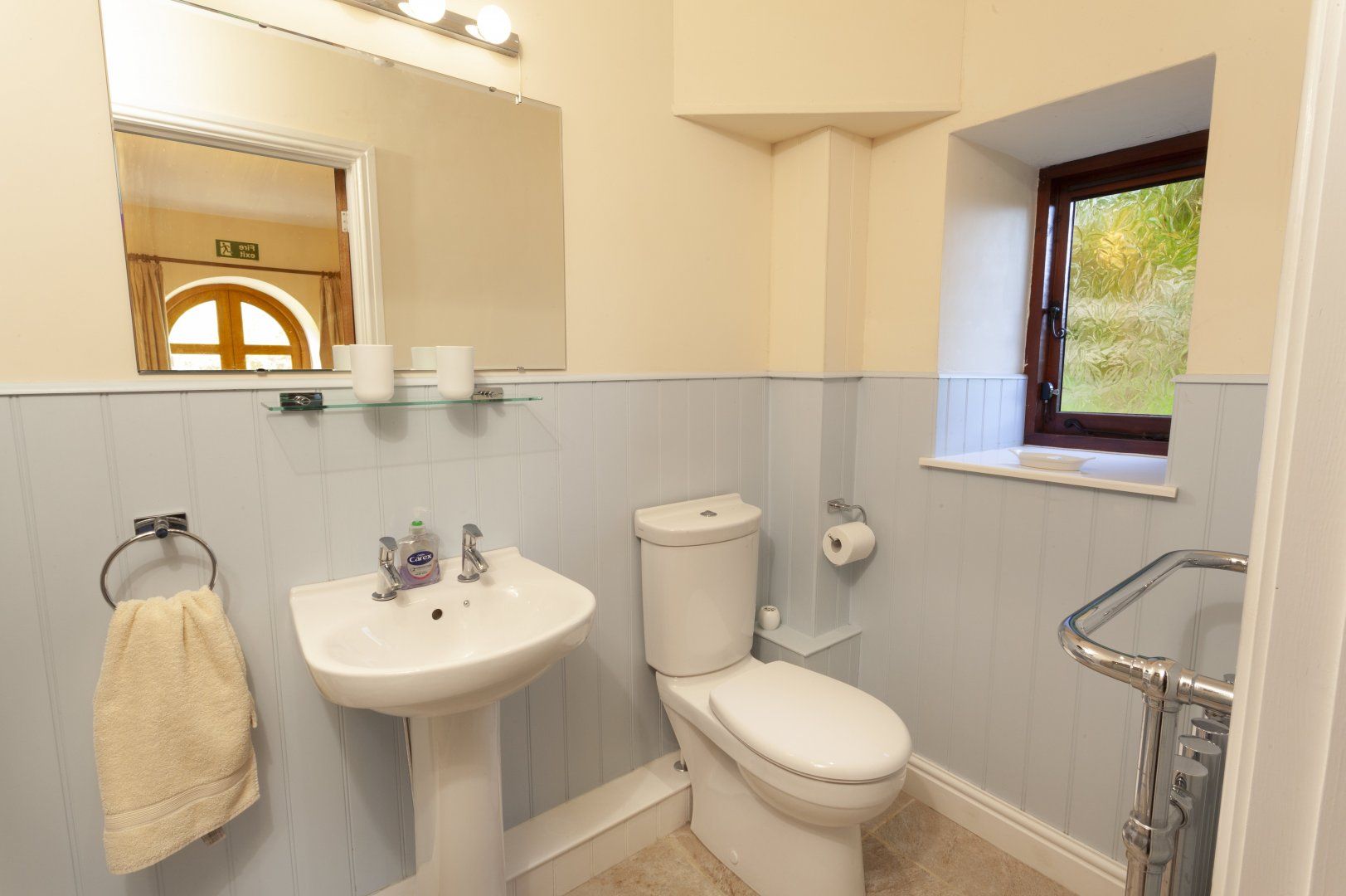 The newly fitted kitchen-dining room with Aga is accessed from the living area and is well-equipped with electric cooker, microwave, fridge and freezer, dishwasher and washing machine/tumble dryer. The dual aspect windows look out over farmland. There is an additional toilet with hand basin on the first floor.