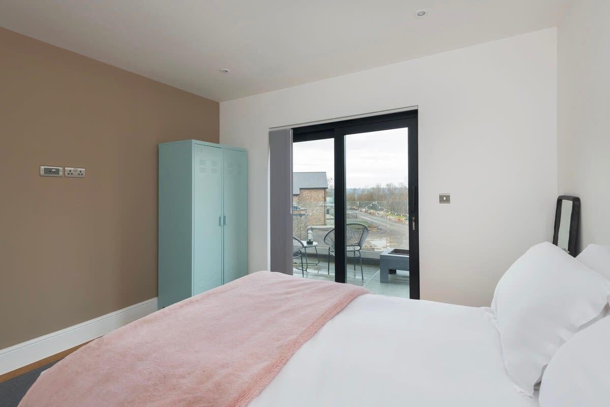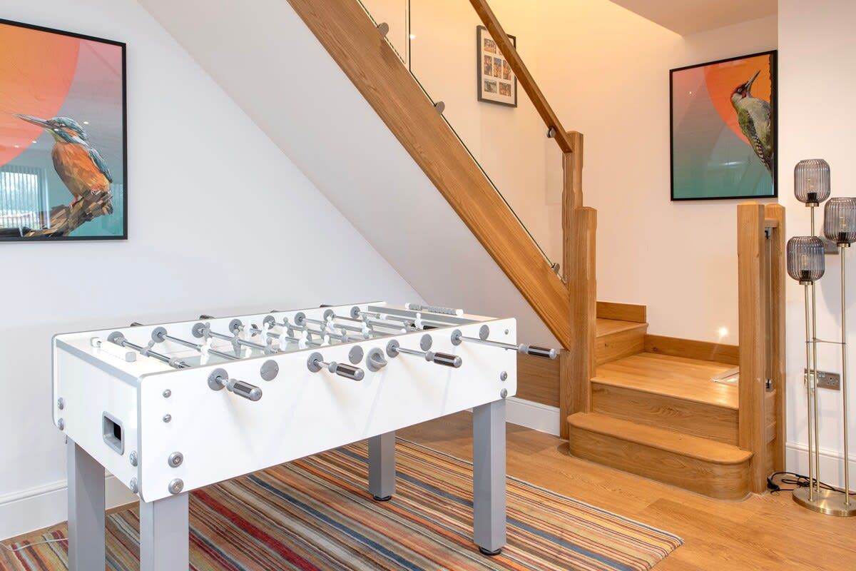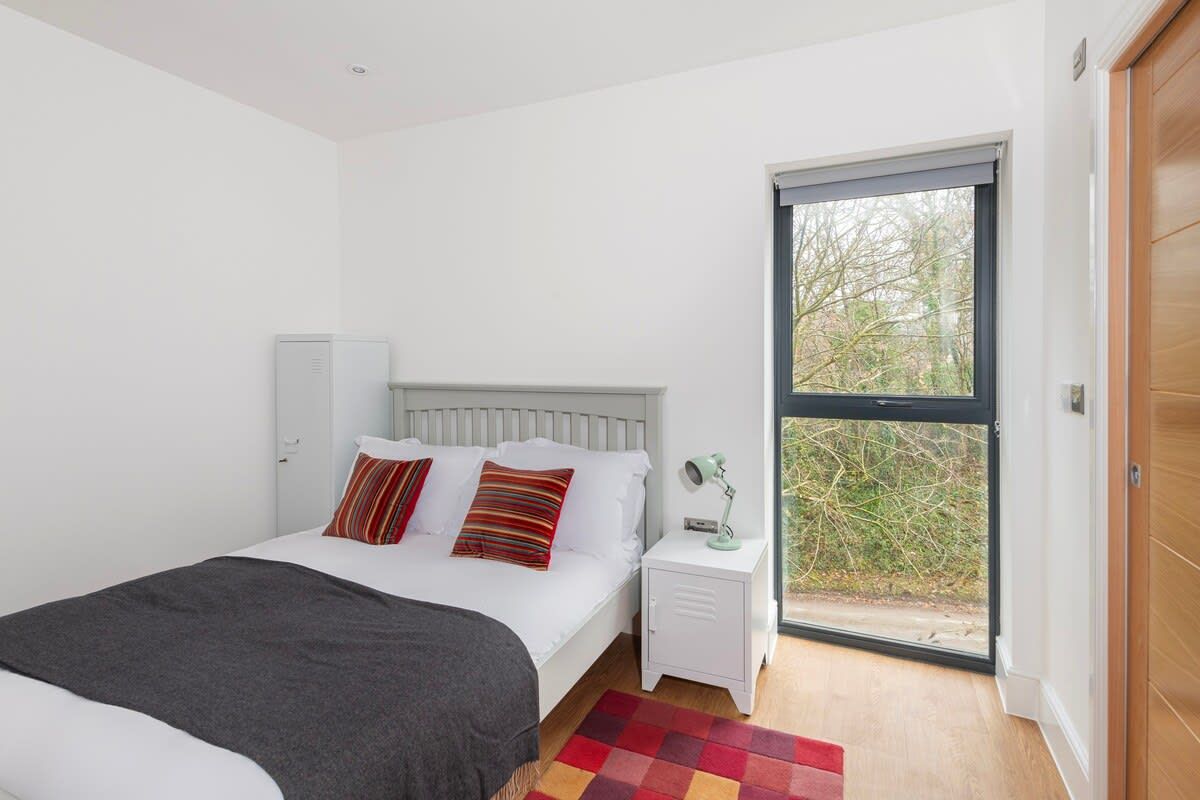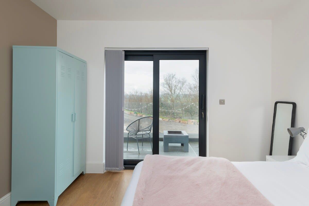 This unique home is the perfect place to relax and enjoy a holiday in the Somerset countryside. The house is located on a 450-acre estate in Somerset, approximately a thirty-minute drive from the historic centre of Bath. You’ll have everything you need for a comfortable stay, including a garden with a pizza oven, a stunning open-plan living, dining, and kitchen space with double-height ceilings, and a gym room. The bedrooms are comfortable, and the main bedroom has a balcony that boasts wonderful views.