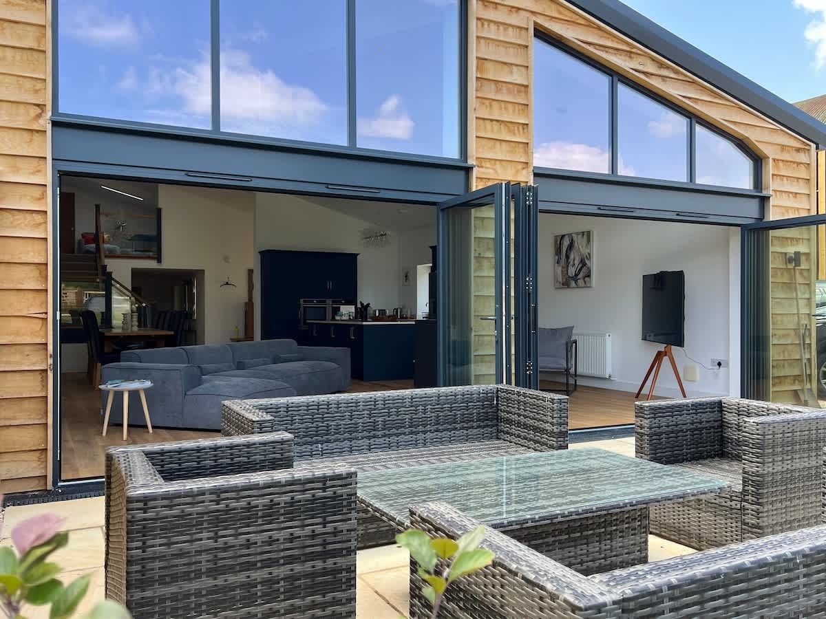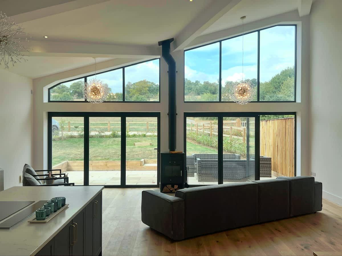 Experience this beautifully renovated and converted barn near Frome, which offers a private garden, wood-fired hot tub, dog-friendly grounds and more. The open-plan living area features a modern kitchen, dining space, and large sofa by the wood-burning stove, while the super-king bedrooms each come with their own en-suite. Outside, guests can enjoy BBQs, stargazing, and peaceful views across open fields. Just minutes from Frome and within easy reach of Bath, Wells, and Glastonbury, it’s perfectly placed for weddings, events, and day trips – for you, your family, and your four-legged friends alike.