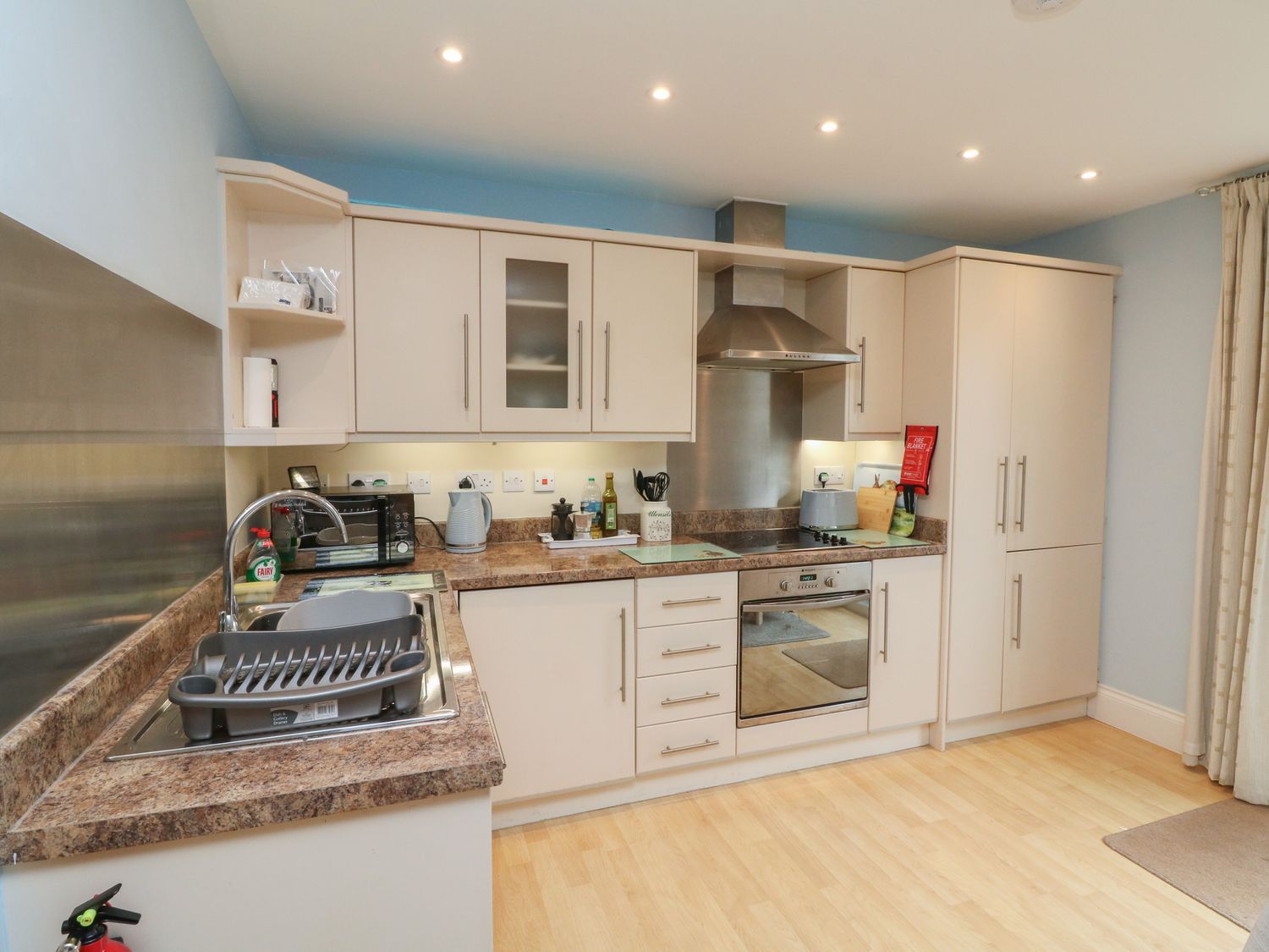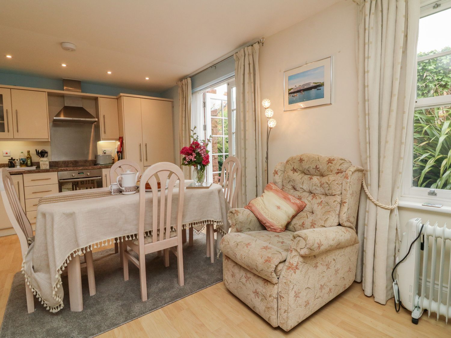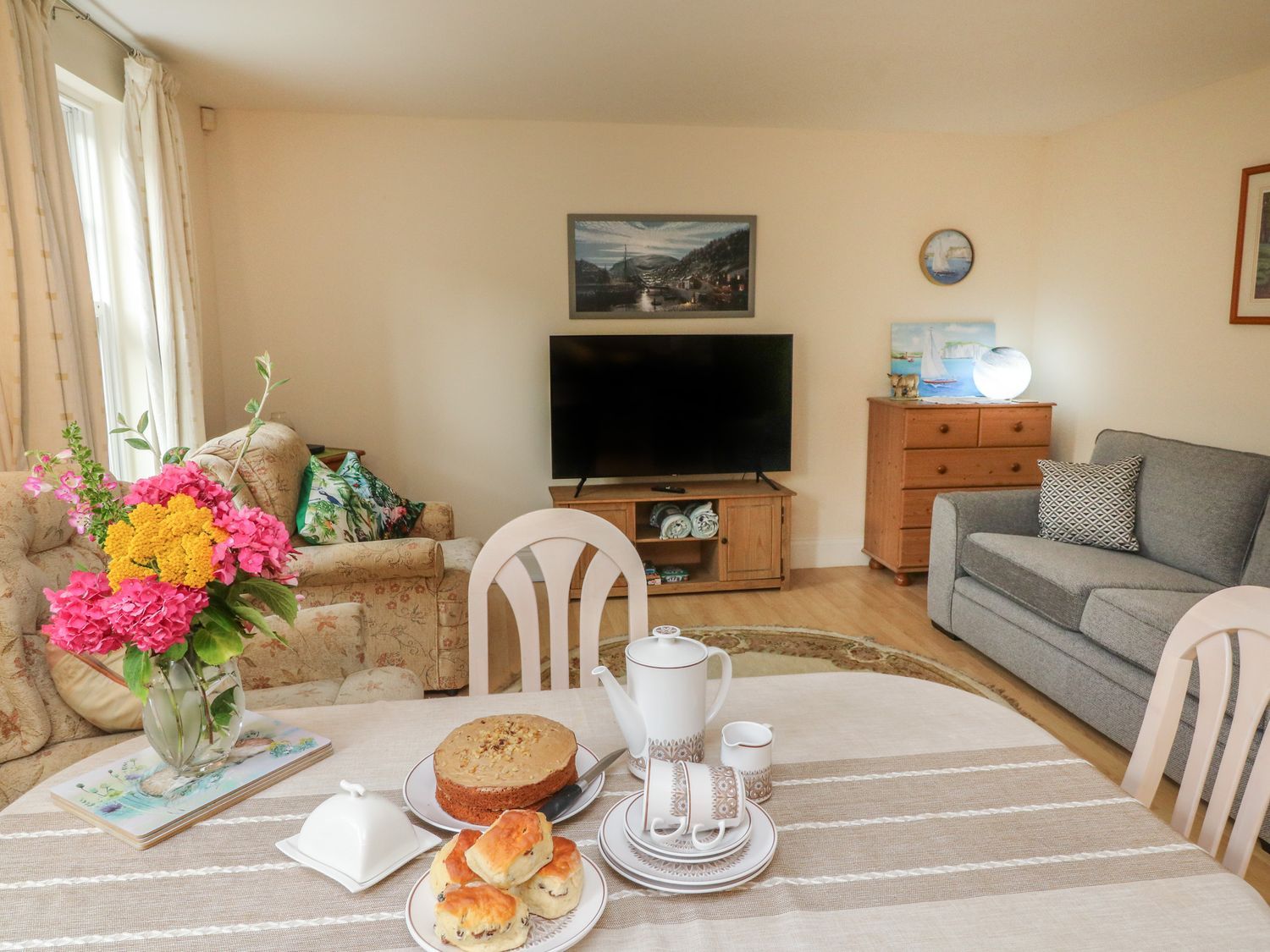 Amenities Underfloor heating. Electric oven and hob, microwave, fridge/freezer, washer/dryer, dishwasher. Smart TV, TV, and WiFi. Fuel and power inc. in rent. Bed linen and towels inc. in rent. Designated parking for 1 car. Enclosed rear courtyard with seating. One well-behaved dog welcome. Sorry, no smoking. Shop 0.2 miles, pub 0.1 miles, beach 0.6 miles. Note: No stag/hen parties or similar. Note: Between July-August the owner can only accept a Friday check in