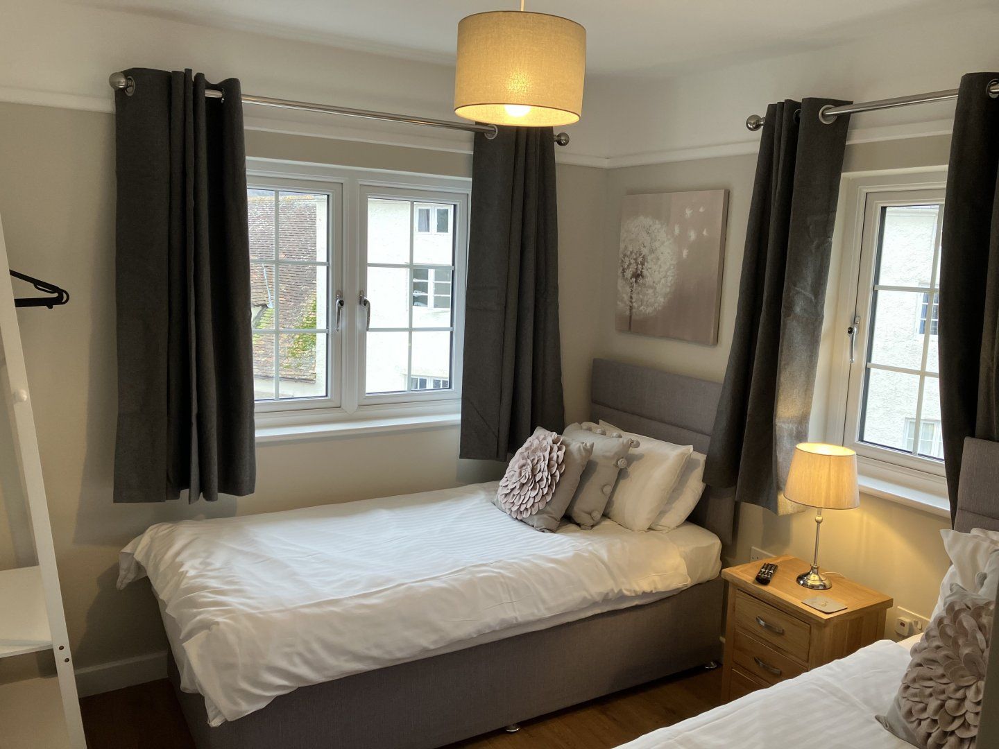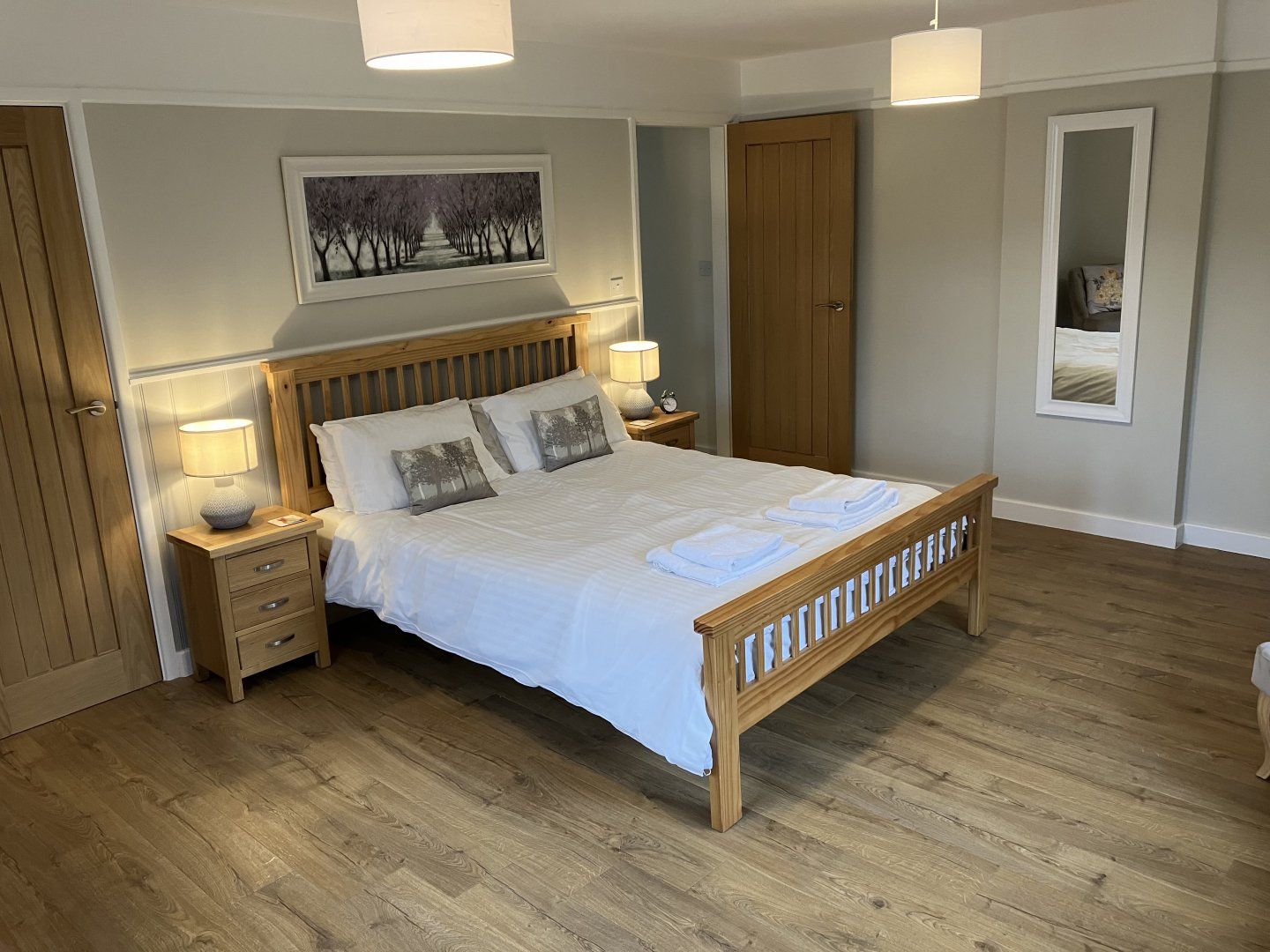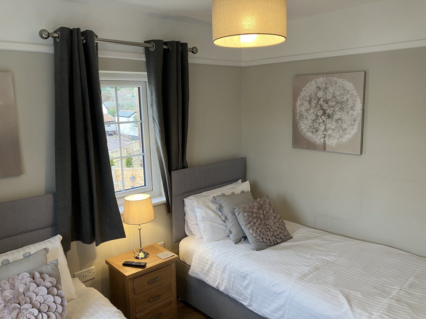 Three bedrooms upstairs, two king-sized double beds and one twin bedroom.