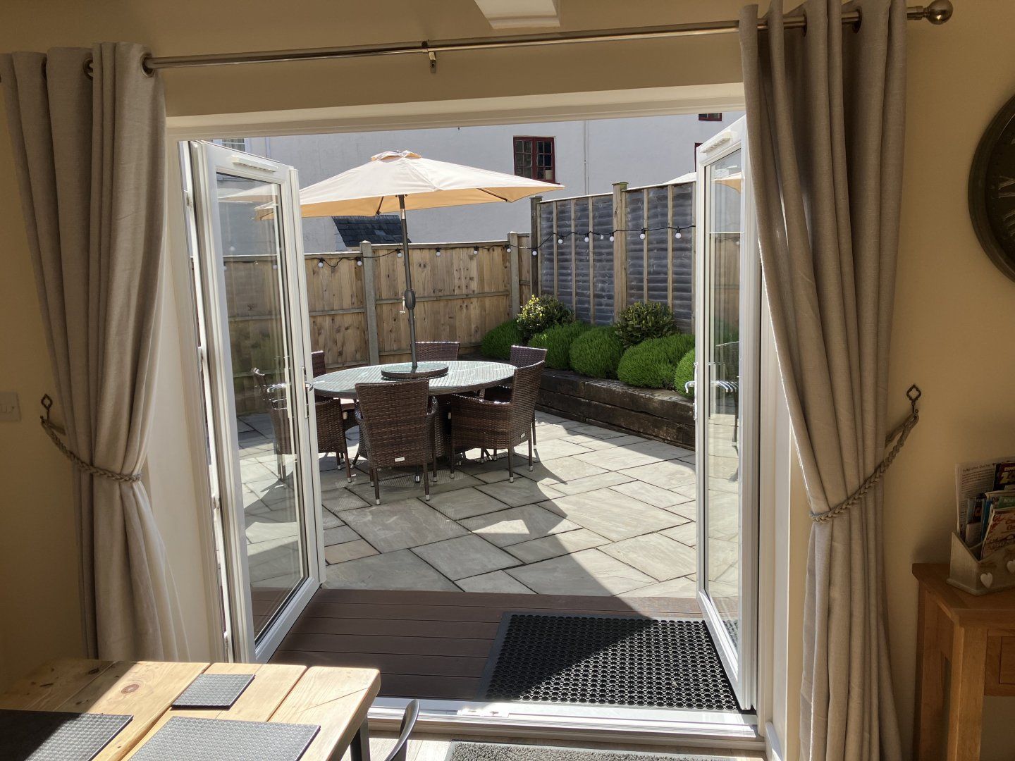 Enjoy the newly fitted kitchen with all modern appliances, dining area with French doors opening outside, and a sitting room with a cozy wood-burner. The property also features a private and enclosed patio with a built-in barbeque, ideal for al fresco dining.