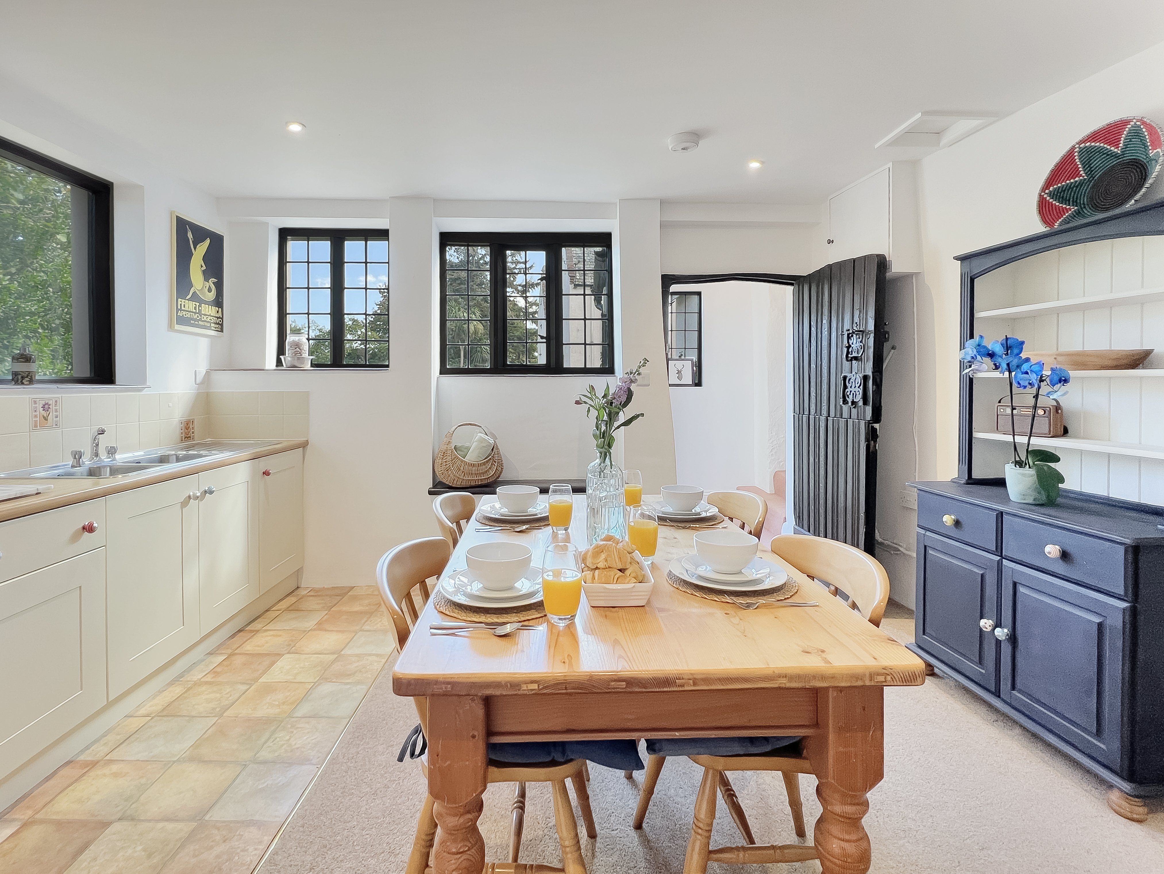 Chapel Cottage can accommodate up to 4 guests, with one double bedroom on the first floor and a sofa-bed in the sitting room downstairs. Please note that access to the first floor is via a spiral staircase and may not be suitable for young children. The cottage also boasts a large separate kitchen and a private, enclosed garden to the rear of the property, making it perfect for al fresco dining. Dogs are welcome with a maximum of 2 per cottage.