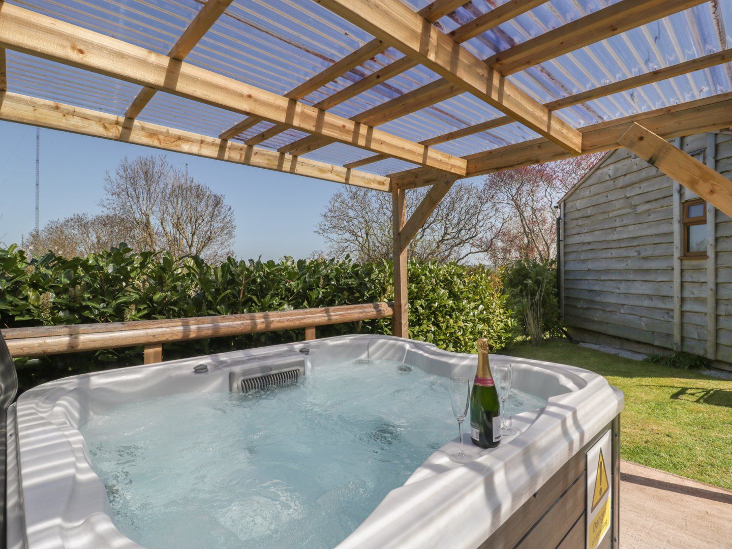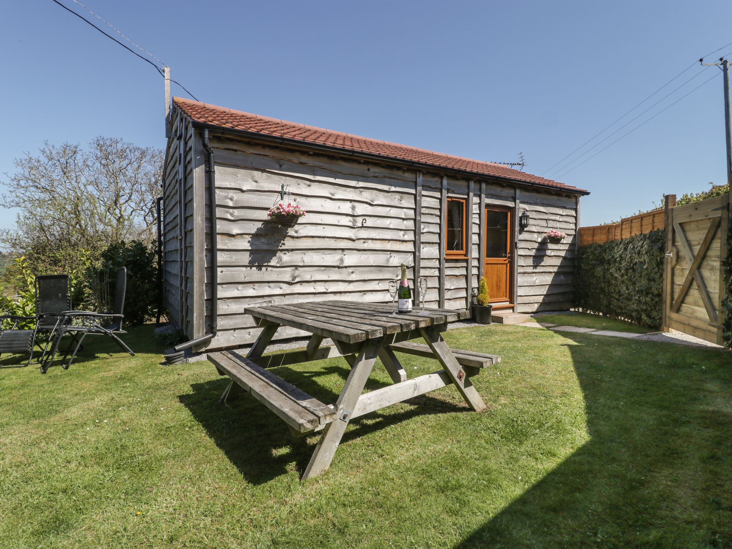 Holiday home Cherry Lodge is a wonderful lodge situated in Washford, Somerset. Internally, it has one double bedroom with an en-suite bathroom. There is an open-plan living room with a fitted kitchen, dining area and sitting area. Outside has a large garden with furniture and therapeutic hot tub. Off-road parking is available for several cars. Cherry Lodge is the perfect location for a relaxing holiday near the coast. Please note - charging for electric cars is not permitted.Charging available in Minehead (10 mins away)