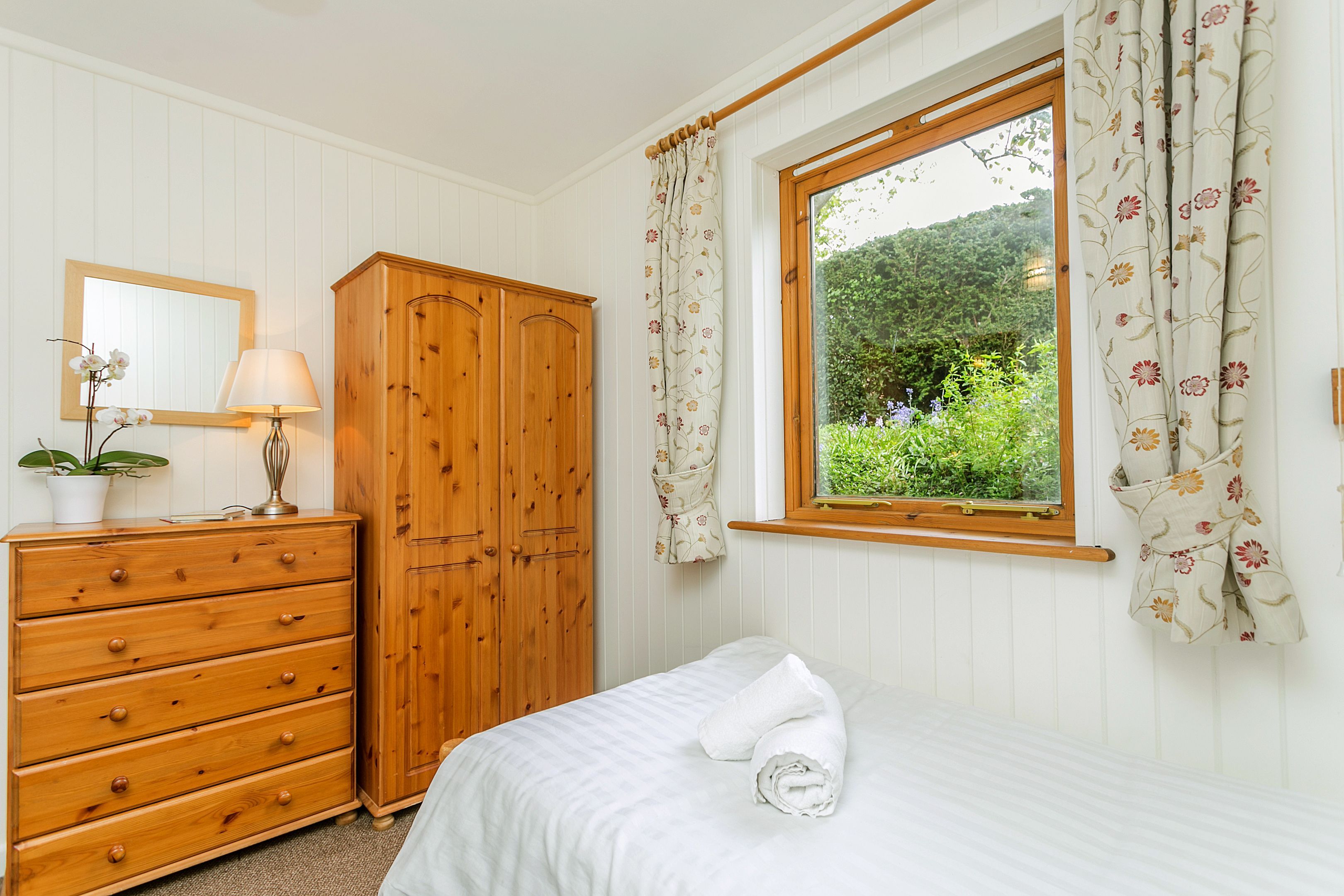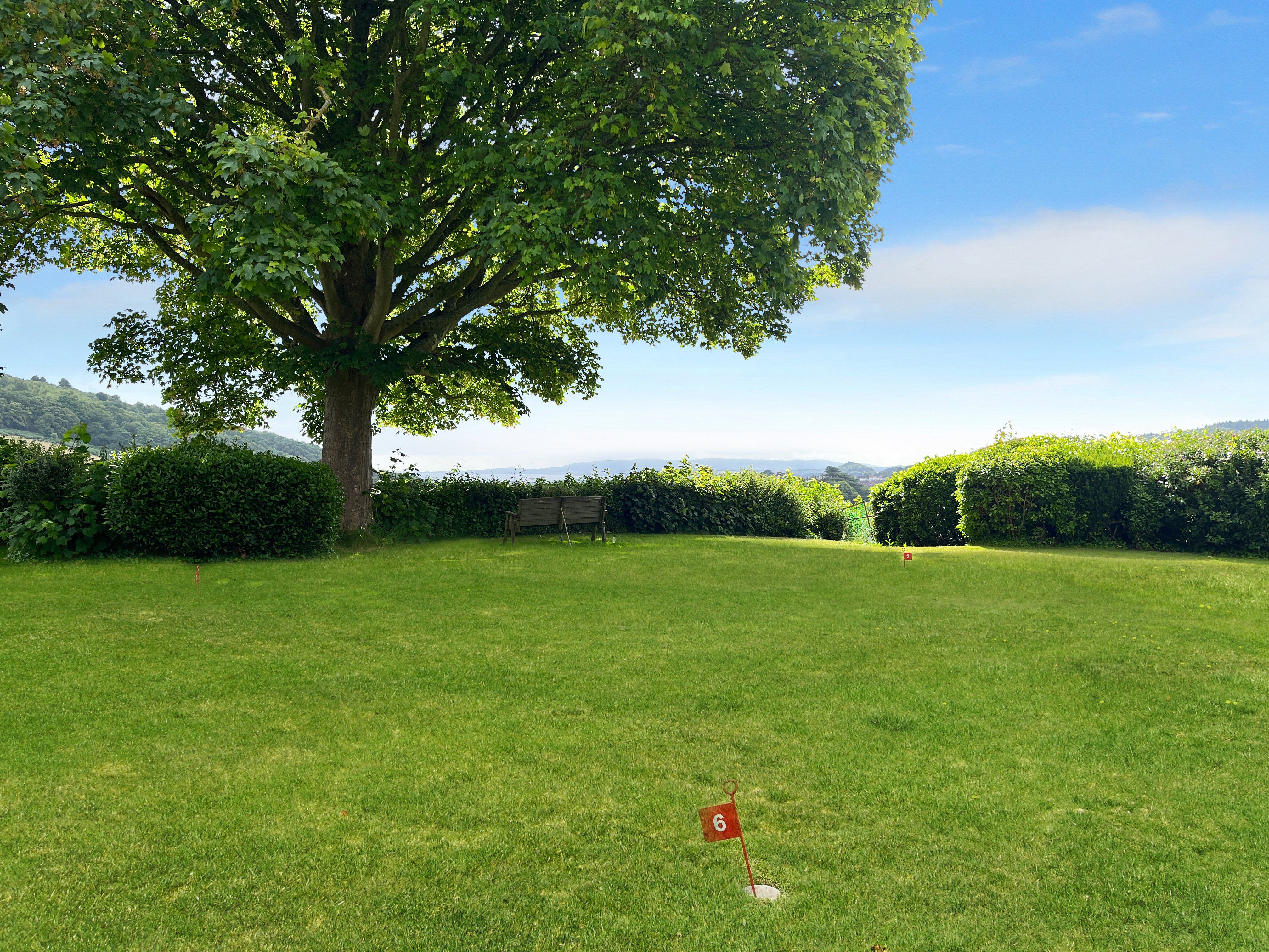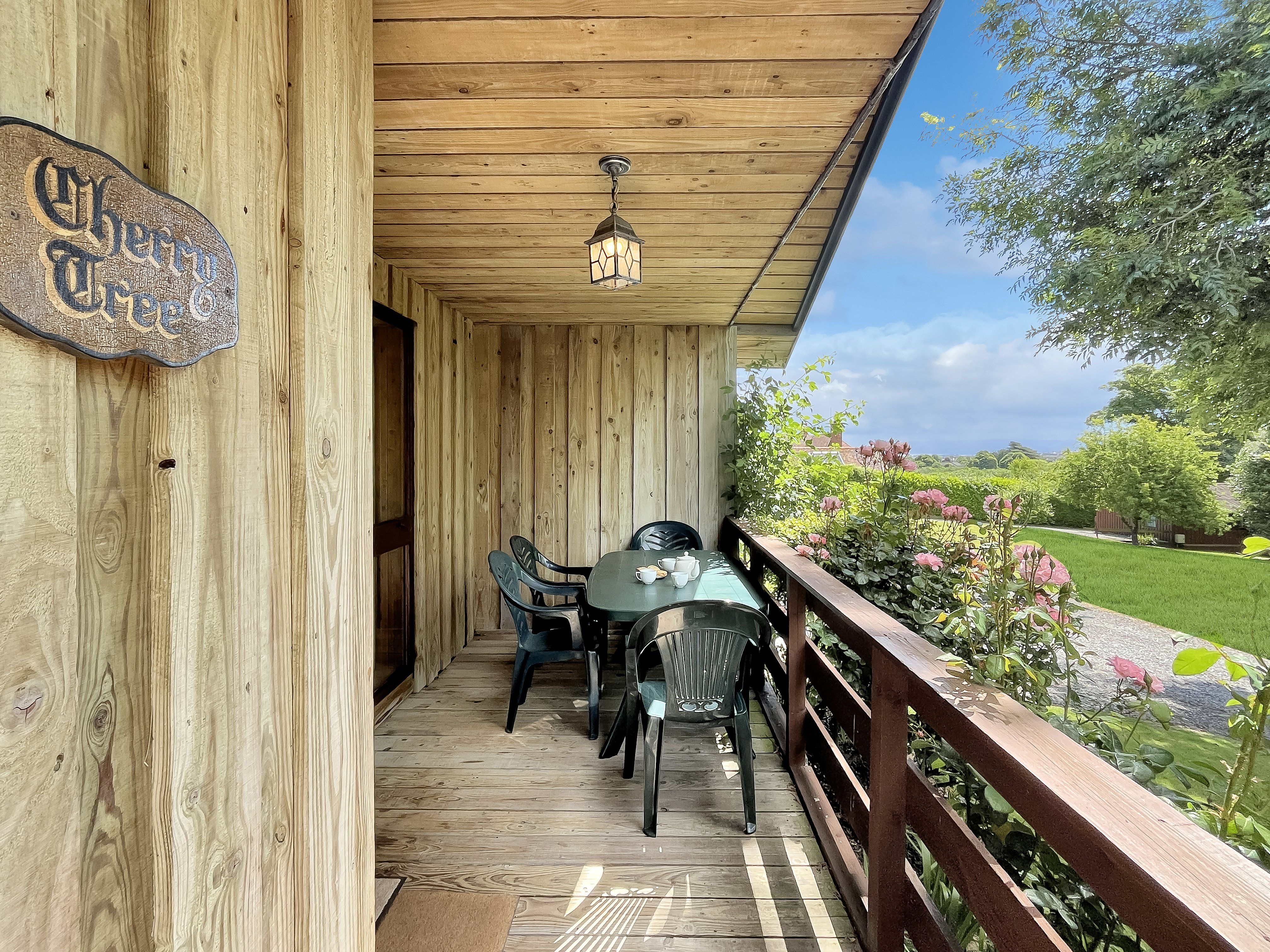 The sitting area has comfortable settees and a chair with French windows opening onto the veranda which gives beautiful views overlooking the slopes of Exmoor. There is a flat screen television provided plus DVD player and free WiFi available.