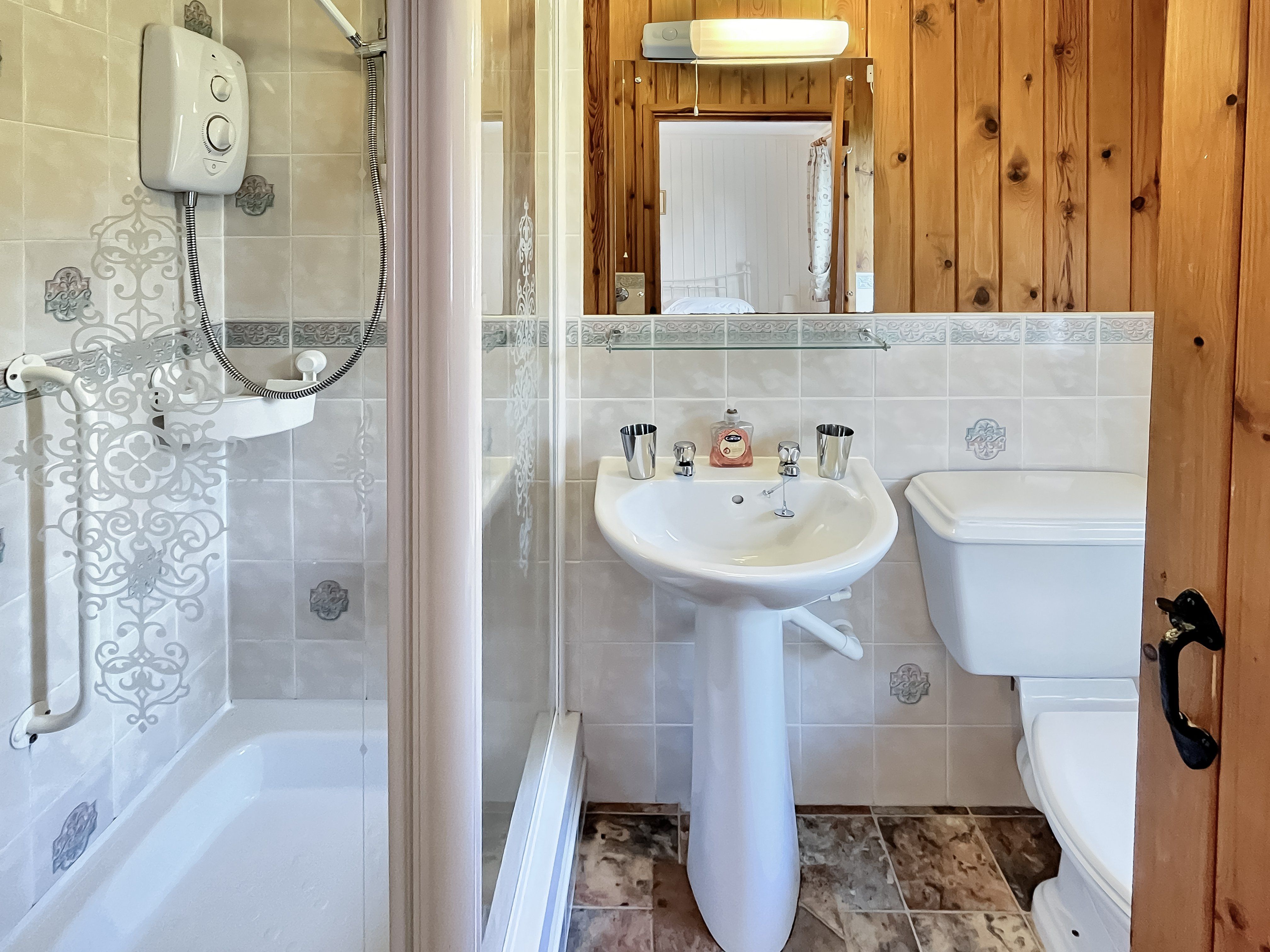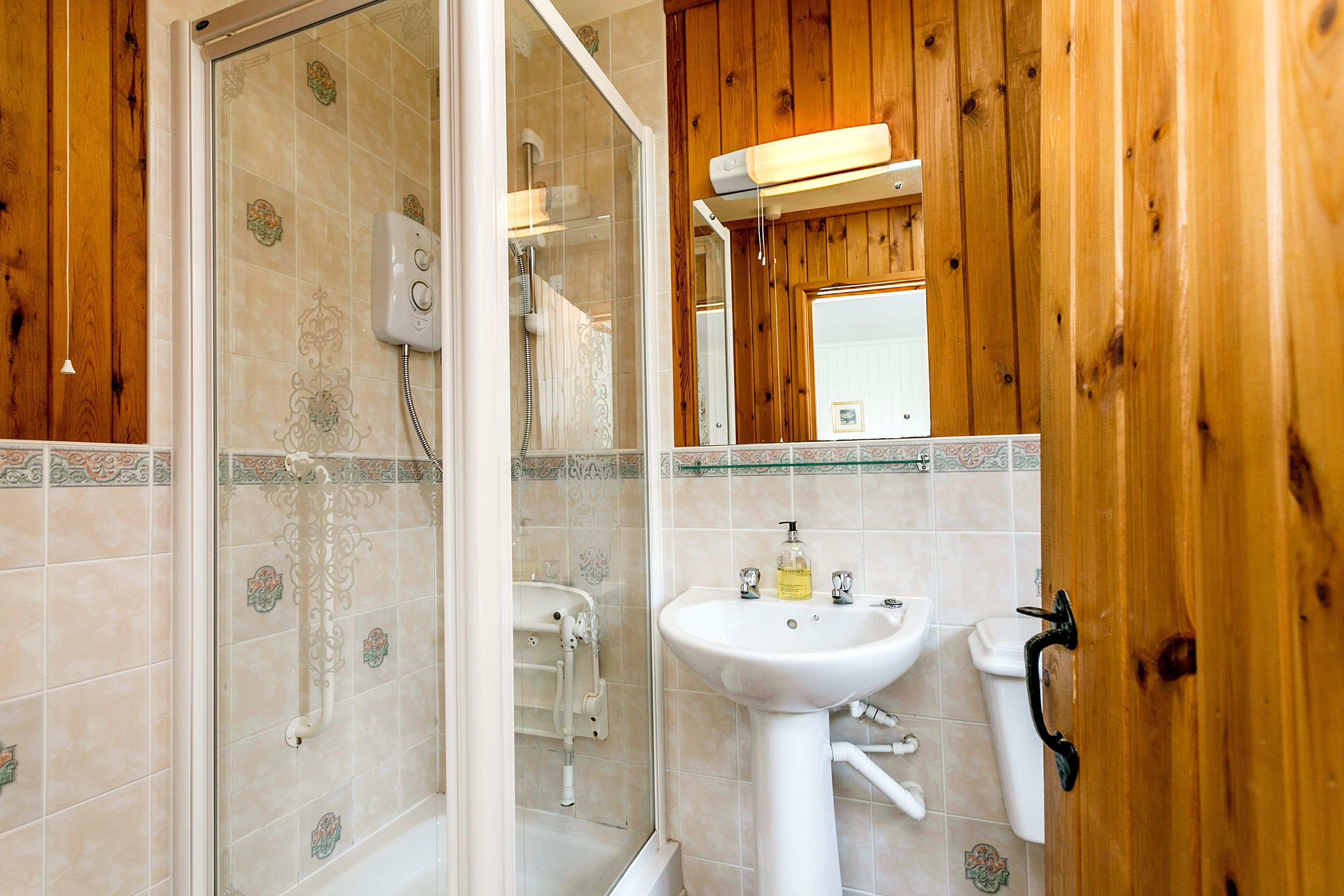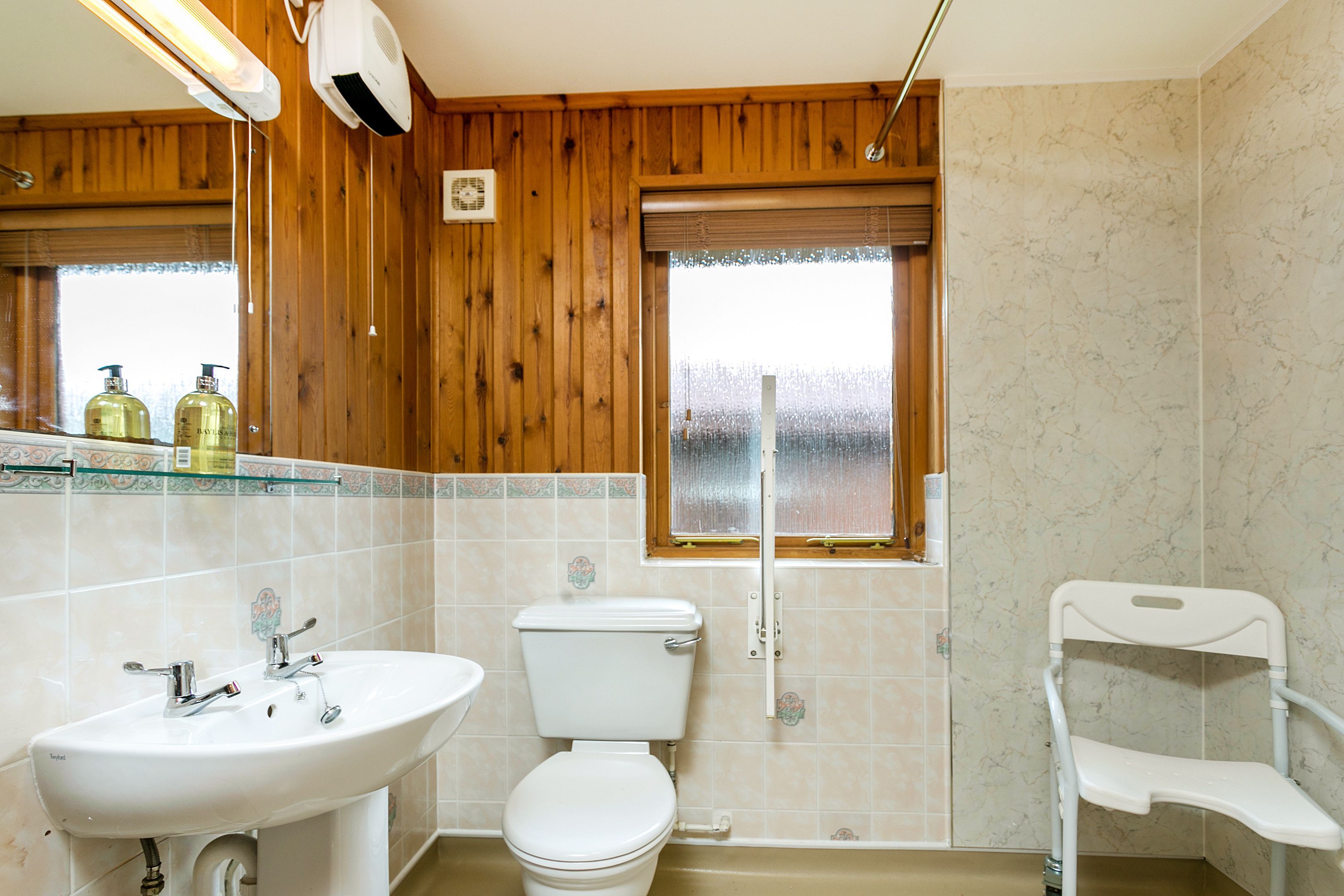 The main bathroom is a shower wet room with shower chair, toilet and basin. En-suite shower room, which has a shower cubicle with pull down seat, a wash basin and toilet The bathroom is fully wheelchair accessible but the ensuite shower room is not.