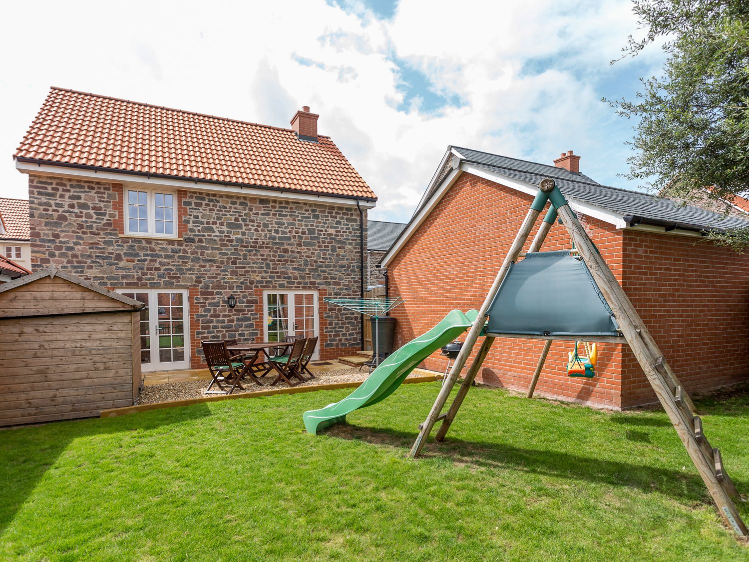 There was no fancy wine for us, or welcome pack! The property was generally very dirty with mouldy black bathroom, just the one bathroom which we had to bleach on arrival. The pictures you can see of the property are well out of date, even the cushions in the lounge etc are all flat and dirty. The front garden was full of huge weeds which our kids enjoyed pulling out. We sprayed weedkiller ourselves as we were there for 4 weeks and we have standards even if the owner and cleaner do not. The back garden was mowed on day 1 of our stay only, and then left so the lawn became overgrown and unusable by the kids. The place was crammed full of baby stuff, even a pram, which we did not need and we had to put it all in the shed to survive! The kitchen was filthy, with a stinking recycle bin and minging dishwasher. The oven stinks when turned on and the kitchen drawers and cupboards were dirty and full of crumbs and tat. The cream chairs in the kitchen are stained and manky. Even the ironing board was in bits, this was the only one of our complaints the owner dealt with - he sent another cheapo one from Argos. Oh Joy!