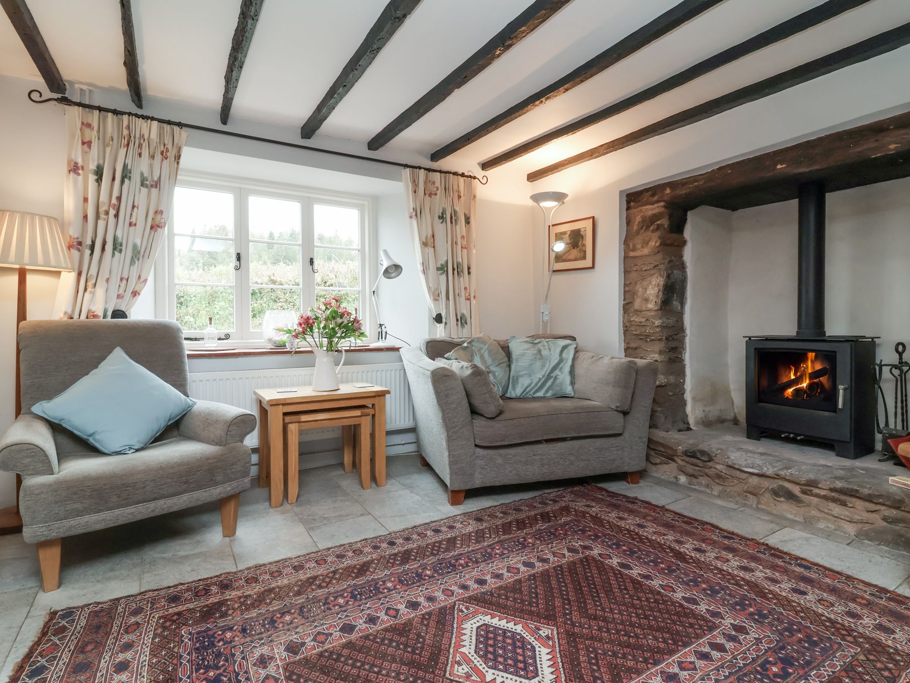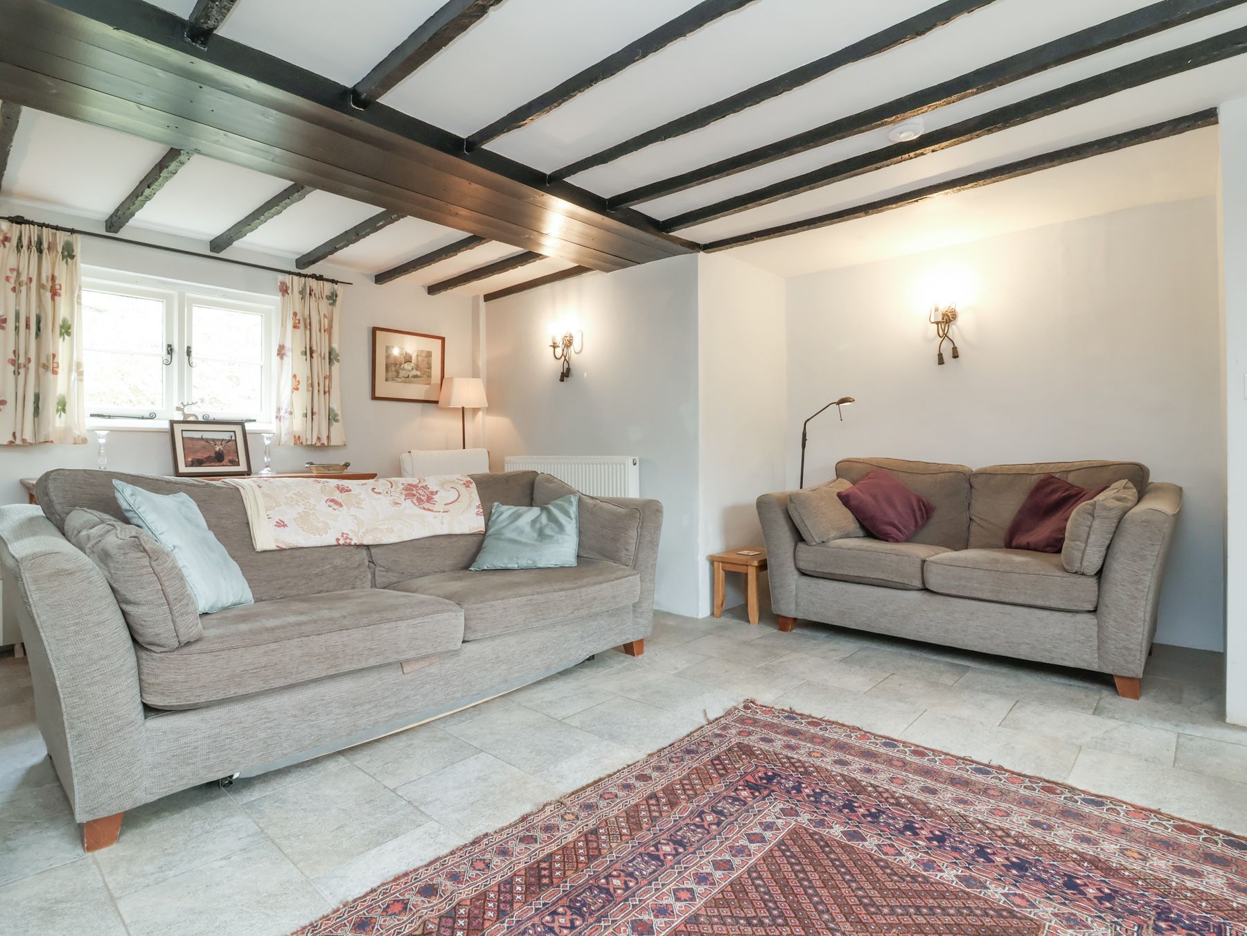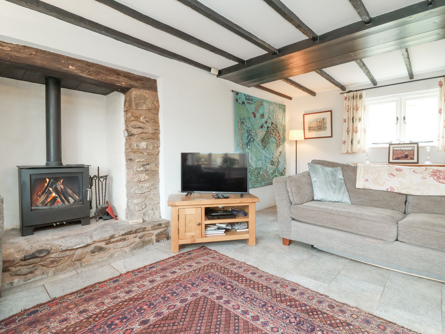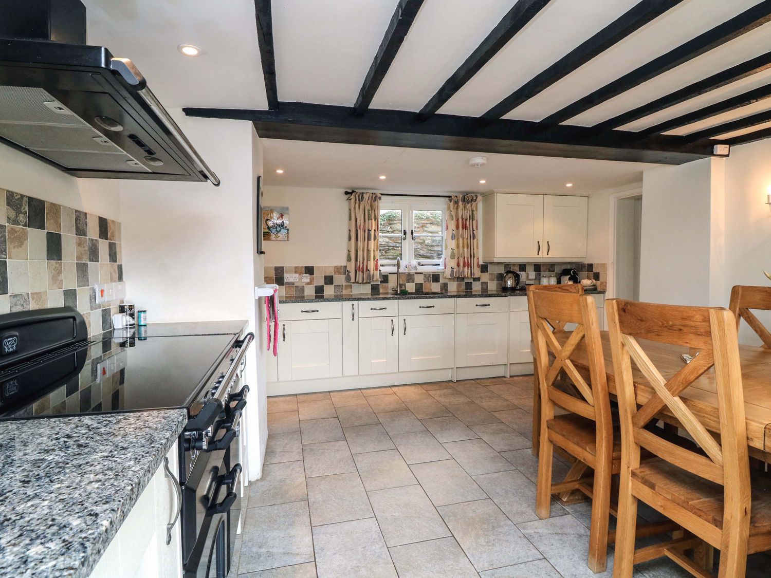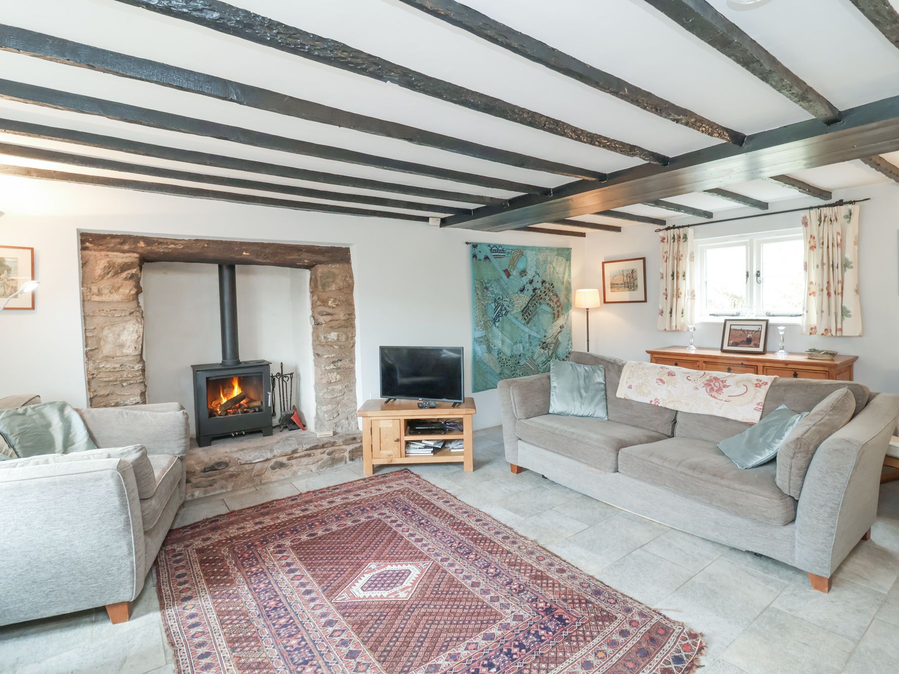 Amenities Oil central heating with woodburners. Range cooker with electric oven and induction hob, microwave, fridge/freezer, washing machine, tumble dryer, dishwasher, 3 x TVs (one Smart TV) with Freeview, Netflix, DVD, WiFi, selection of books, games and DVDs. Fuel, power and starter packs for woodburners inc. in rent. Bed linen and towels inc. in rent. Travel cot, Highchair. Off road parking for 6 cars. Front, rear and side (enclosed) lawned garden with patio, furniture and BBQ. One well-behaved dog welcome. Second dog welcome for £25.00 - this must be booked in. Sorry, no smoking. Shop and pub 5 mins walk.
