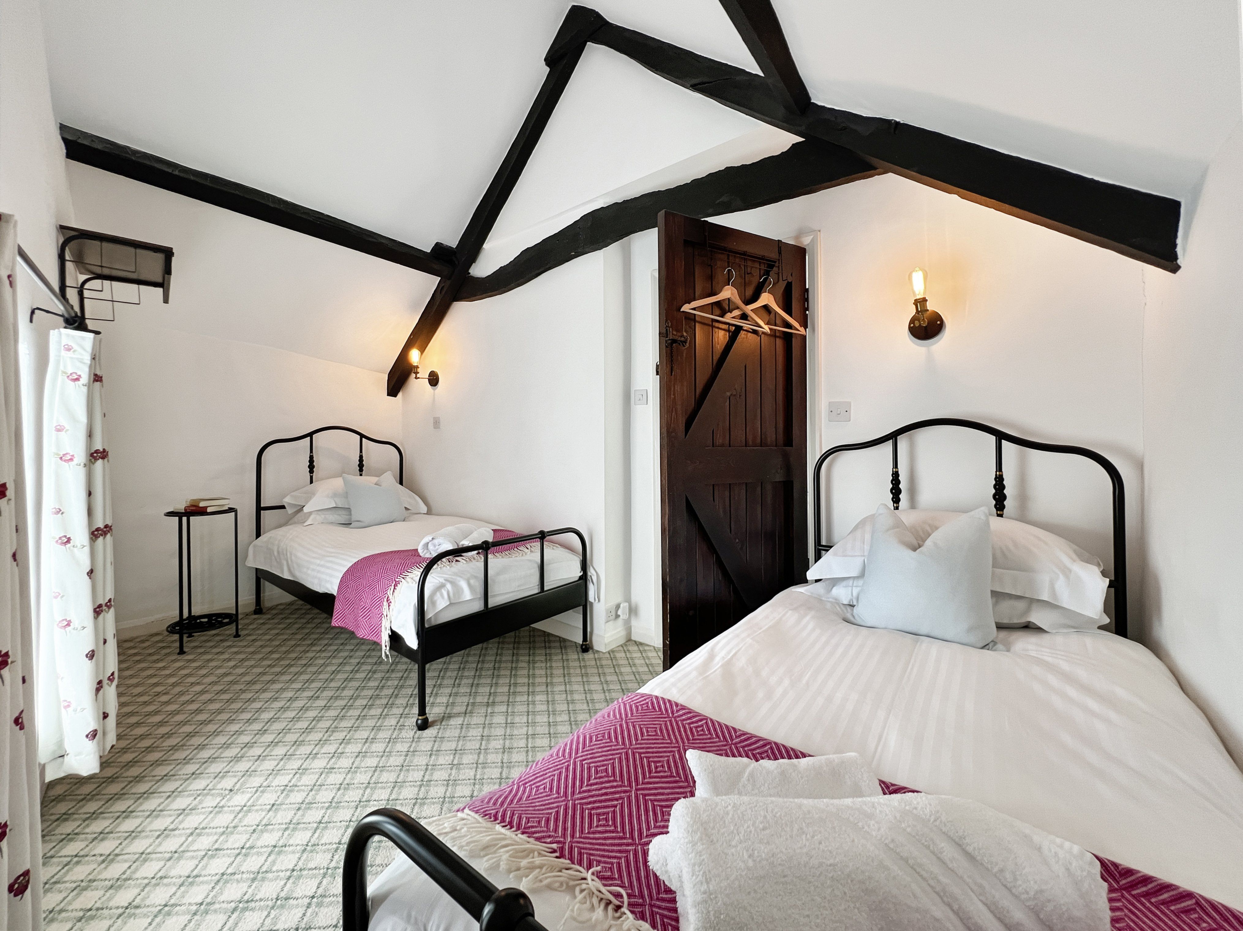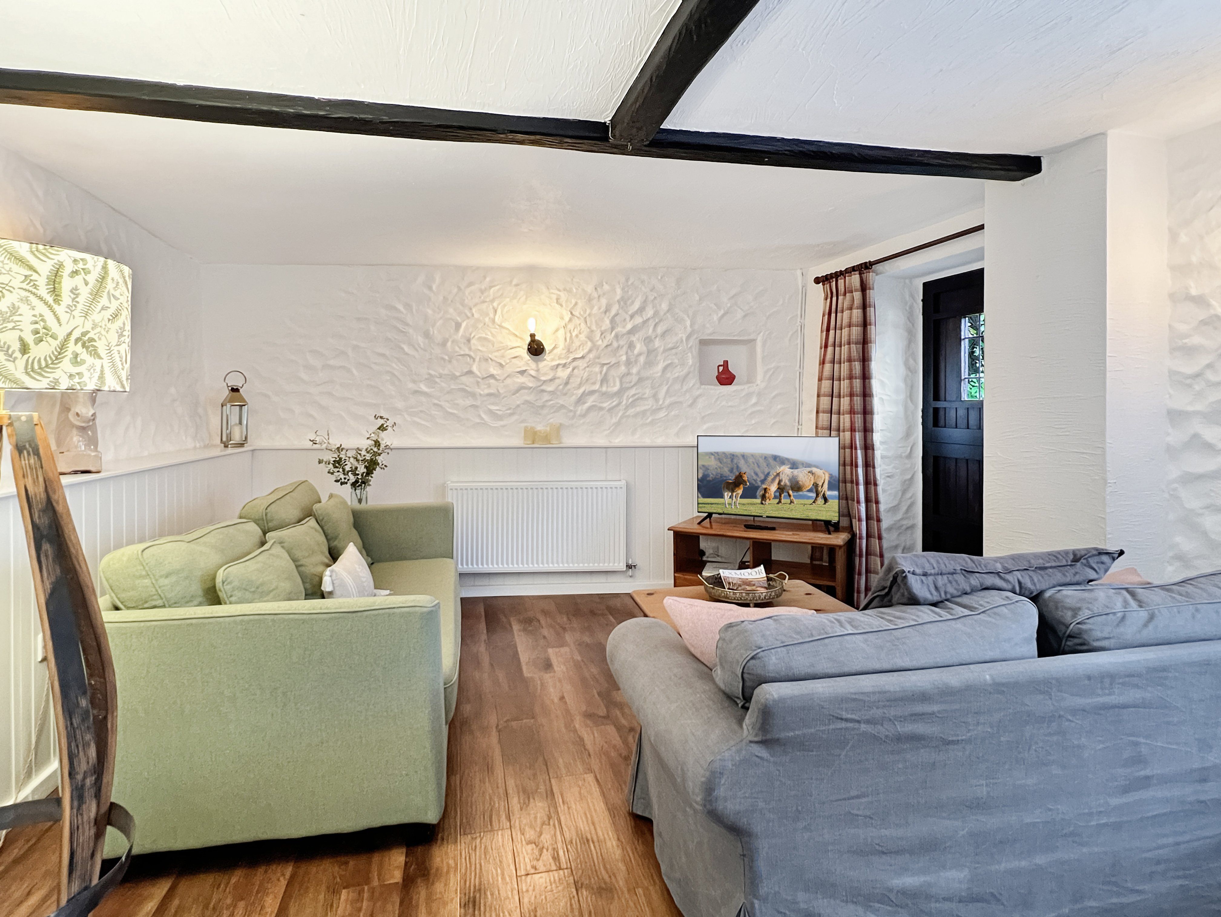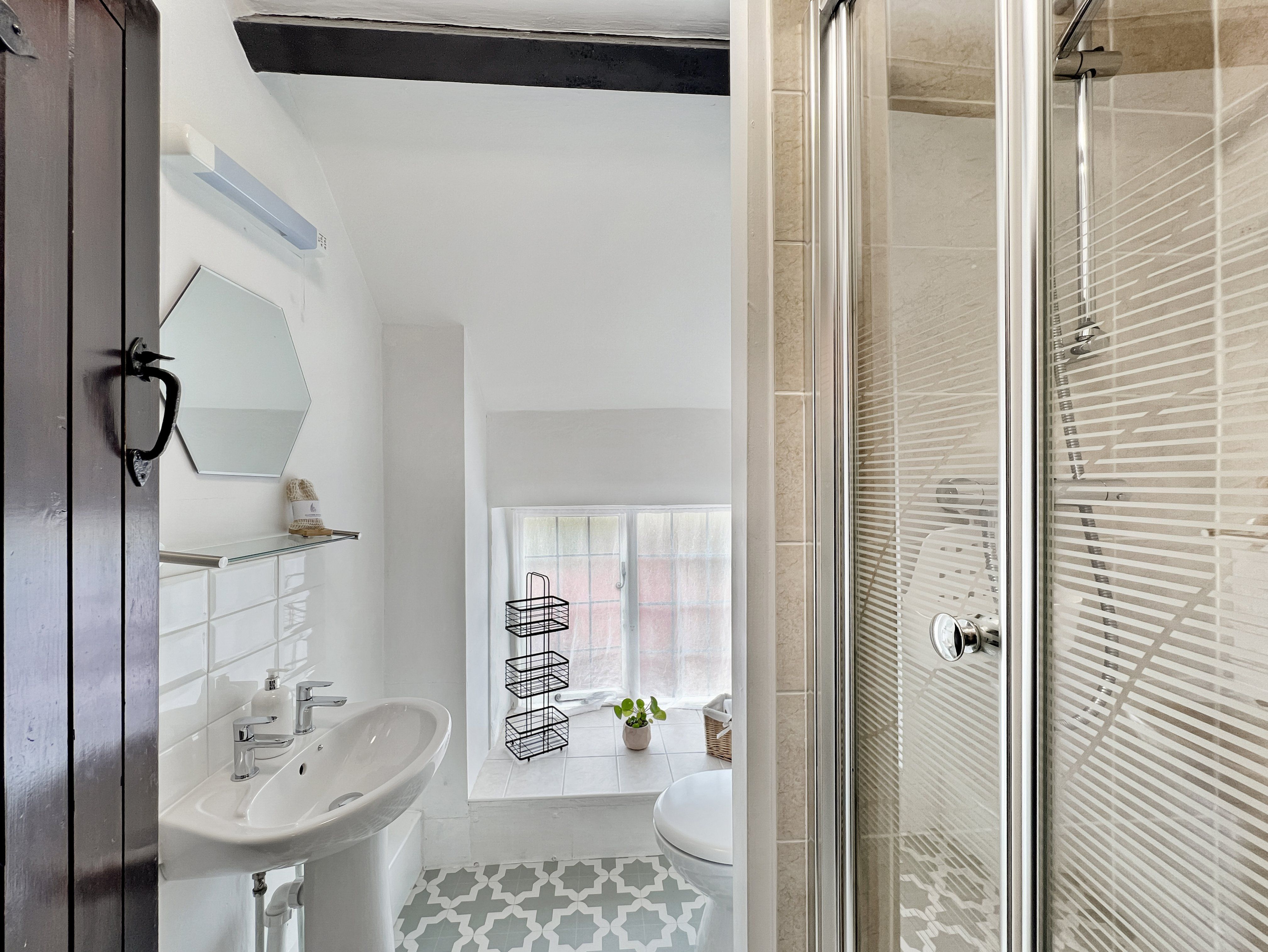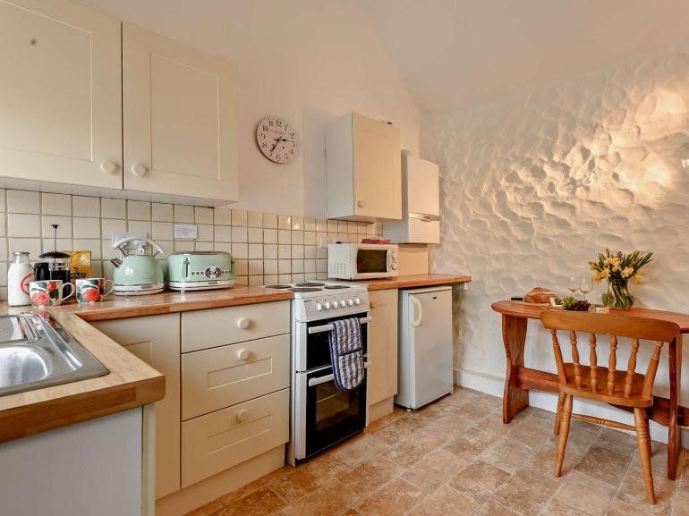 Facilities Freeview TV and DVD player, comfortable seating in the living area, and outside seating overlooking the shared courtyard area . Kitchen with cooker, microwave and fridge. Upstairs on the first floor are one double bedrooms, one twin room and a shower room, with toilet and hand basin.