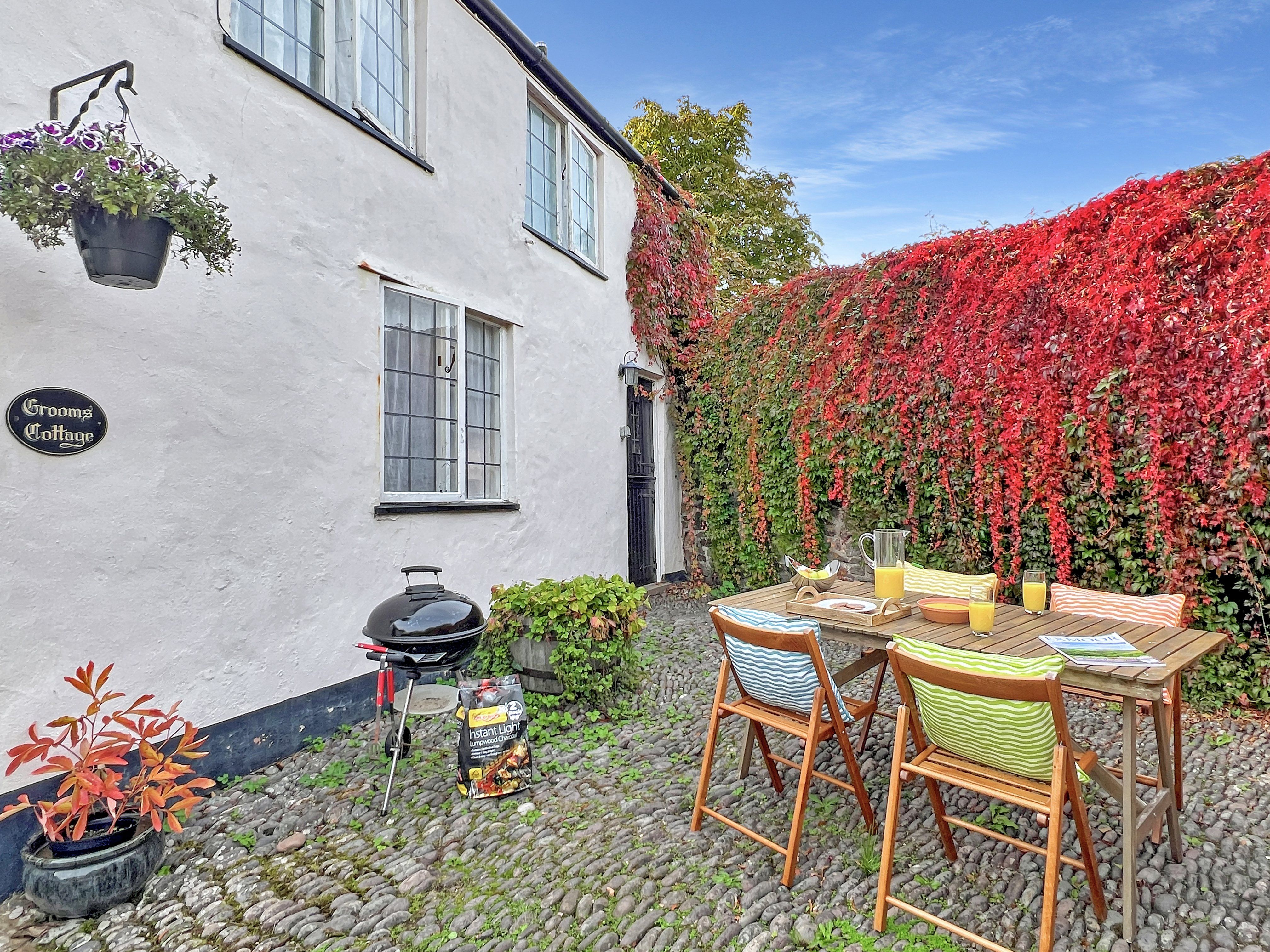 Grooms Cottage is a charming holiday home situated in Ellicombe, a courtyard in Somerset, between the historic village of Dunster and the coastal town of Minehead. The property is one of four self-catering cottages on-site, all of which have access to a shared outdoor heated swimming pool (open May to September) and a beautiful acre of sub-tropical gardens with stunning views of the West Somerset Steam Railway and the Welsh coast.