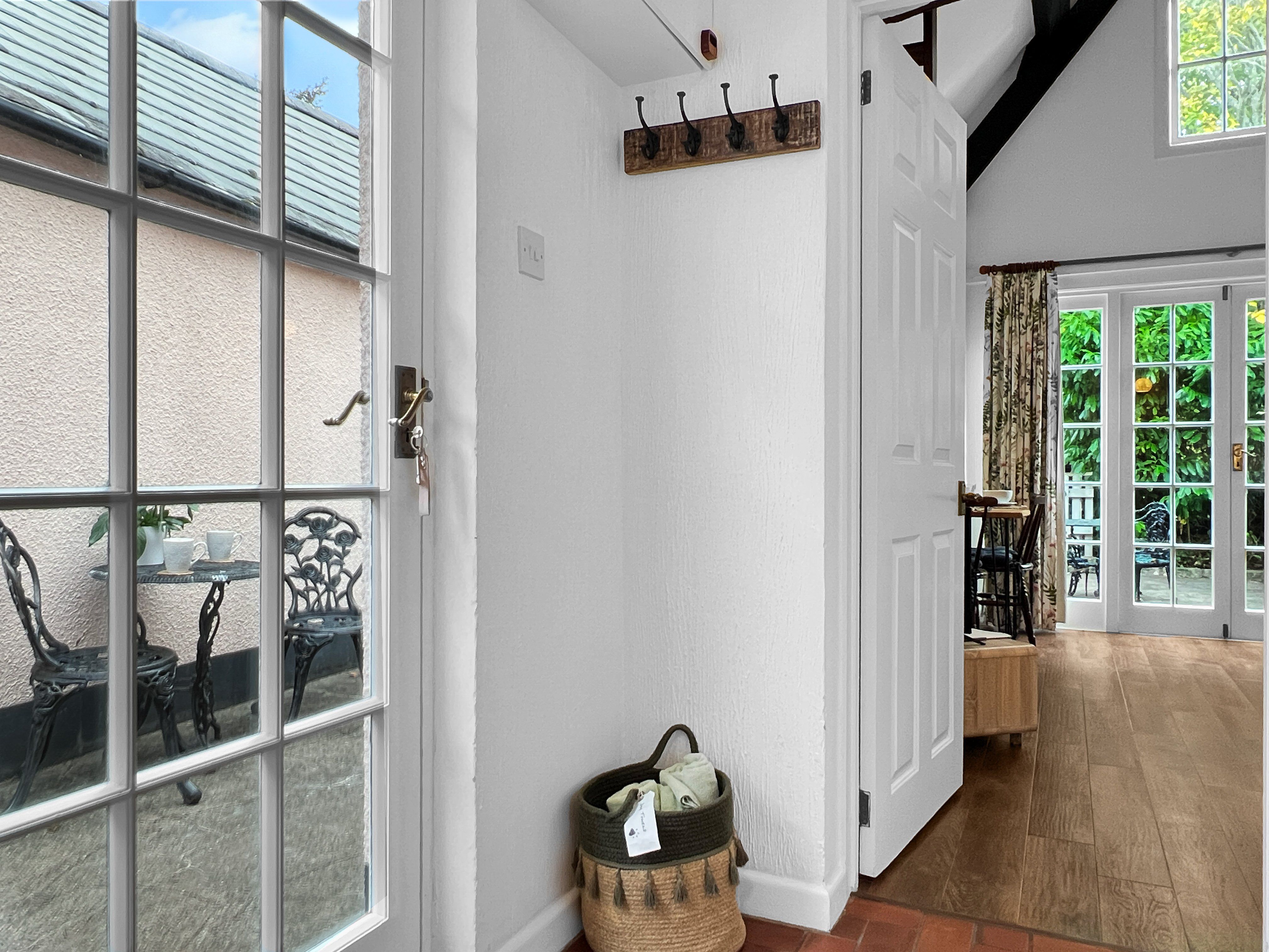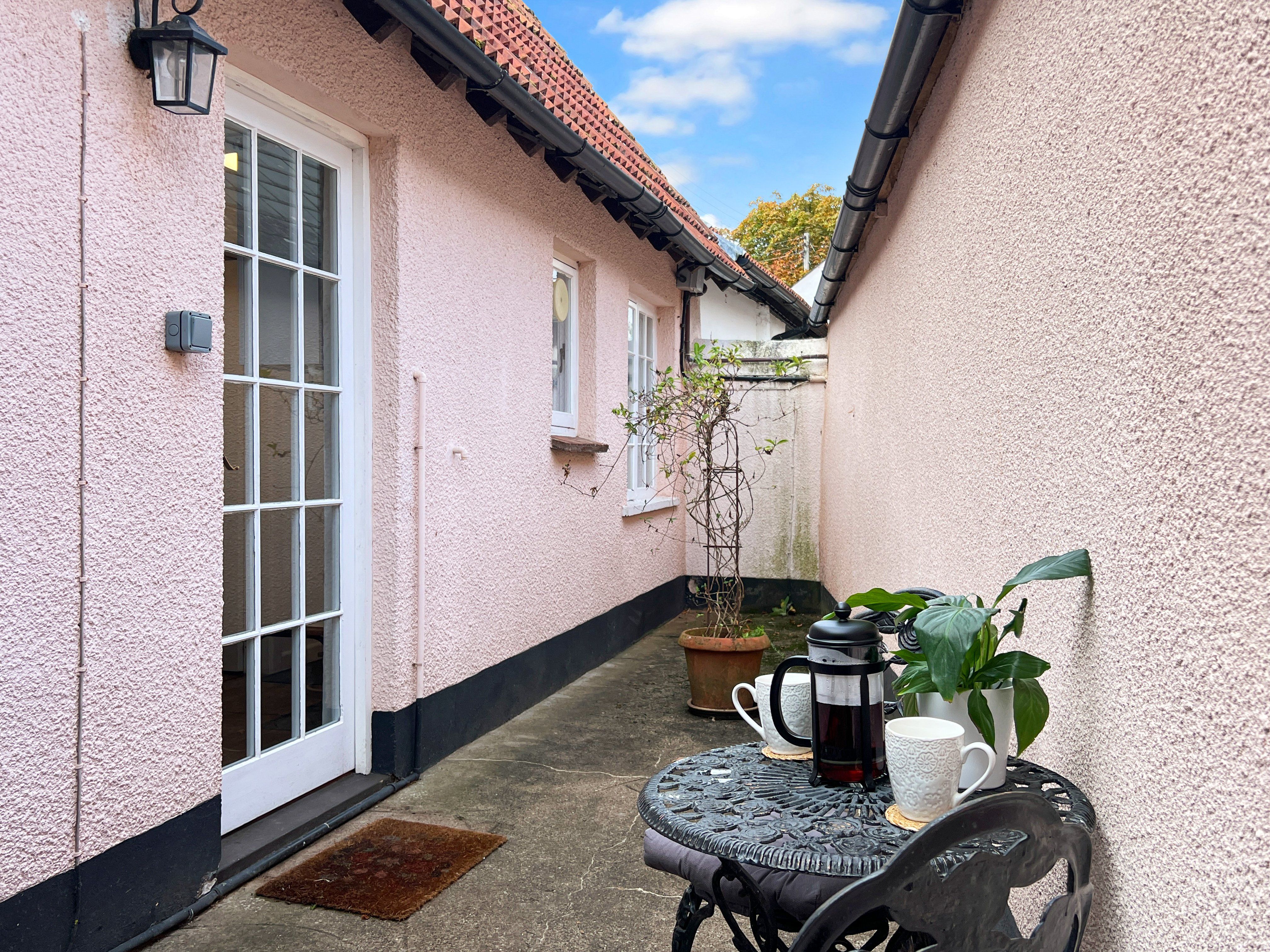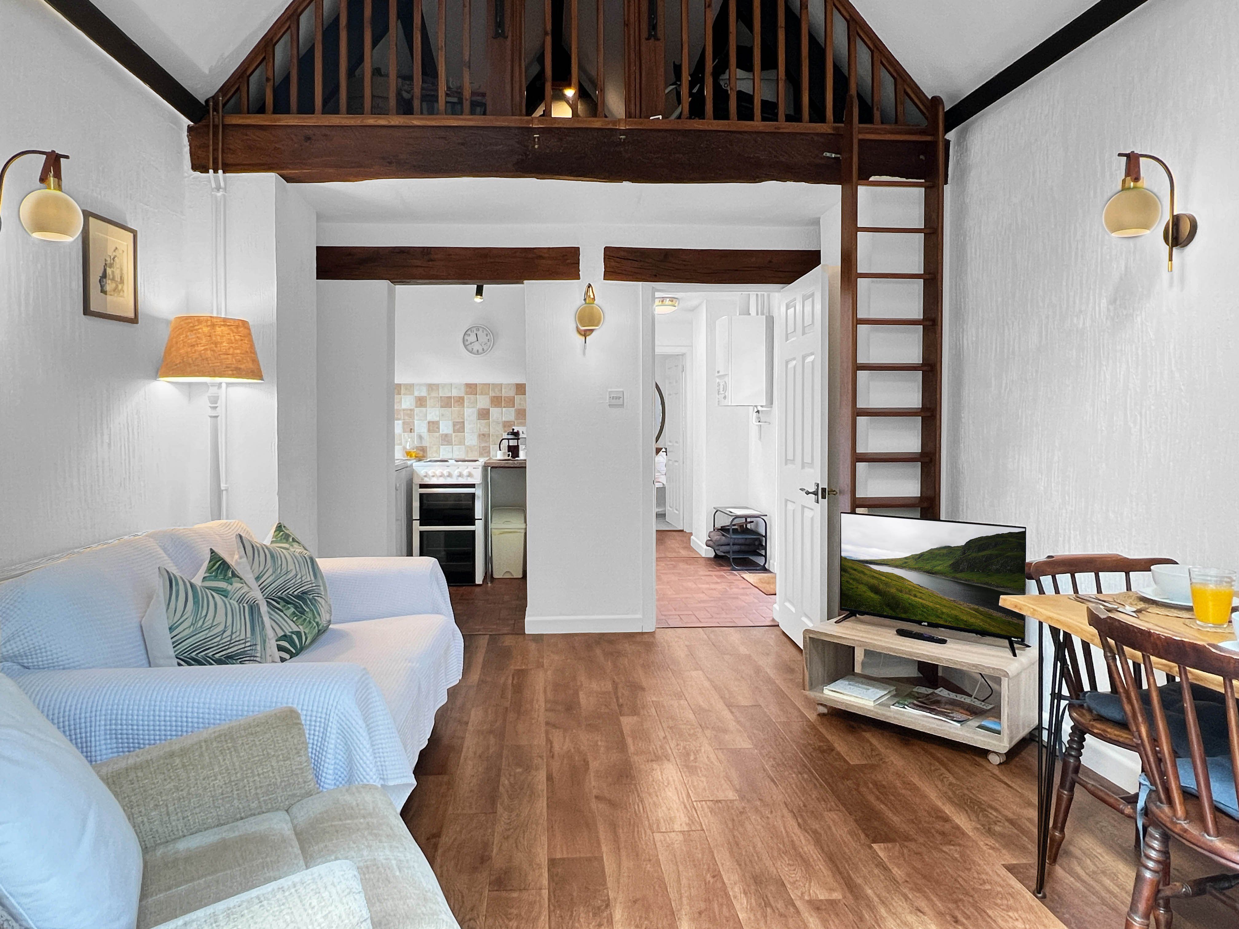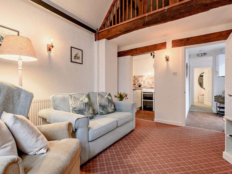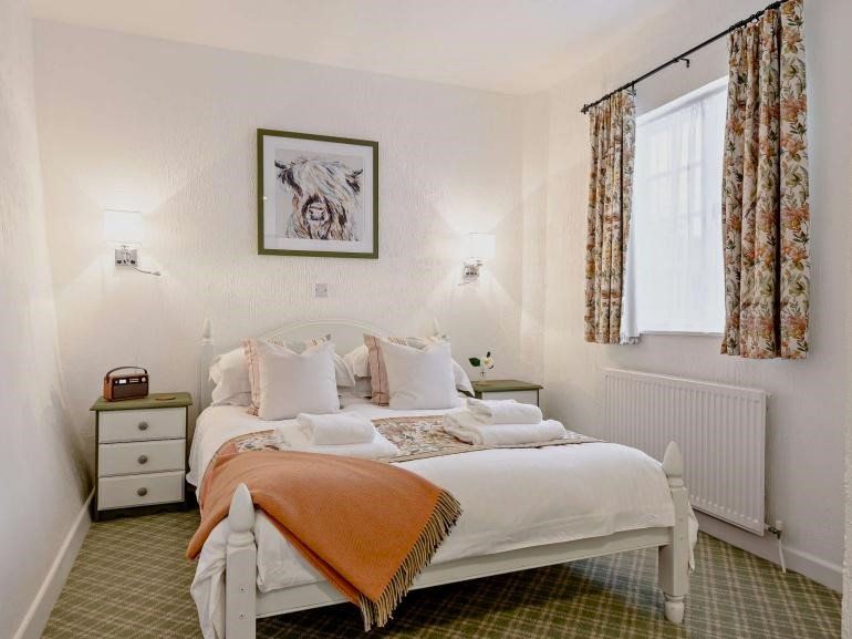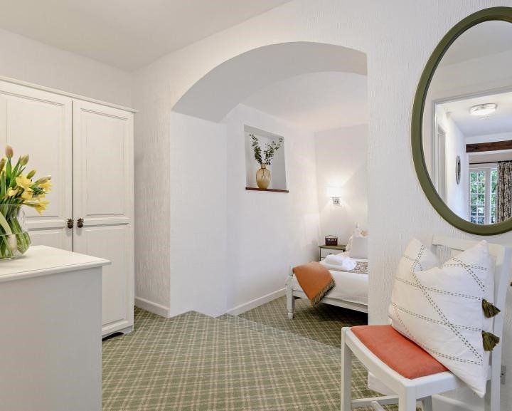 Tucked away from the main courtyard, The Old Coach House offers a secluded terrace with two seating options and dog-proof fencing. It is conveniently situated equidistantly from the medieval village of Dunster and the coastal town of Minehead, both approximately one mile away. The property has four self-catering cottages on-site that enjoy shared access to the outdoor heated swimming pool, complete with poolside furniture and a walled area. There is also a 3-acre paddock on the premises, which offers stunning views of the West Somerset Steam Railway and the Welsh coast.