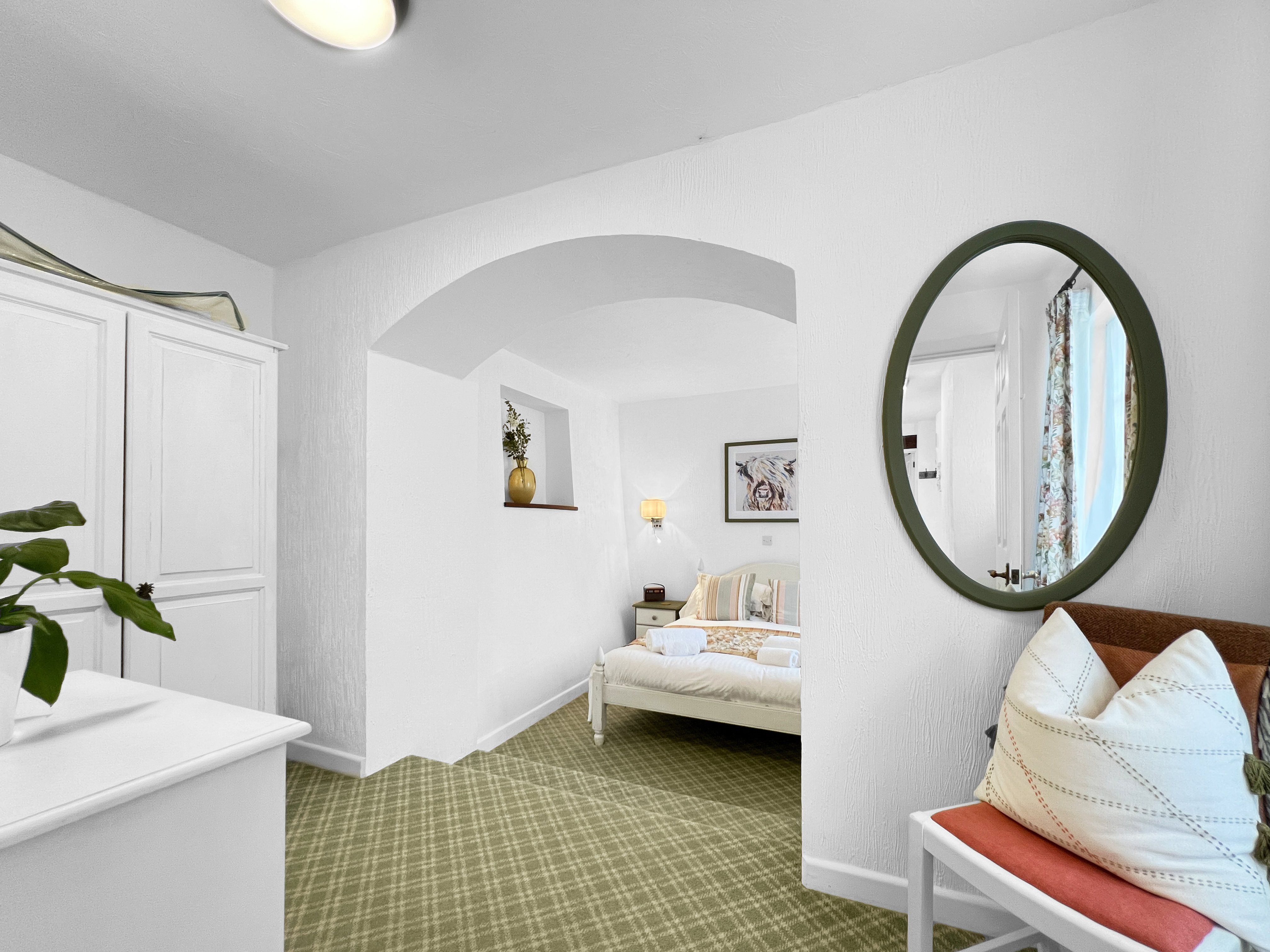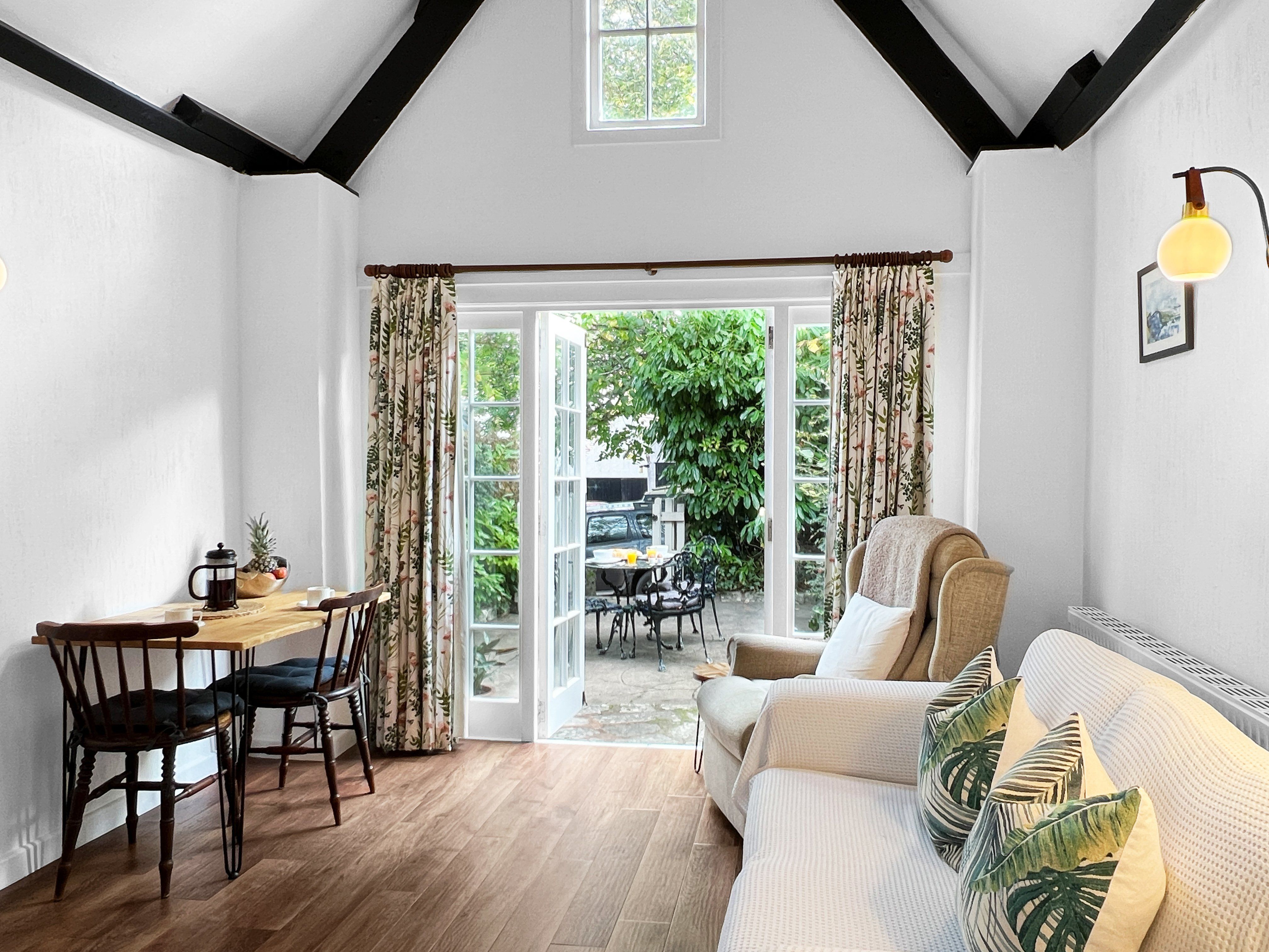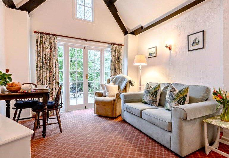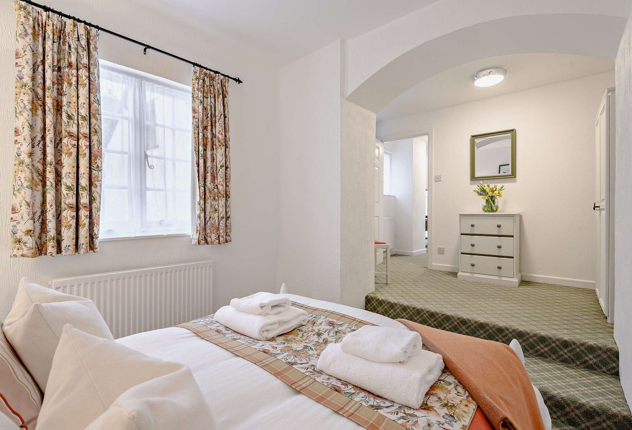 Tucked away from the main courtyard, The Old Coach House offers a secluded terrace with two seating options and dog-proof fencing. It is conveniently situated equidistantly from the medieval village of Dunster and the coastal town of Minehead, both approximately one mile away. The property has four self-catering cottages on-site that enjoy shared access to the outdoor heated swimming pool, complete with poolside furniture and a walled area. There is also a 3-acre paddock on the premises, which offers stunning views of the West Somerset Steam Railway and the Welsh coast.