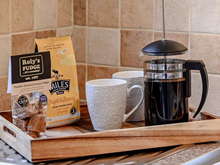 Local specialty Miles tea and coffee are provided as well as sugar, salt & pepper and olive oil. A pink of local milk is provided to ensure you can have a hot drink as soon as you arrive.