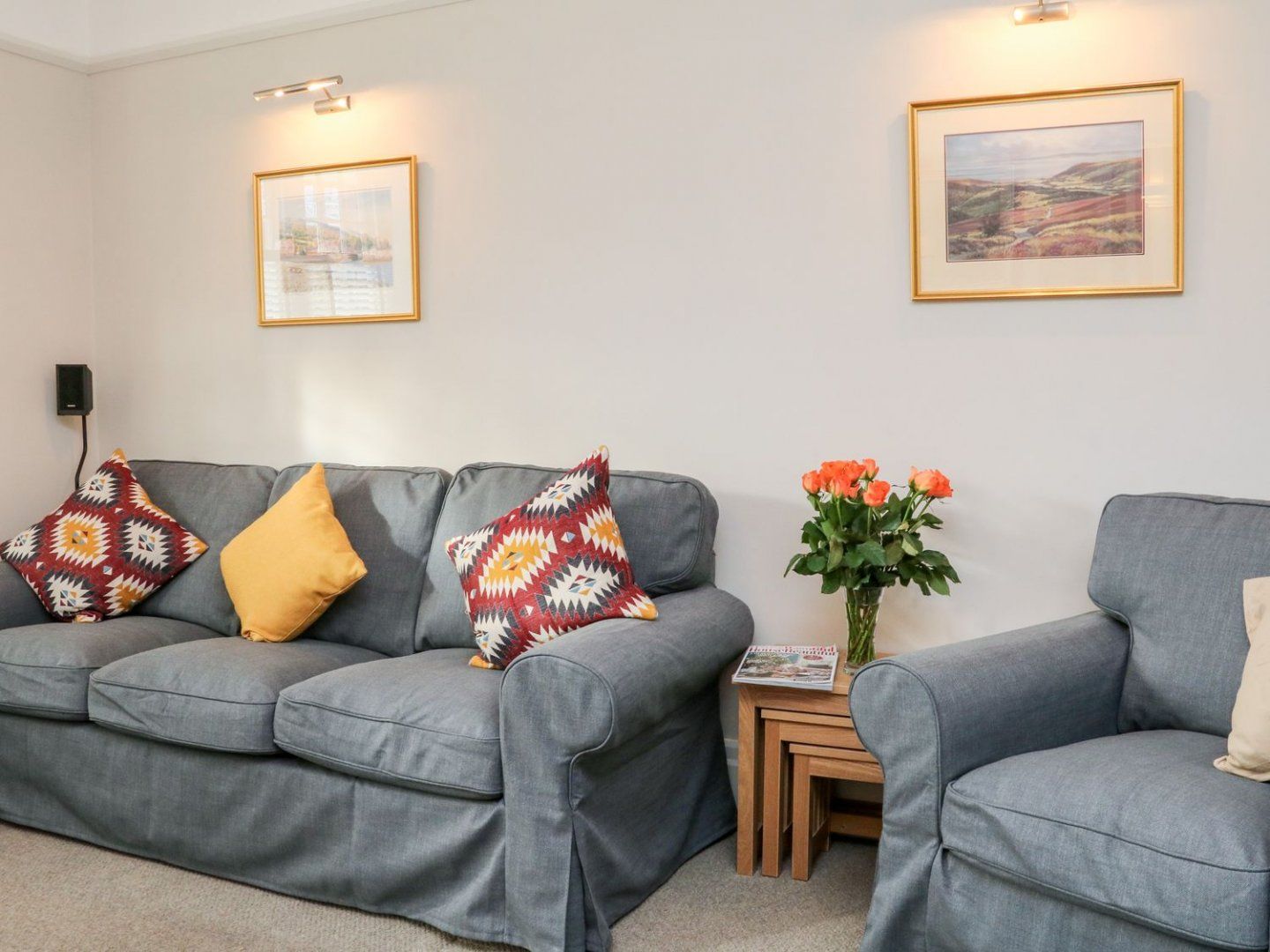Amenities Gas central heating. Electric Range oven and gas hob, microwave, fridge/freezer, dishwasher, washing machine. TV, WiFi, Bluetooth HiFi with two HiFi speakers (in the kitchen), Bluetooth party speaker with disco lights and a selection of books, games and DVDs. Fuel, power and starter for woodburning stove inc. in rent. Bed linen and towels inc. in rent. Highchair and travel cot available on request. Ample off-road parking. Front and side garden. Rear garden with lawn and patio area with furniture and barbecue. Two well-behaved dogs welcome. Sorry, no smoking. Shop and pub 0.1 miles. Note: The fireplace in the sitting room is not to be used. Note: Electric car charging is not permitted at the property