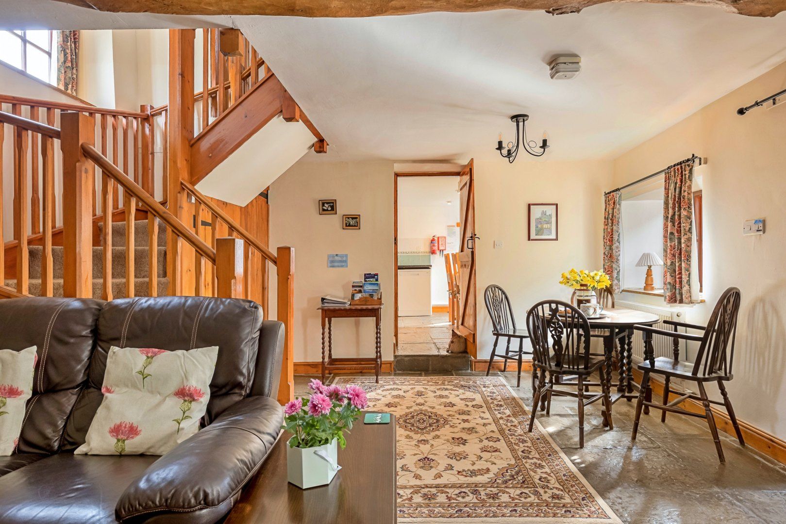 Boasting a recently refurbished kitchen cum dining room complete with fantastic flagstone floors, a cosy sitting room with exposed brick fireplace and wood burning stove and beautifully beamed sloping ceilings in the bedrooms, this truly is the homeliest of homes. You’ll love sunny mornings out in the courtyard, preparing family favourites on the spacious countertops in the kitchen, and gathering around the wooden table for sociable meal times. The table in the sitting room is great for jigsaws, games of cards or planning the day’s activities. At the day’s end, read or recline on the leather sofas or host a movie night in front of the wood burning stove.