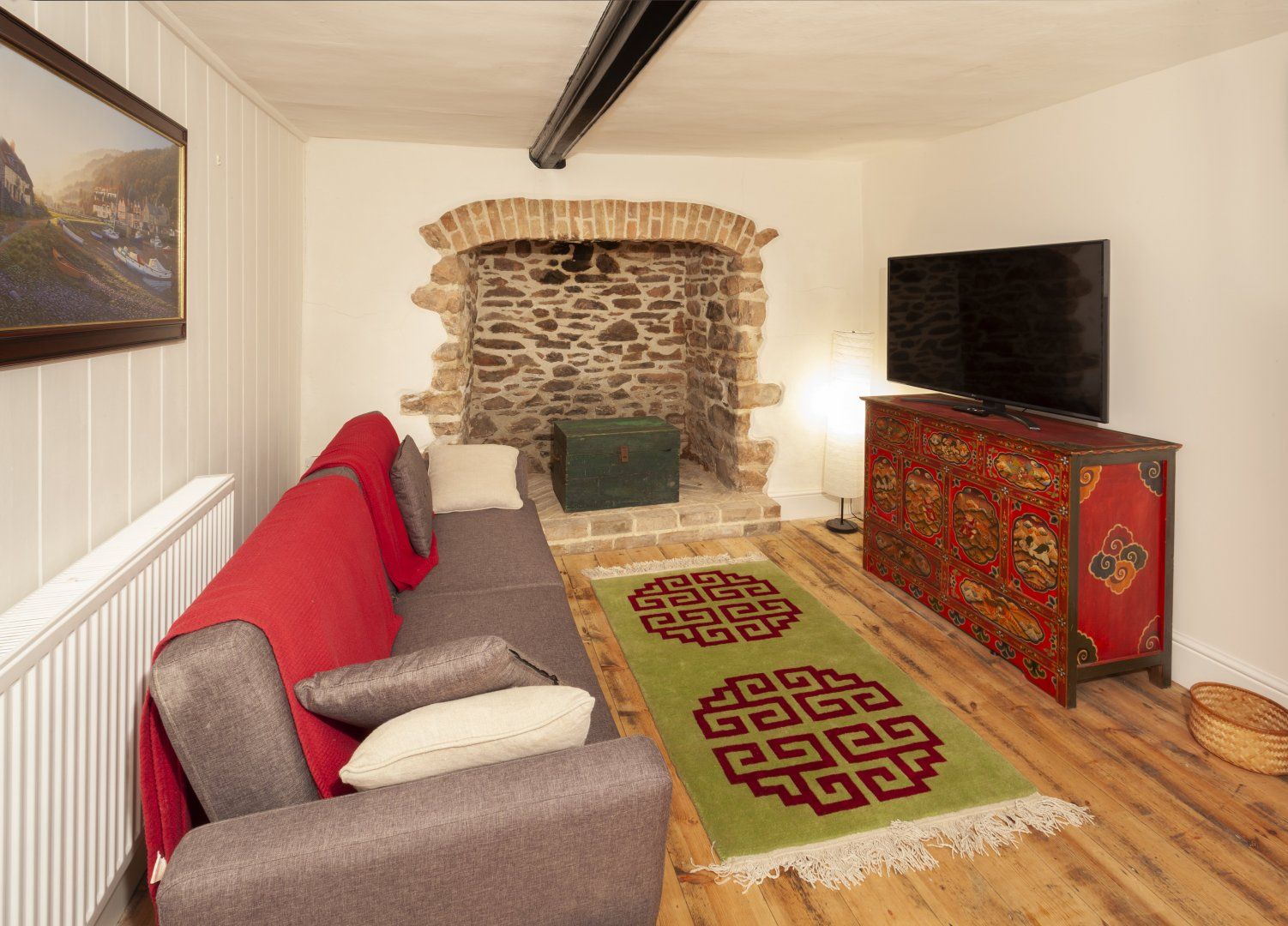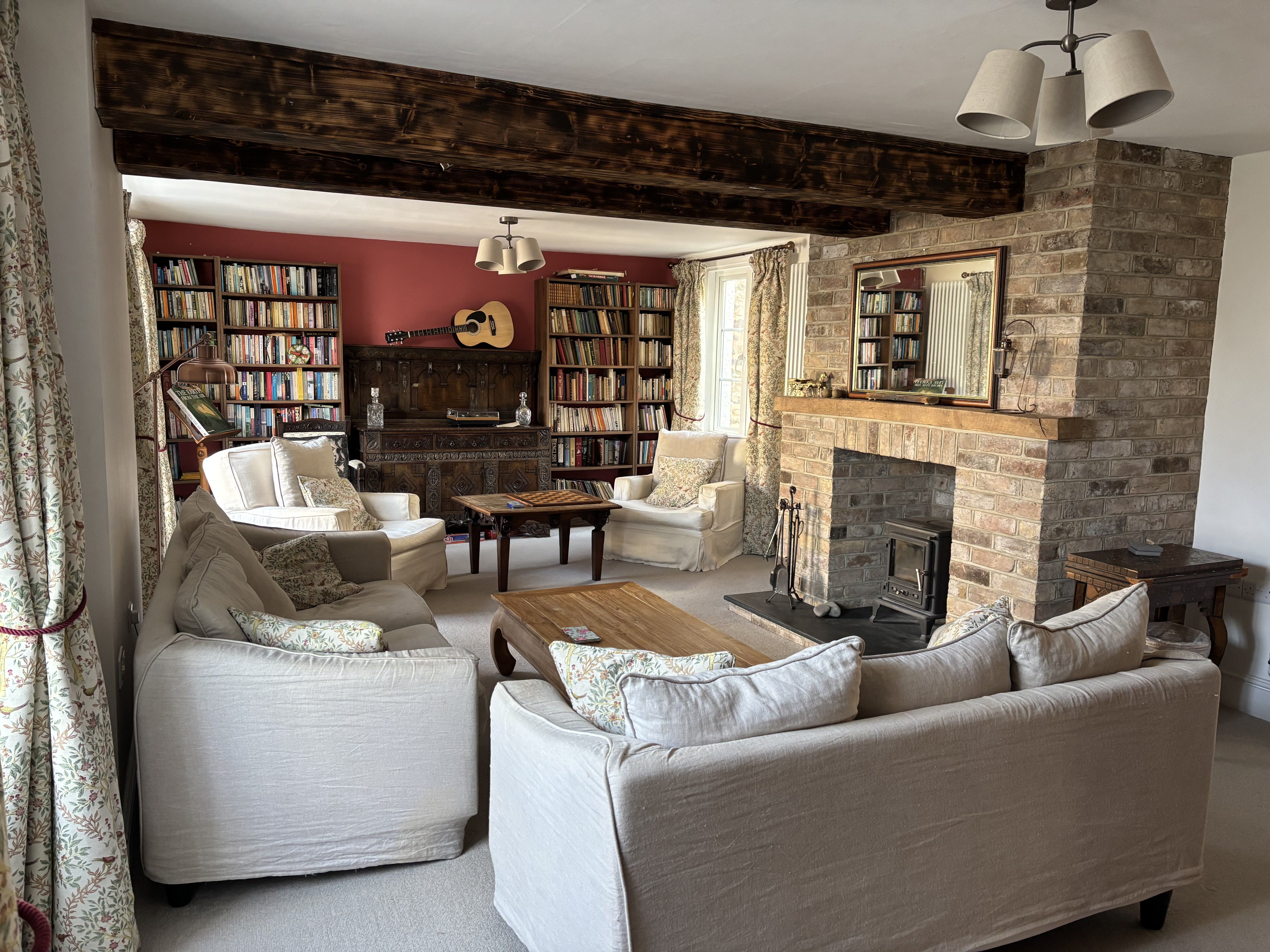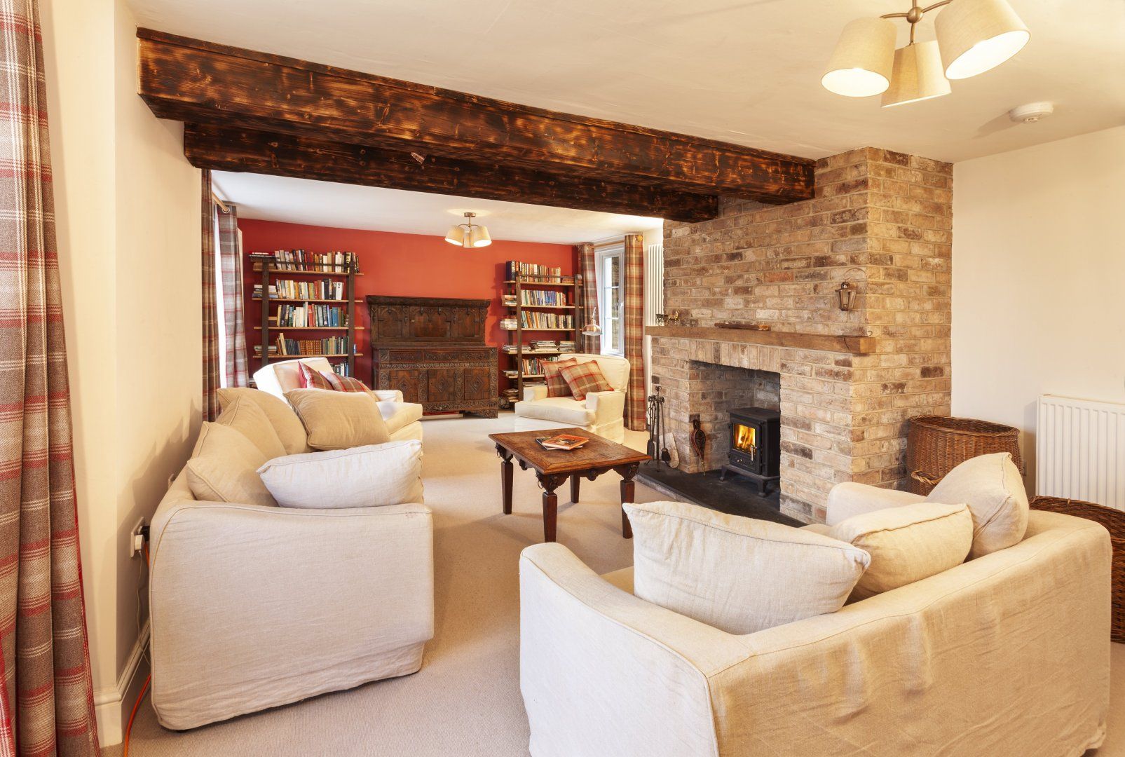 Facing the front of the property is the spacious sitting room, with a piano, plenty of books and games and comfortable seating for a large group or family. The log burner is a welcome addition for the evenings. On the other side of the staircase is the 'snug' where there is a large Smart TV and period fireplace (not currently in use), a lovely space for cold nights or a TV evening. There is a desk and plenty of DVD's to select from. The sofa also pulls out as a bed and can accommodate 2 extra guests. A great teenage den even!