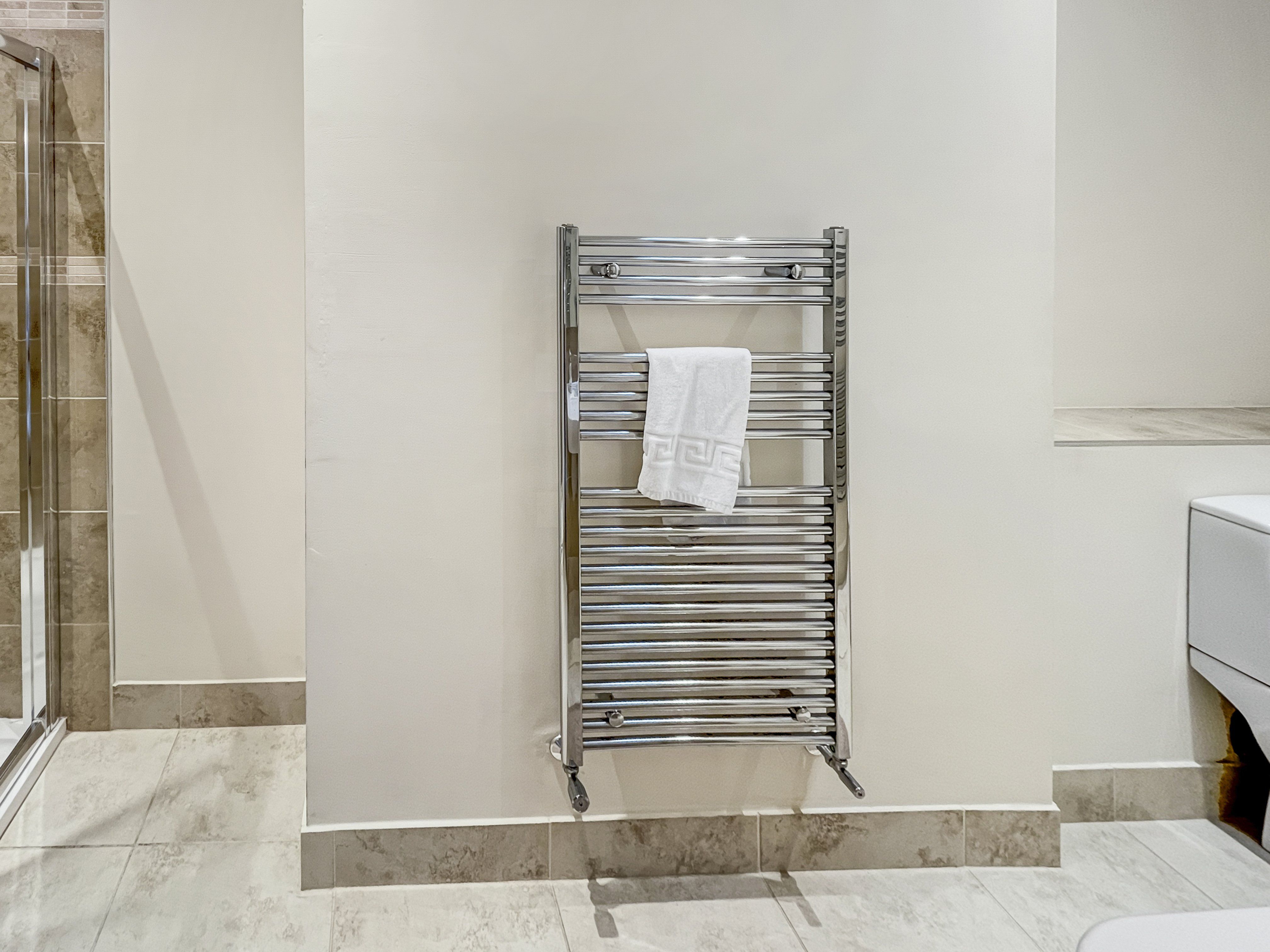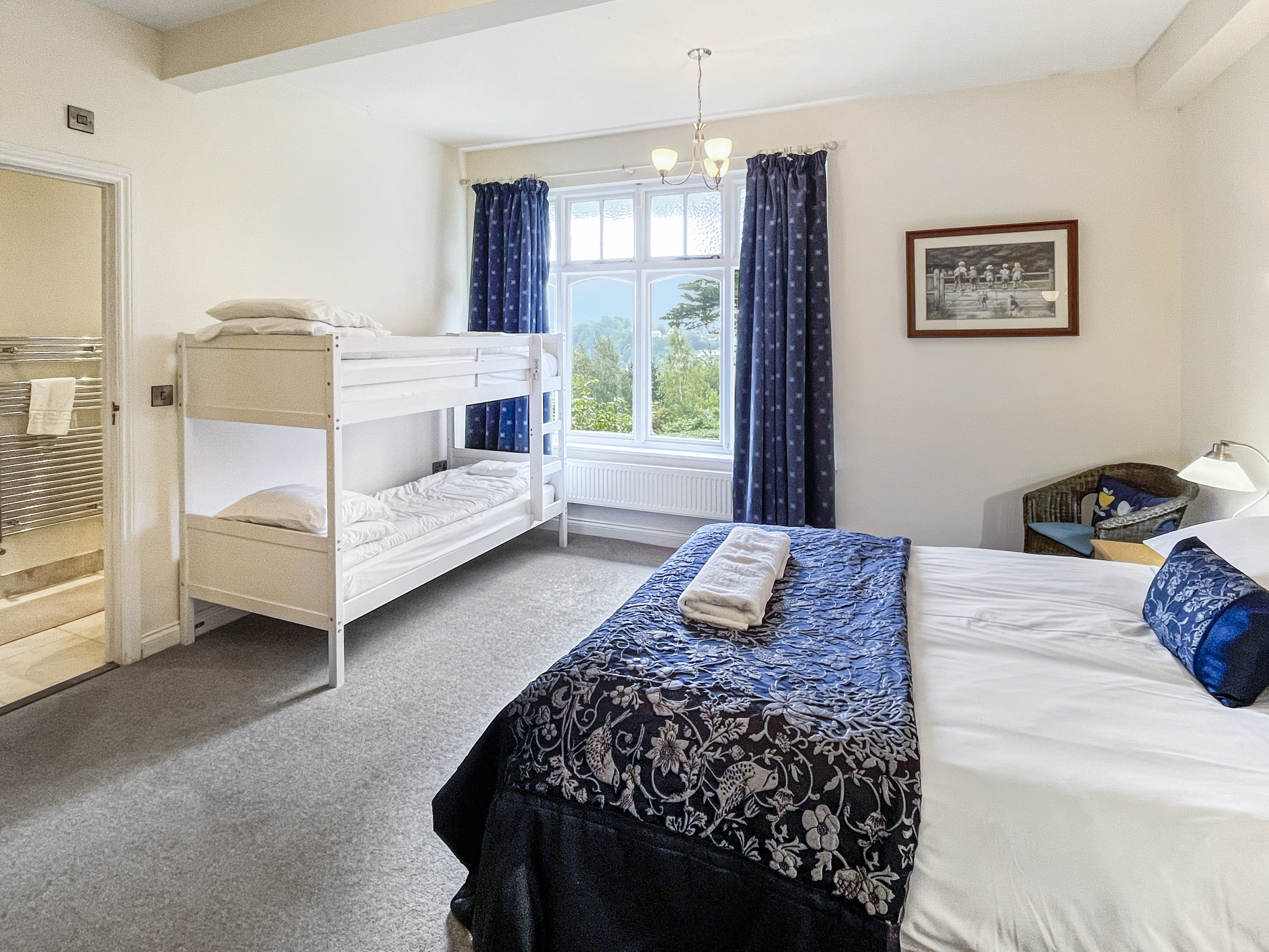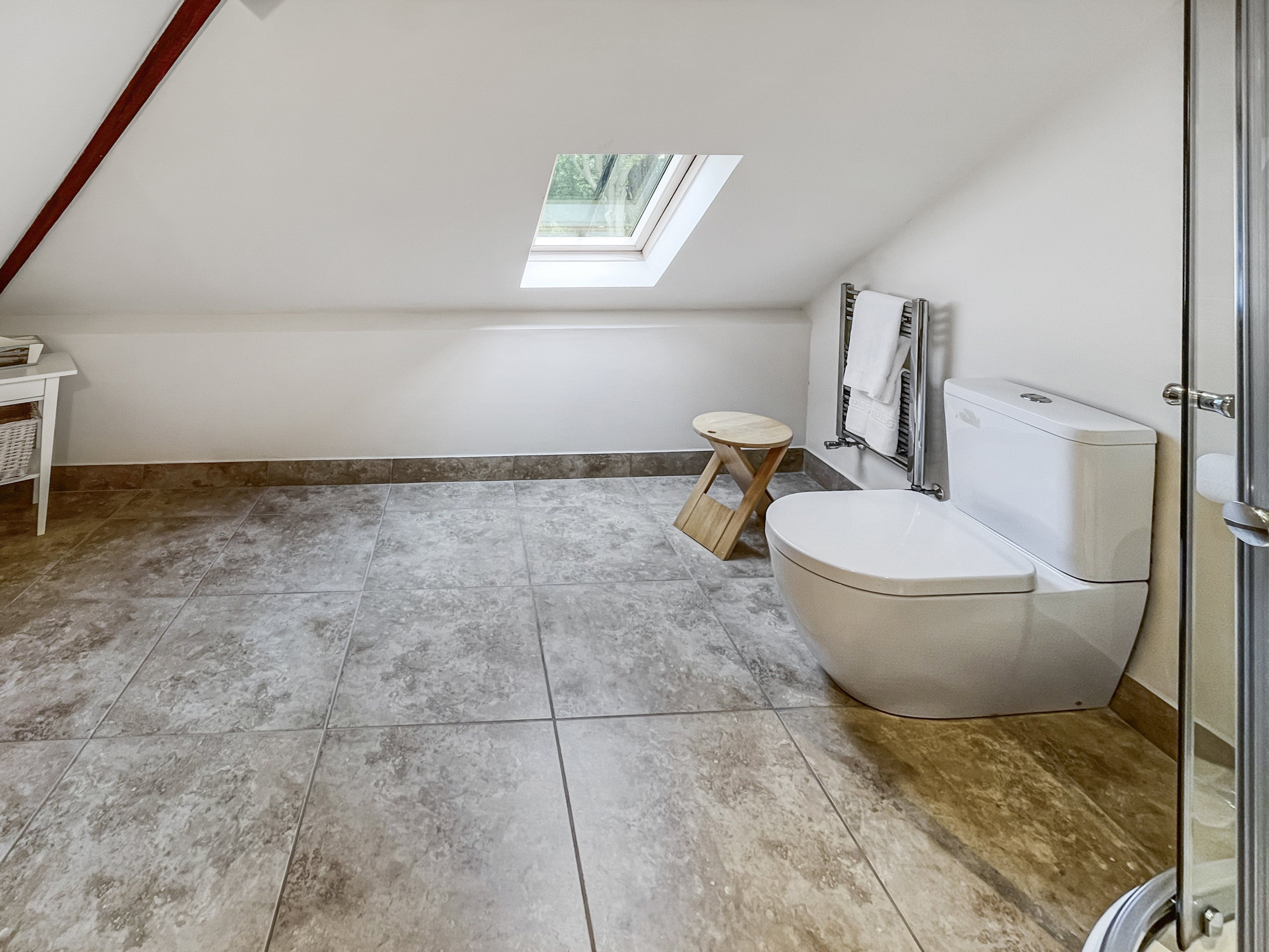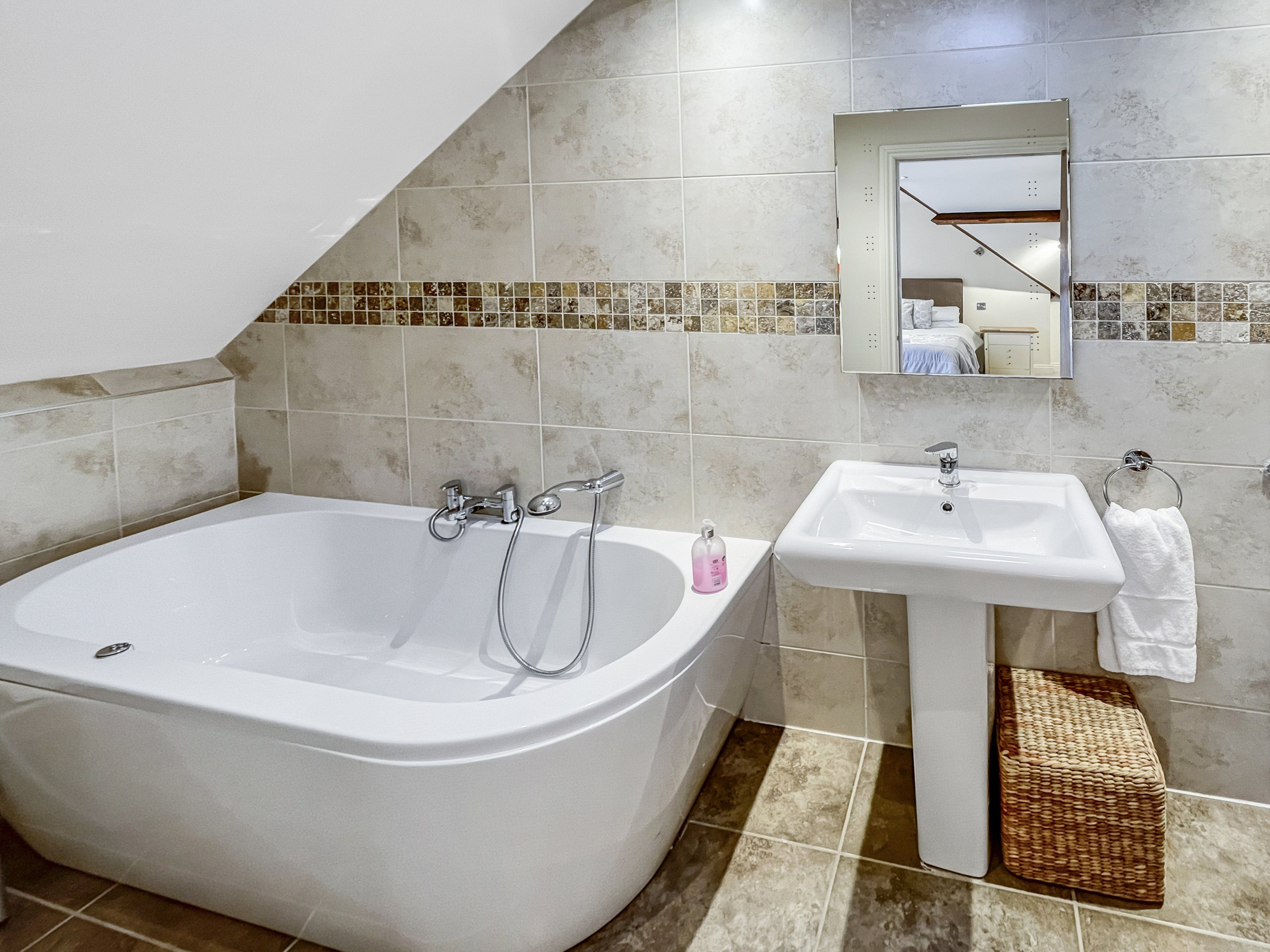 There are two bedrooms on the ground floor; one double bedroom (4'6 bed) with en-suite comprising a bath, separate shower, toilet, and hand basin. The other ground bedroom has king-sized (5') double bed plus bunk beds, and en-suite comprising a shower, toilet, and hand basin.