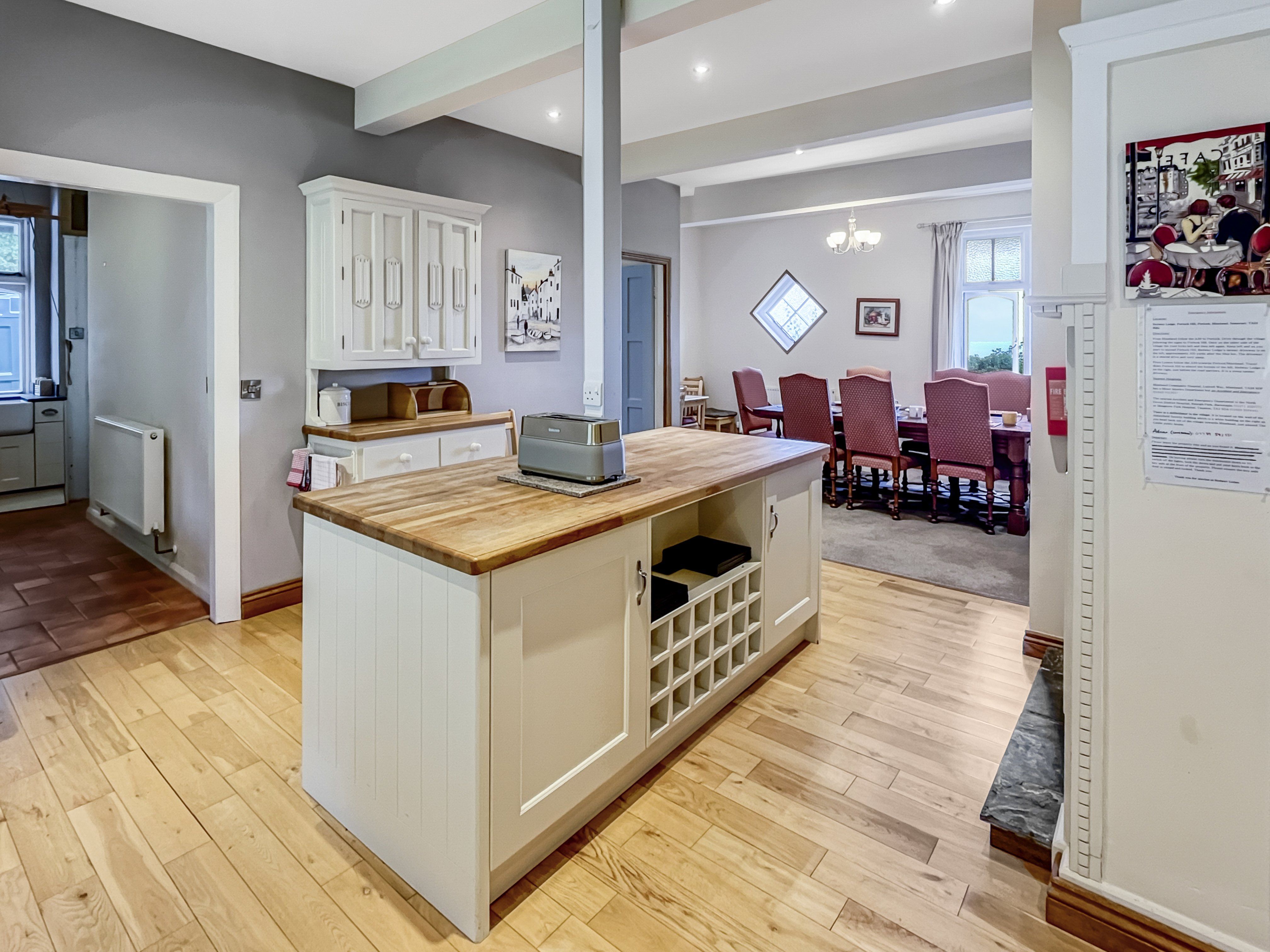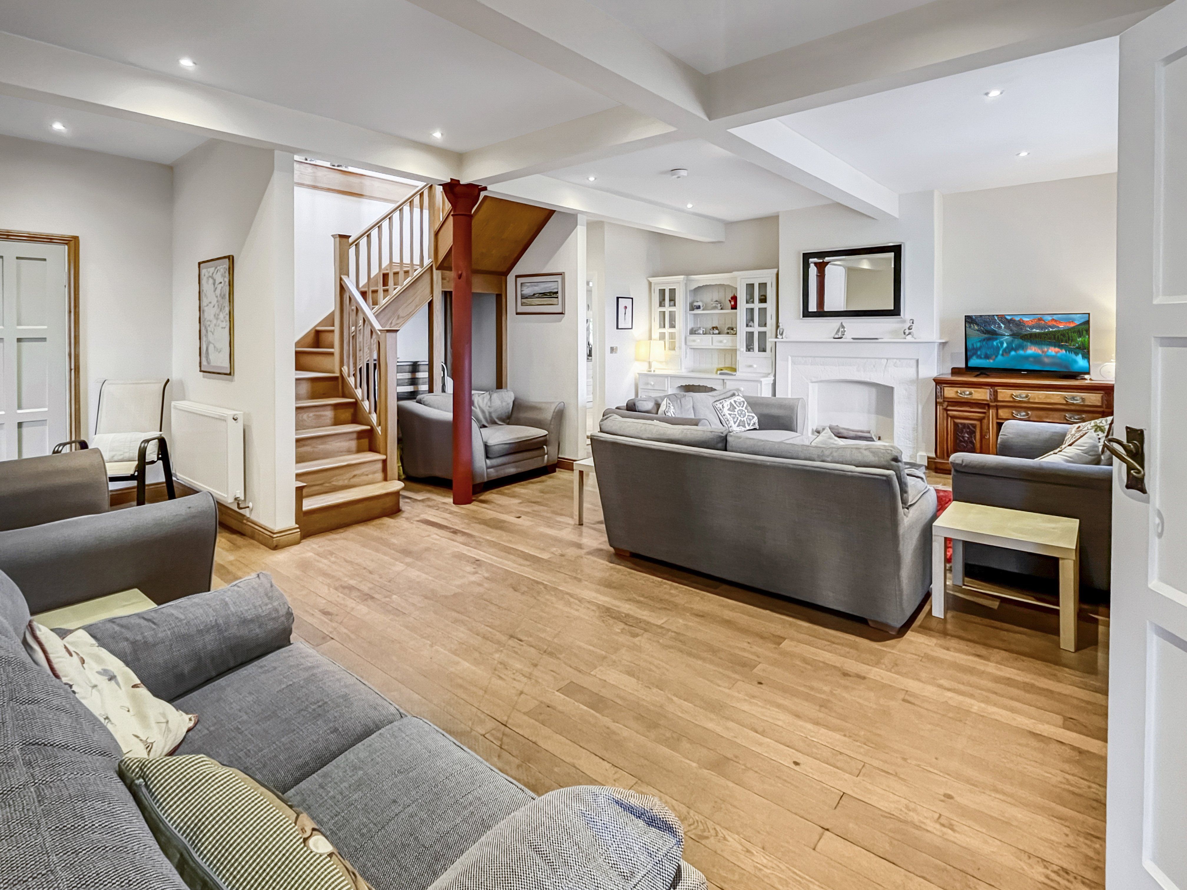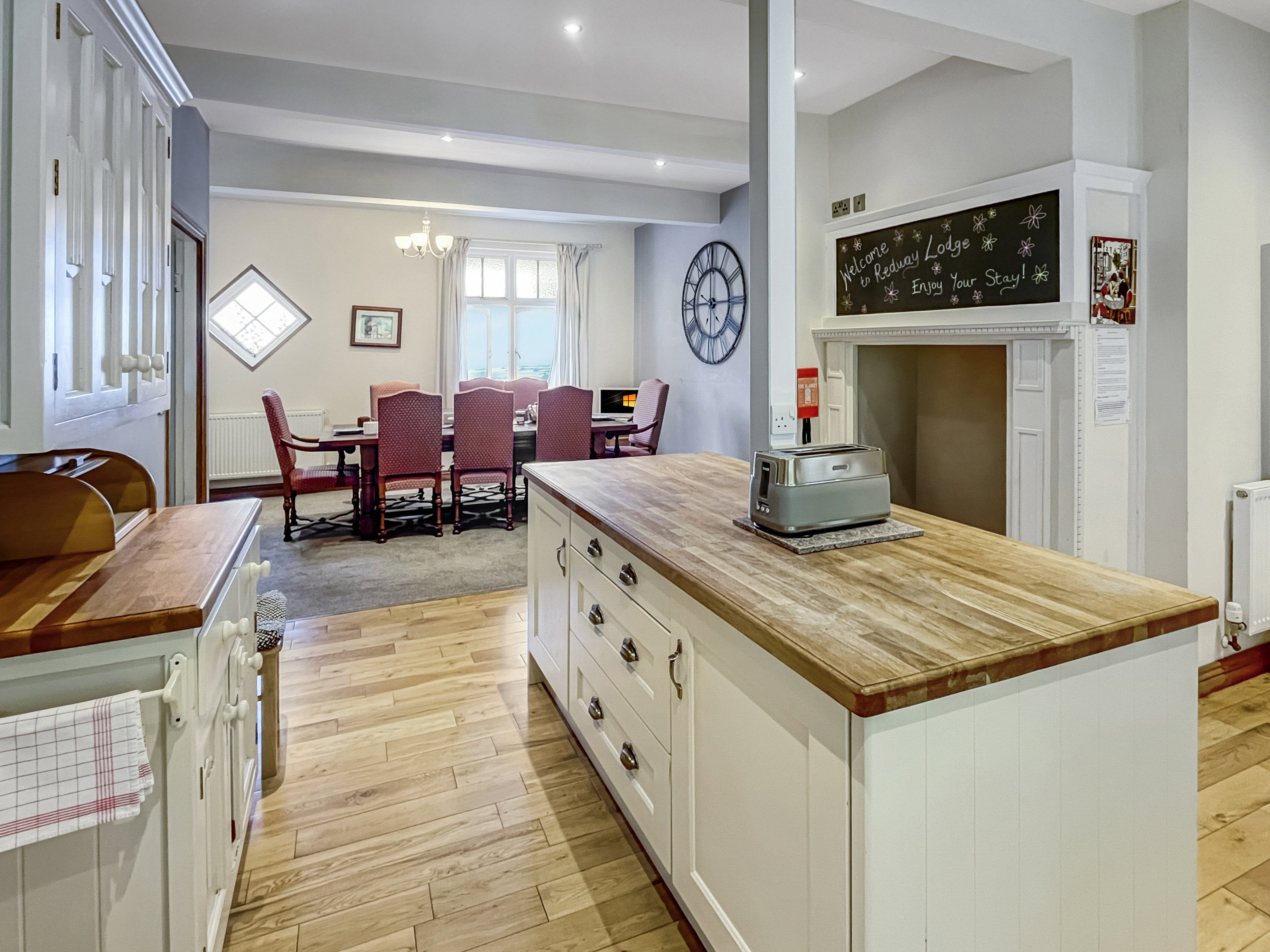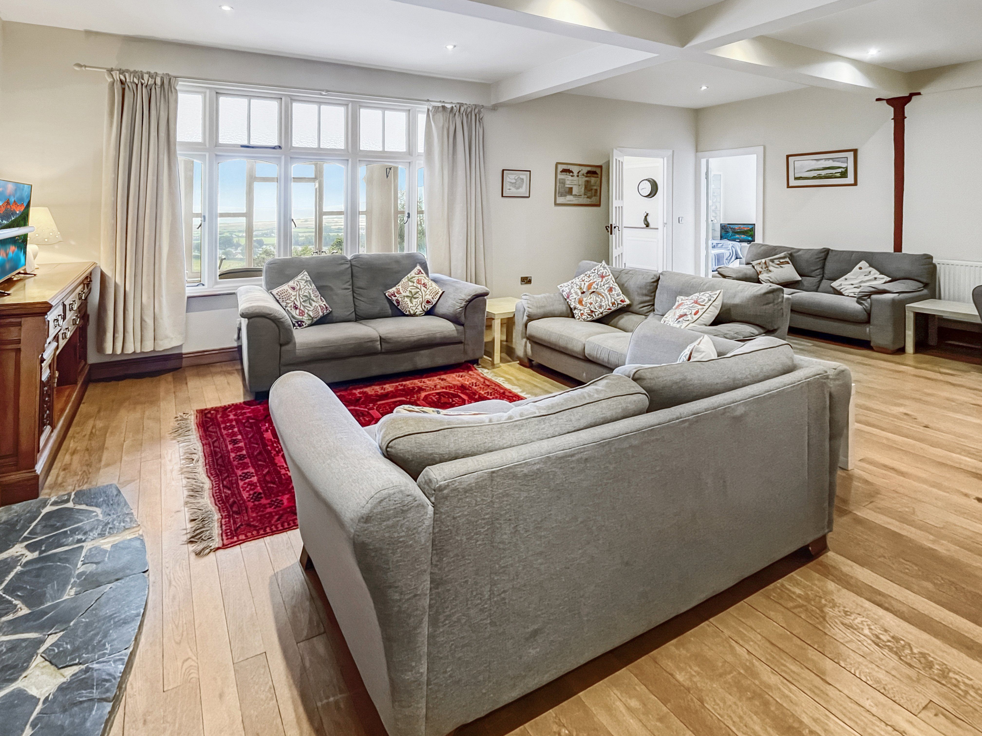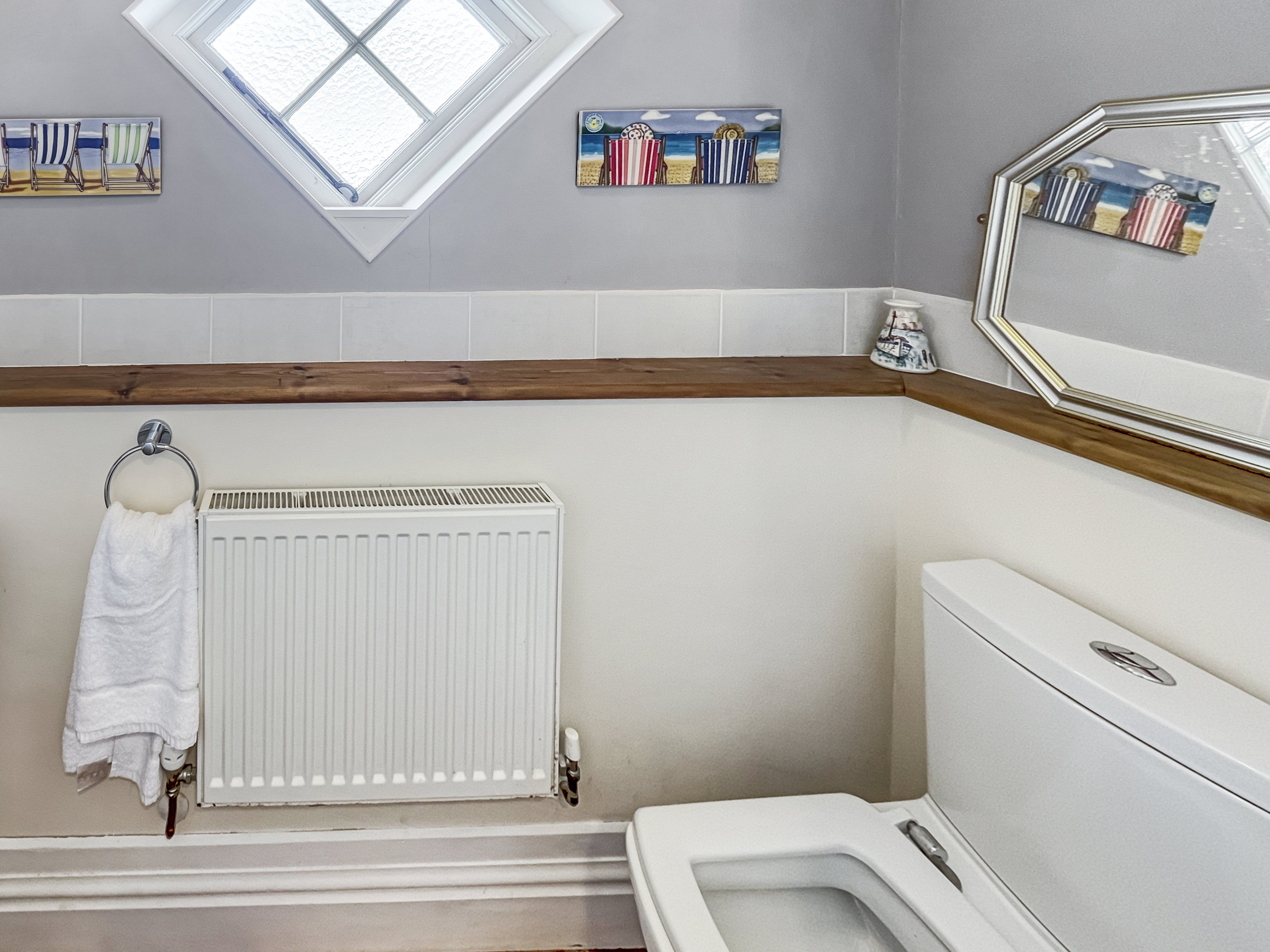 The spacious sitting room has large comfortable sofas and smart TV. A smaller sitting room off the main living area has been dedicated as children's playroom, there's a sofa, TV, DVD player and it's well stocked with games, toys and puzzles to help keep the little ones entertained. The kitchen includes an electric double oven, gas hob, fridge, microwave, kettle, toaster, and a plentiful supply of cookware, crockery, cutlery, glasses, etc. The main dining table can seat 8 and the smaller table can seat 4. The utility is off the kitchen, this is where the washing machine is situated and fridge-freezer (freezer capacity approx 100L).