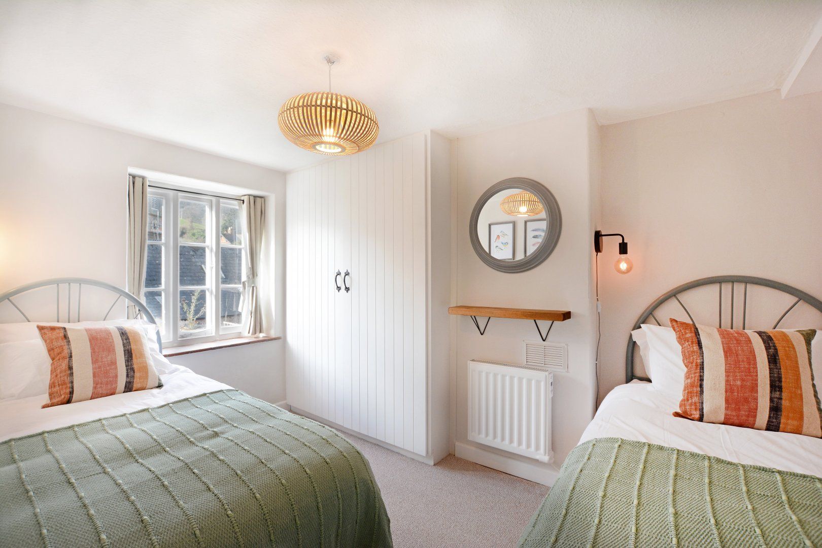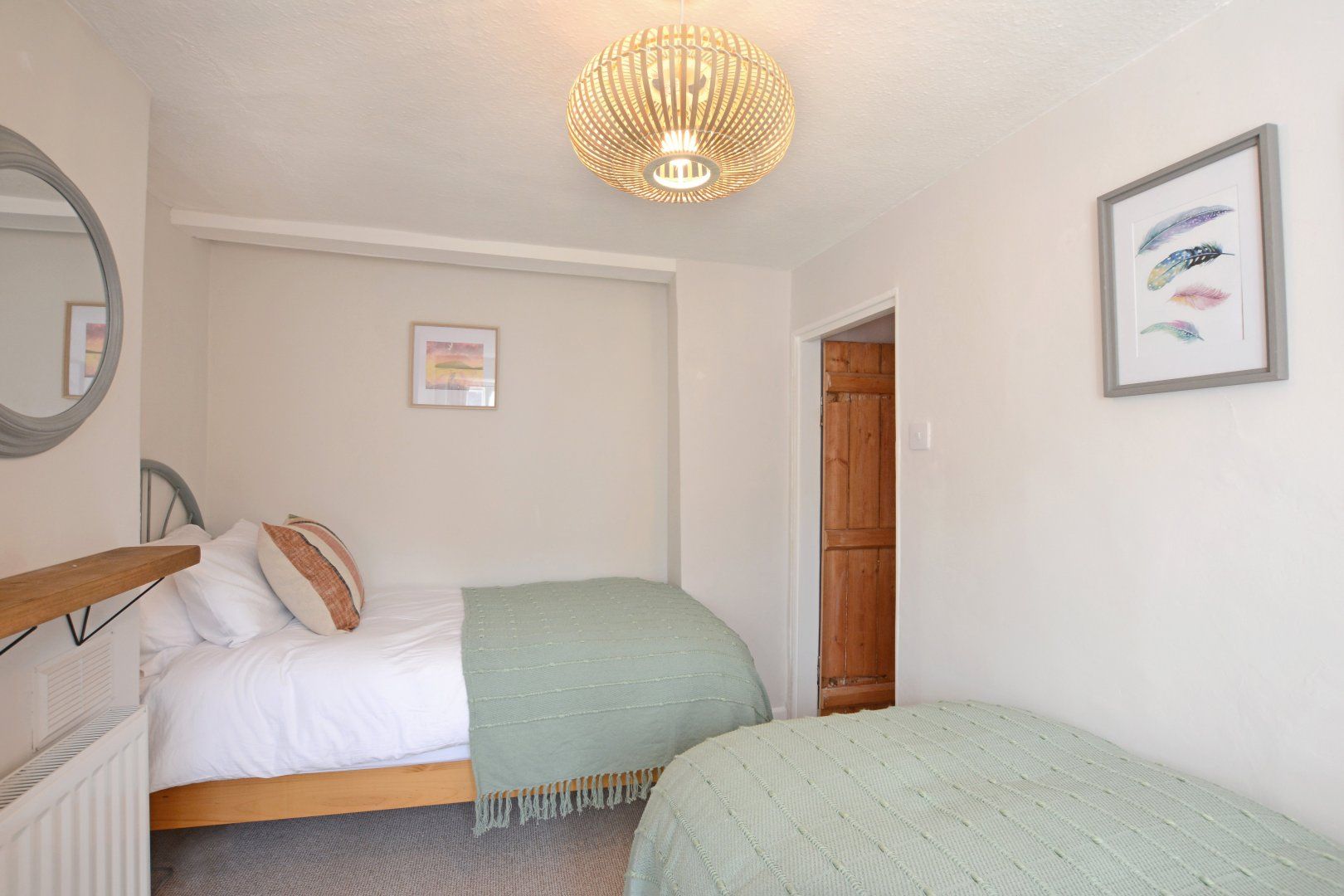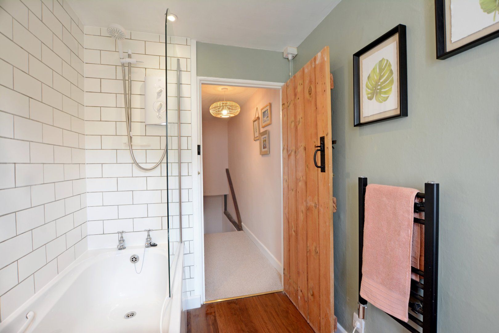 Head up the stairs – please note these are steep, as is traditional with this style of cottage – the master bedroom has a double bed and the second bedroom has twin beds, while the bathroom has an electric shower over the bath, heated towel rail, toilet and hand basin.