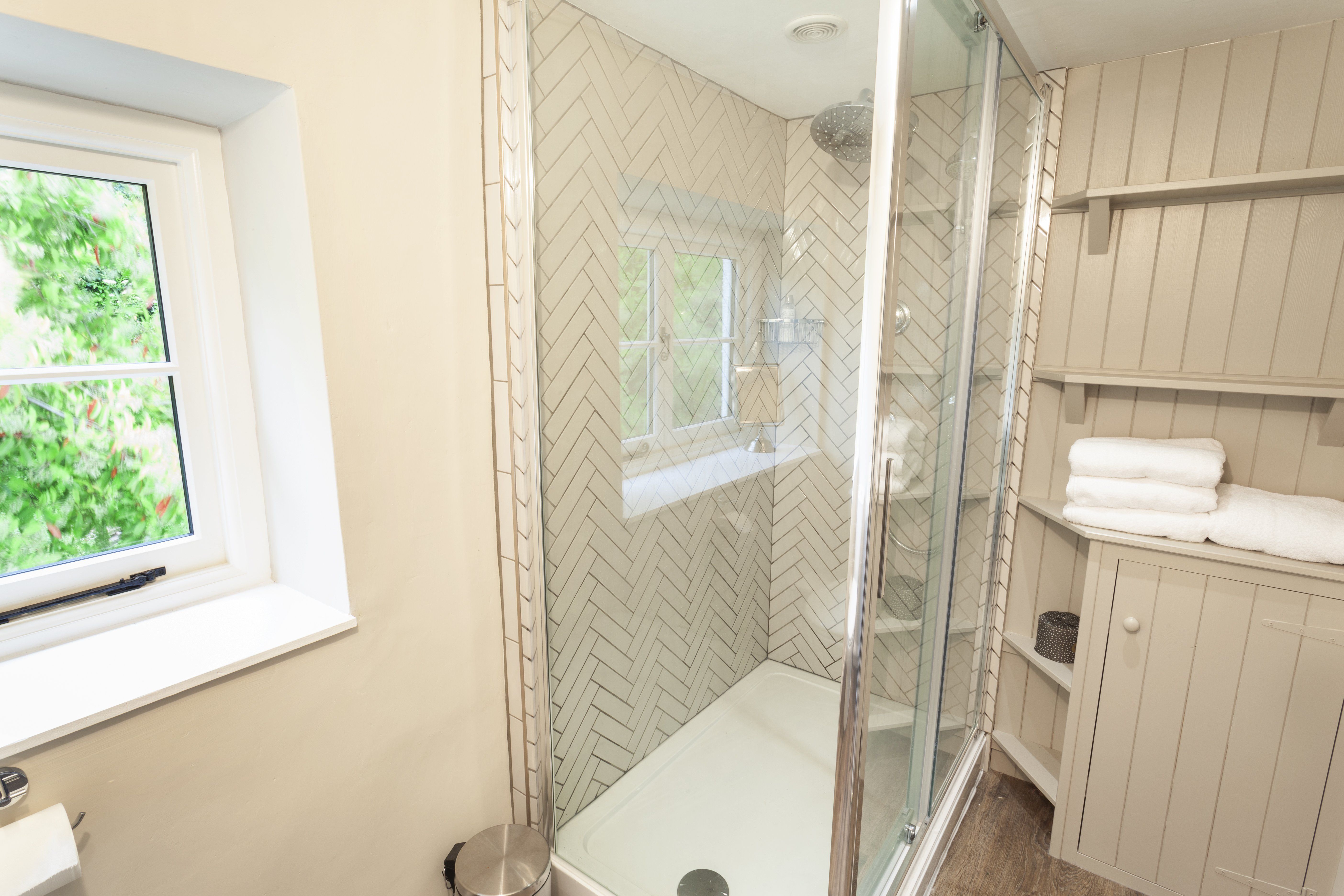 There are two family bathrooms upstairs, one has a walk-in shower, toilet and hand basin, the other has a shower over a bath, a toilet and hand basin.
