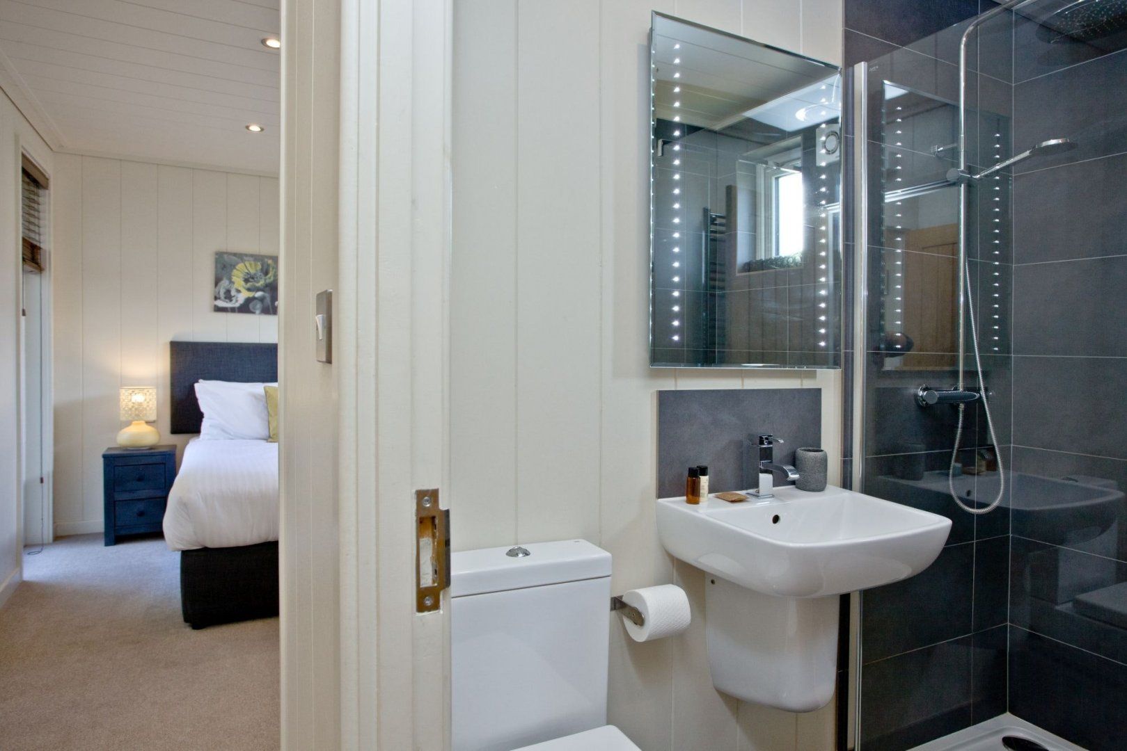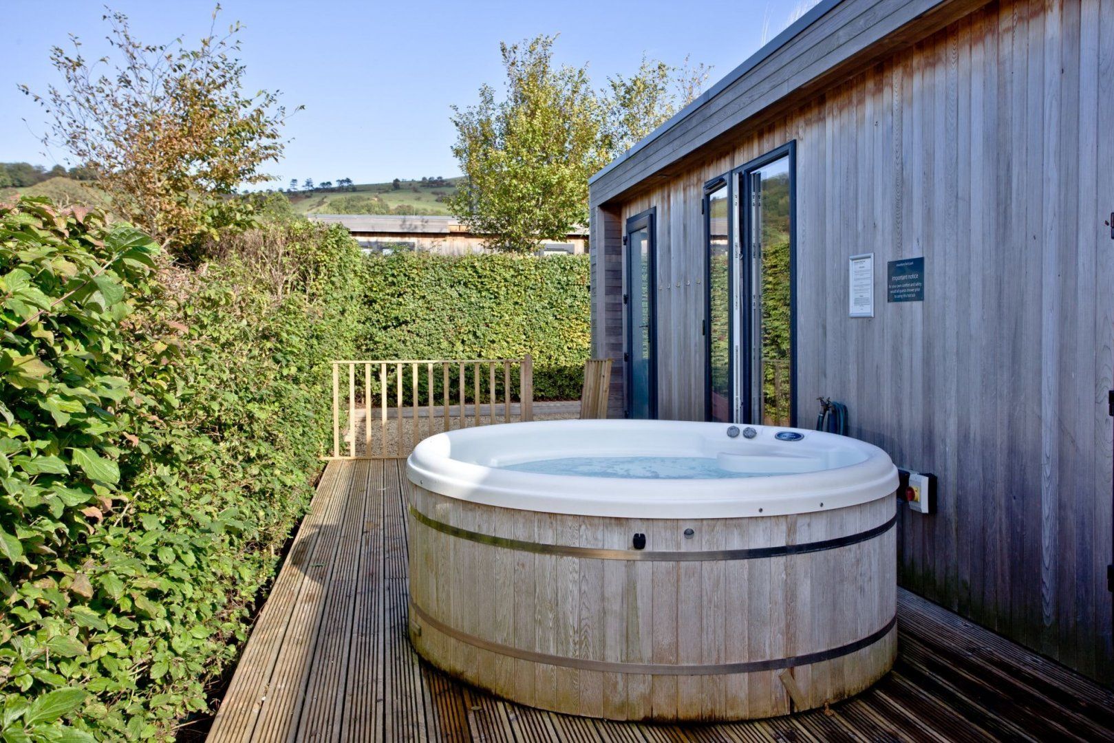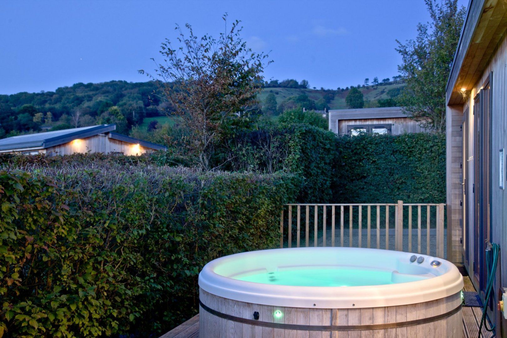 Nestled at the foot of the Mendip Hills within a 14-acre country estate, you'll find this eco-lodge retreat. Perfect for families, there's plenty of space inside and out to spill out and relax here. When the sun shines, enjoy alfresco breakfasts or evening barbecues on the south-facing deck before whiling away a few hours in the hot tub. And on wintery months, snuggle up for a family movie night in the stylish living space – there's a DVD player and a selection of films to choose from. When it's time to embrace the great outdoors, you'll be within easy reach of all the region's must-sees. Don your hiking boots for bracing walks along the West Mendip Way pass, just two minutes from your door. Spend a morning strolling around the charming village of Cheddar (less than ten minutes drive) to pick up some obligatory cheese and cider. And a little further, the historic city of Wells (twenty-minute drive) – home to a picturesque cathedral, the beautiful Bishop's Palace, and a twice-weekly farmer's market. Just be sure to make it home for dusk – there's no finer place to watch the day turn to night than in the bubbling hot tub. Turn on the LED lighting to set the mood and let the stars be your only entertainment.