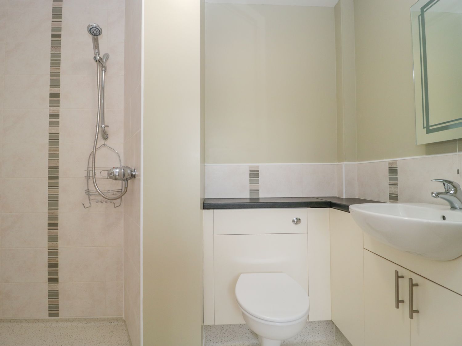 Accomodation Details Please note: this property requires a minimum stay of 3 nights. From Mid-July until end of August only weekly bookings can be accommodated starting on a Friday. All ground floor. One bedroom: 1 x king-size double. Wet room with walk-in shower, basin and WC. Open-plan living room with kitchen, dining area and sitting area with electric fire