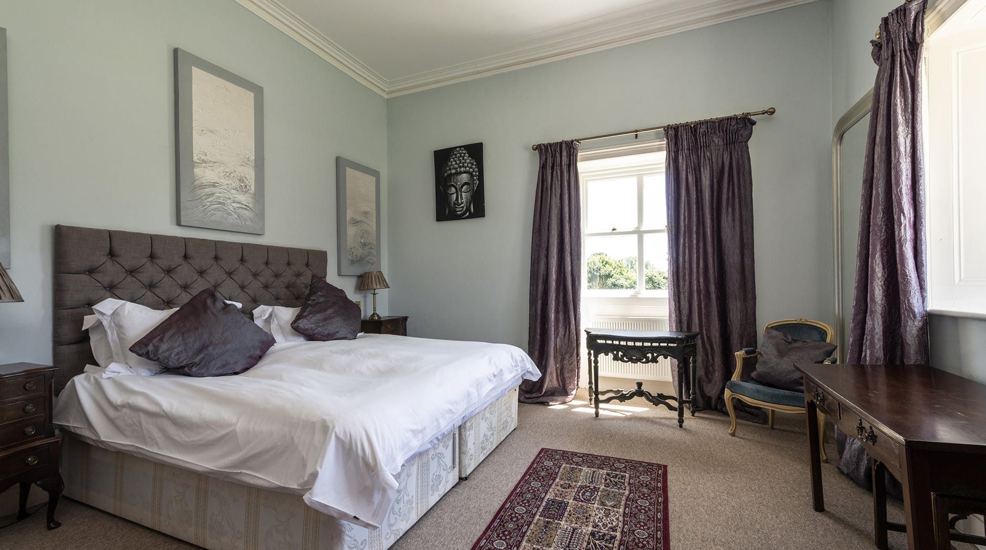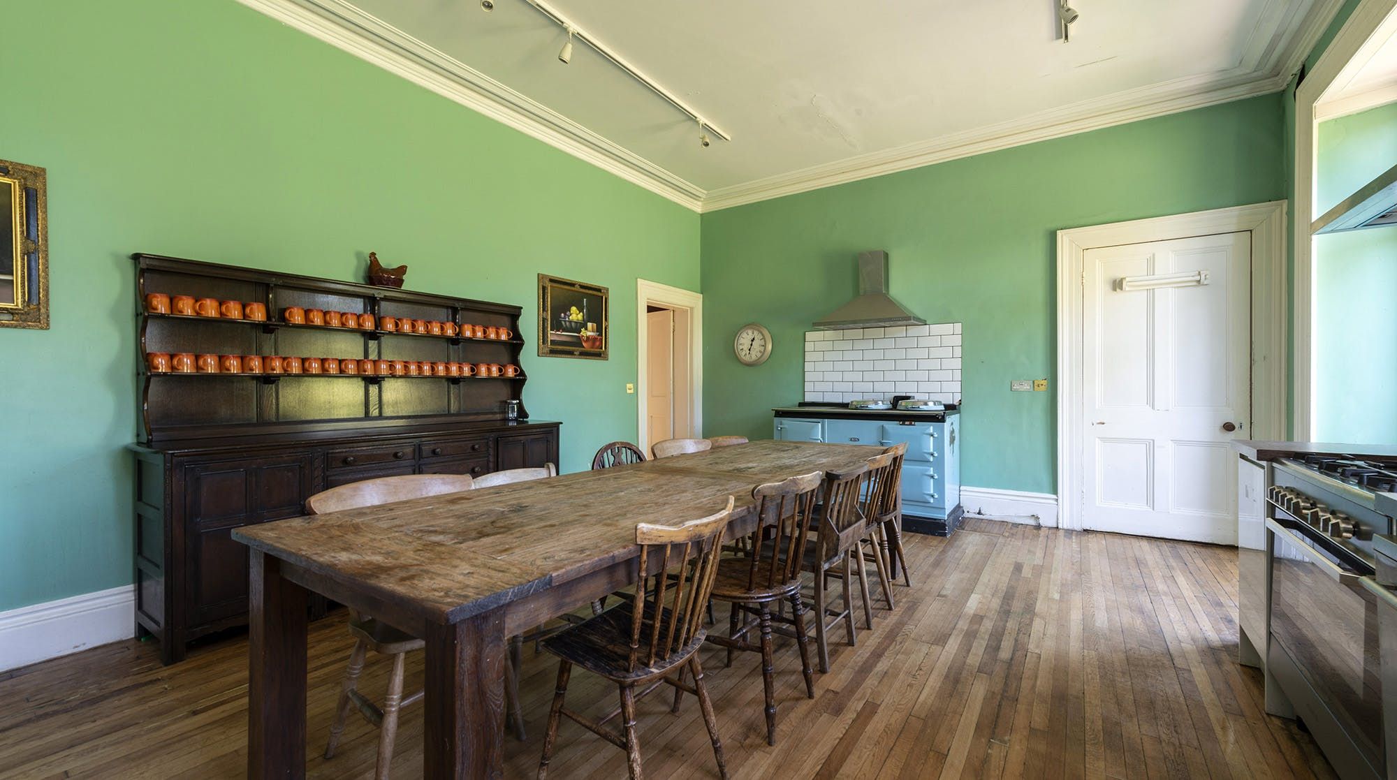 Accommodation is spread across the main house, which dates back to the 18th century, and a separate cottage with its own farmhouse-style kitchen and cosy living room. In the main house, the ground floor is everything you expect from an updated Georgian manor – a library-like sitting room, a grand lounge with gilded mirrors and chandeliers, oil paintings adorning the hallway walls, and a big, bright dining and sitting room looking out over the gardens. The kitchen is a vision of farmhouse charm, with a purring Aga at its centre.