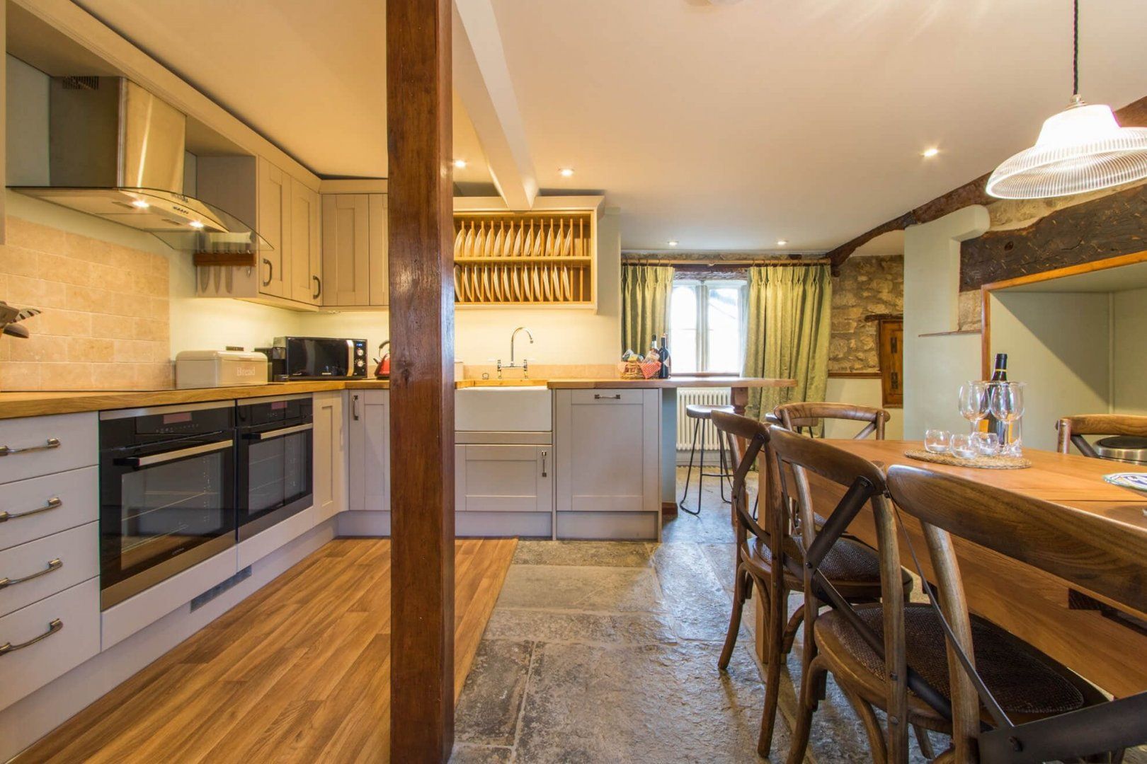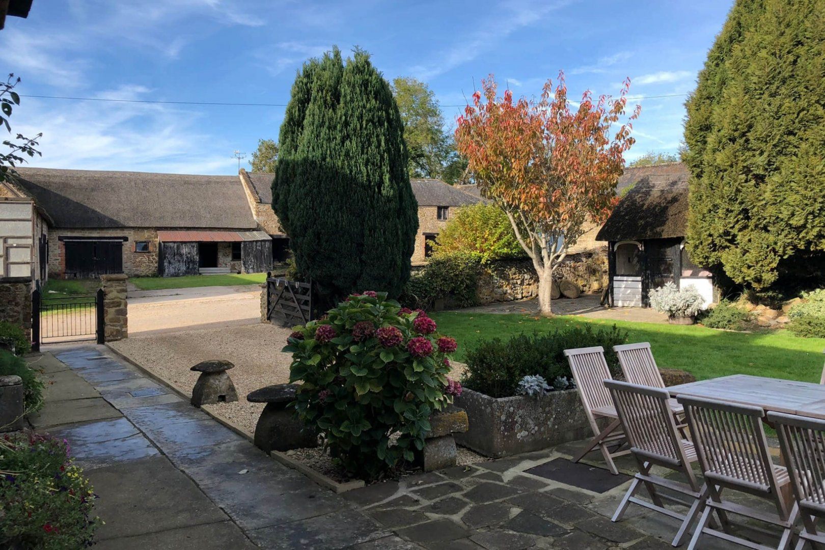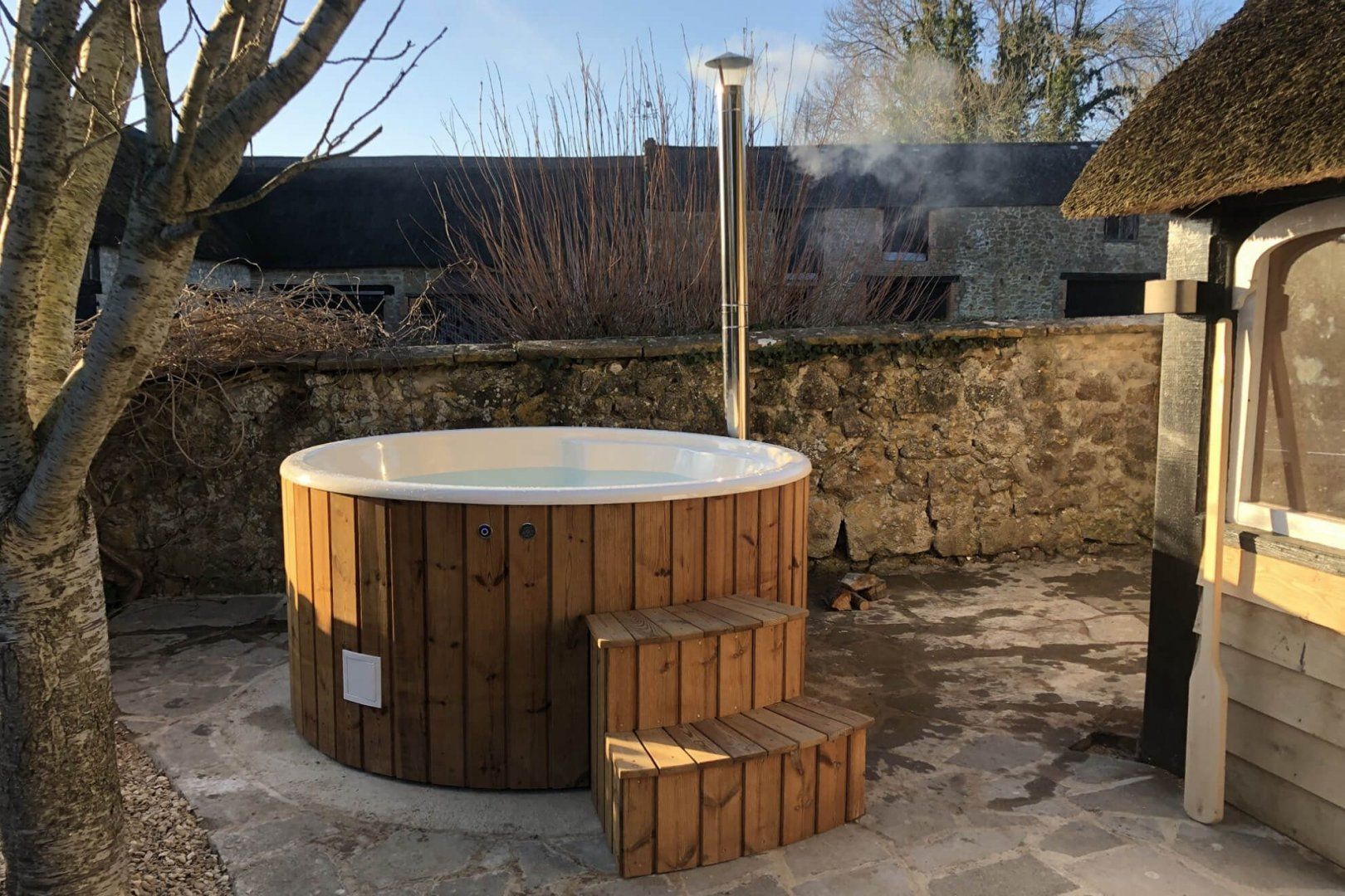 Stay in this seventeenth-century Grade II-listed farmhouse for a quintessential English country escape. This rural spot is a great choice for larger groups looking for a cosy bolthole – return from a day spent strolling through the myriad of local country lanes and footpaths, and be welcomed in by the crackling inglenook fireplace and cosy living room. There are all sorts of thoughtful touches that your hosts have added, including a welcome hamper with some essentials, cakes, and local produce. So settle in for the night, whether you're sipping alfresco wine on the patio in the warmer months or knocking up a hearty meal in the country-house styled kitchen-come-dining room. Although, with a few great pubs within walking distance, we reckon you'll be eating out most nights. Come morning, active types or those simply feeling adventurous can take a thirty-minute drive to the sublime Jurassic Coast for a memorable day trip. Elsewhere, Barrington House – a National Trust house with gardens open to the public – is a twenty-minute drive from home, and well worth a visit, even if just for the charming tea room. When – weary from walking and full of scones – you do eventually return home, toast up those frozen toes by the wood-burning stove or get into the steamy hot tub for a stargazing session. There are four bedrooms – each with its own en-suite – so everyone has a private and comfortable space to retire to. And if you're planning an escape for up to fourteen guests, the adjacent cottage, Treacle Sponge, is also available to book and is connected by a corridor.