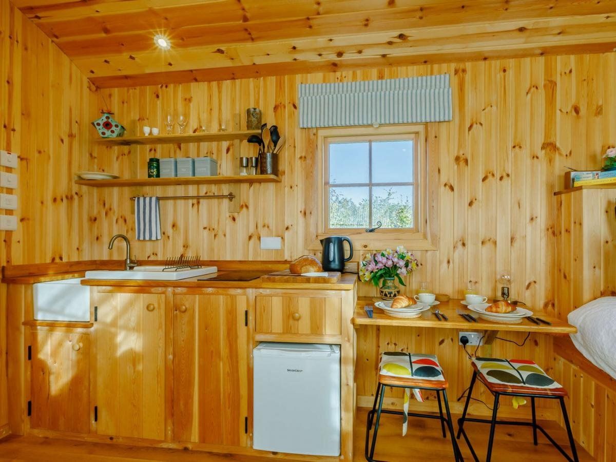 This hideaway invites you to slow down, take in far-reaching countryside views, and unwind in a private wood-fired hot tub after a day outdoors. If you’re in the mood to explore, bikes are available to borrow, and scenic walking or cycling routes begin right from your doorstep.