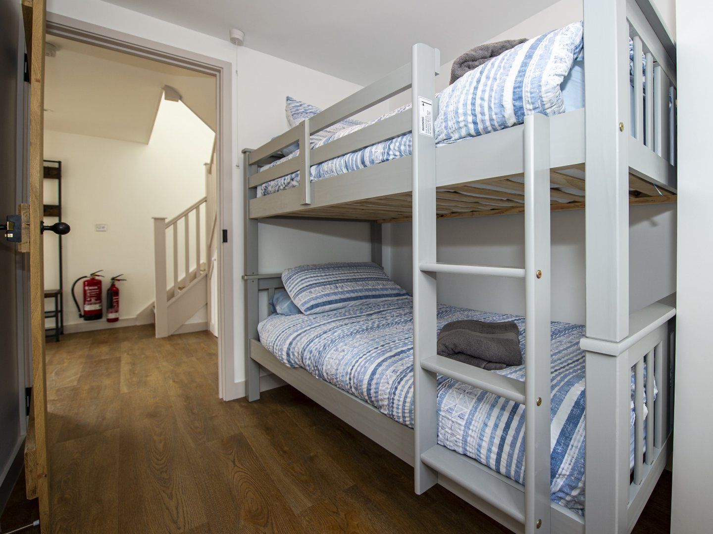 Accomodation Details Three bedrooms: 1 x king-size with en-suite shower, basin and WC, 1 x ground-floor king-size, 1 x children's bunk. Ground-floor shower room with basin and WC. Open-plan living area with kitchen, dining and sitting area