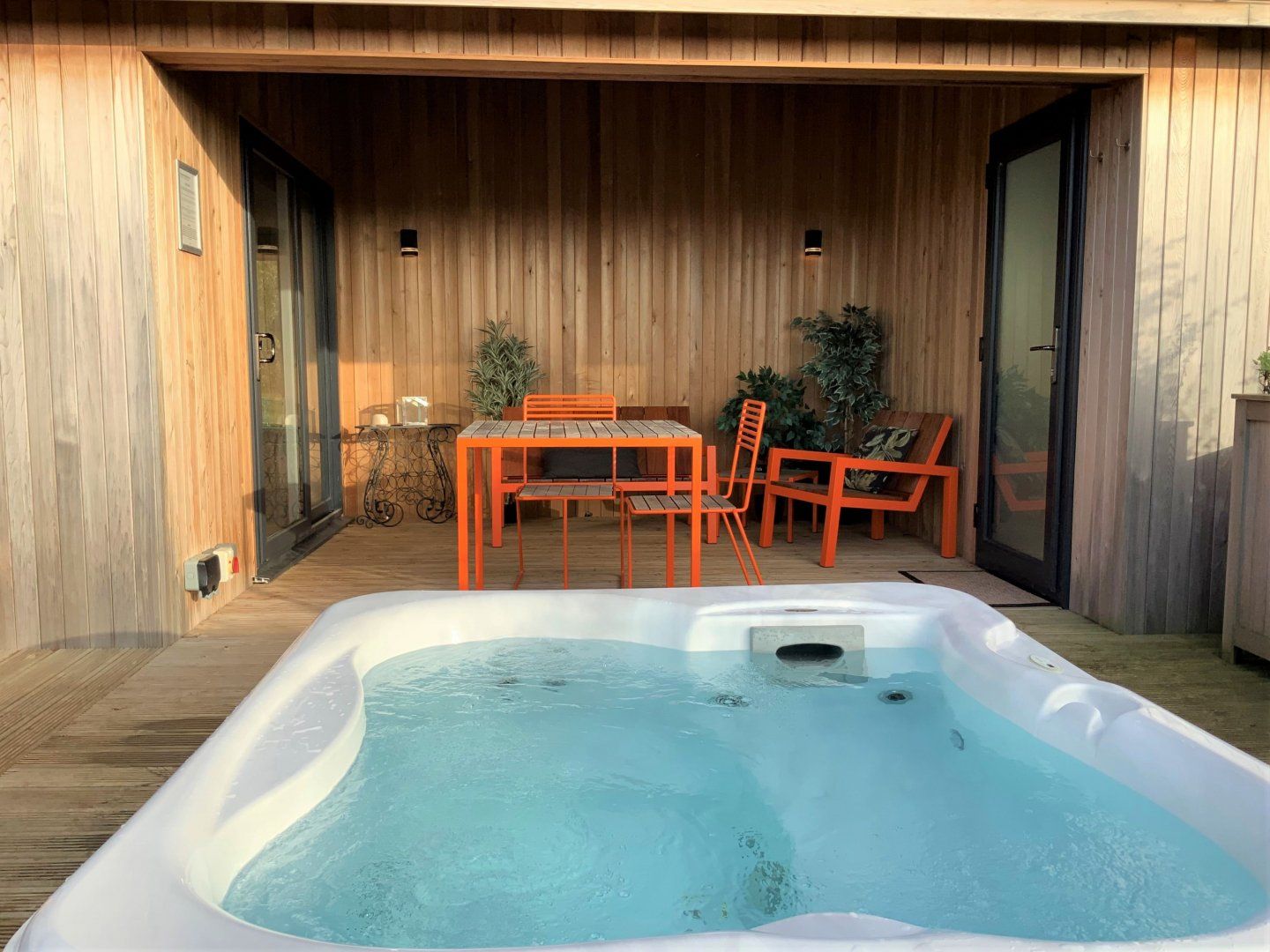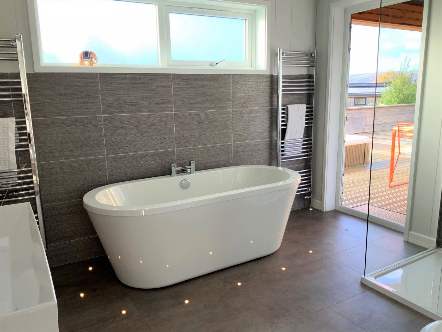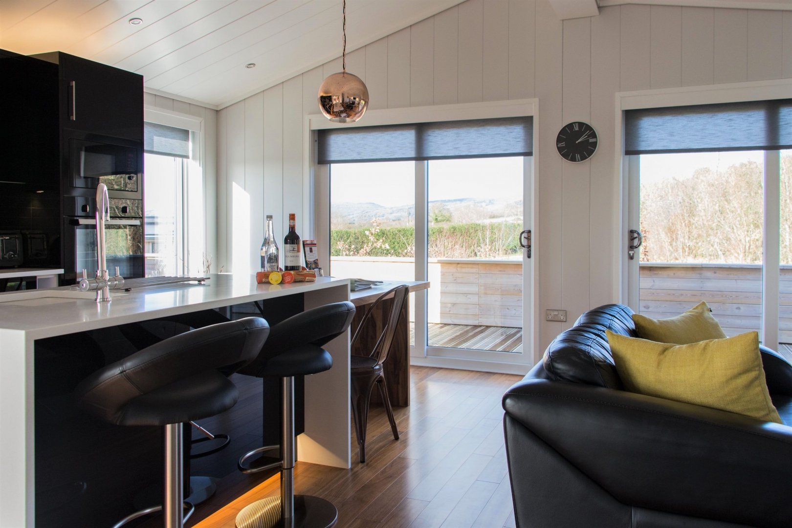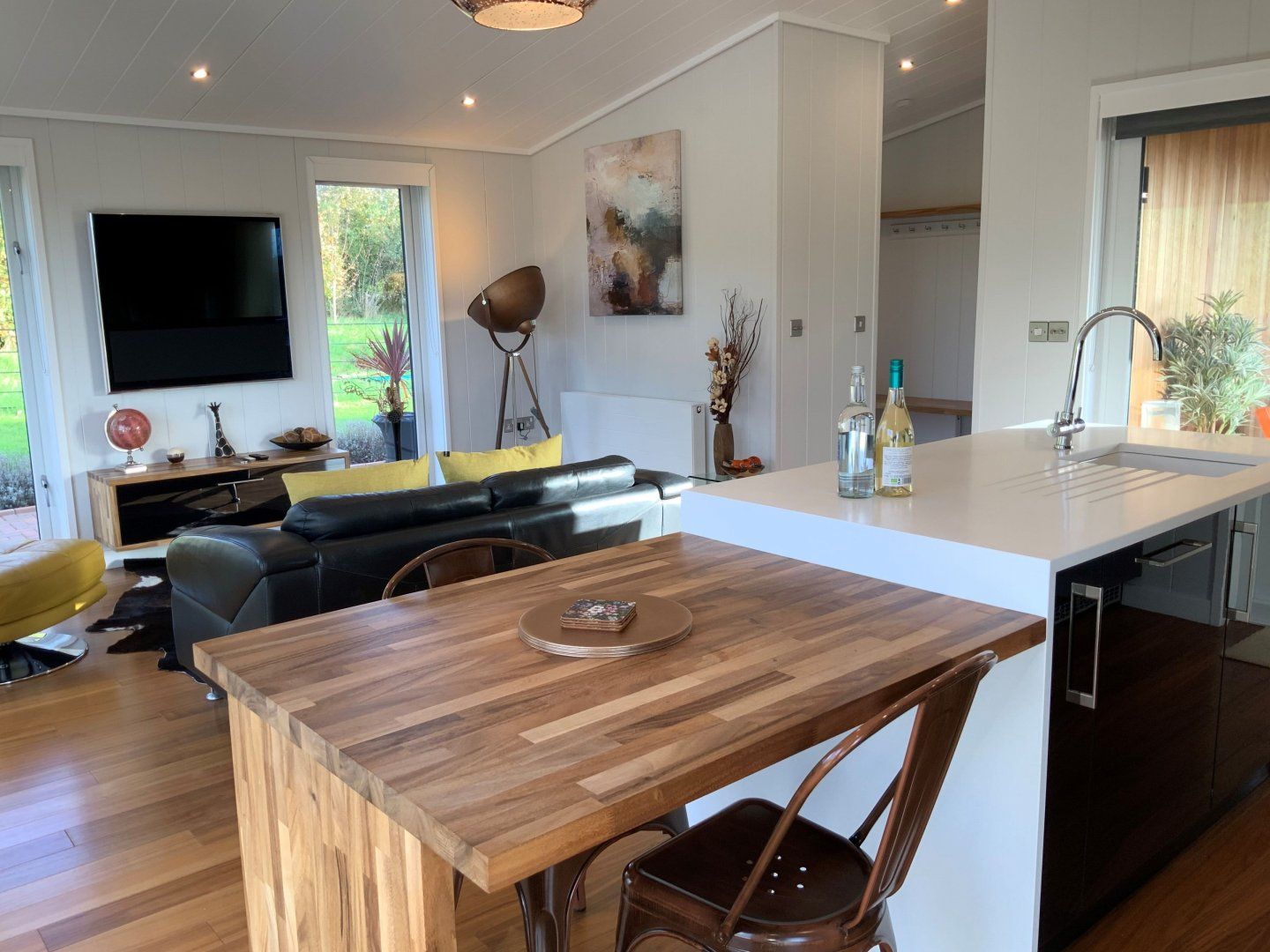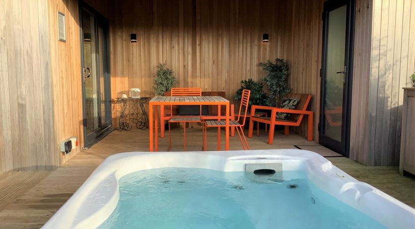 Steering clear of the traditional style of lodge homes, this place is chic and glamorous, with contemporary timber cladding, a glossy black kitchen and comfy, modern furnishings. We love the L-shaped deck, where you'll find your private hot tub and a secret covered area which comes into its at night – just wait until you switch on the starlight roof. But there's even more to love indoors, with a cosy log burner for winter stays and a fabulous bathroom with a big, freestanding bath and a walk-in rainfall shower. Perfect for couples, this place is great if you're a fan of country walks and moonlit dips (and who isn't?).