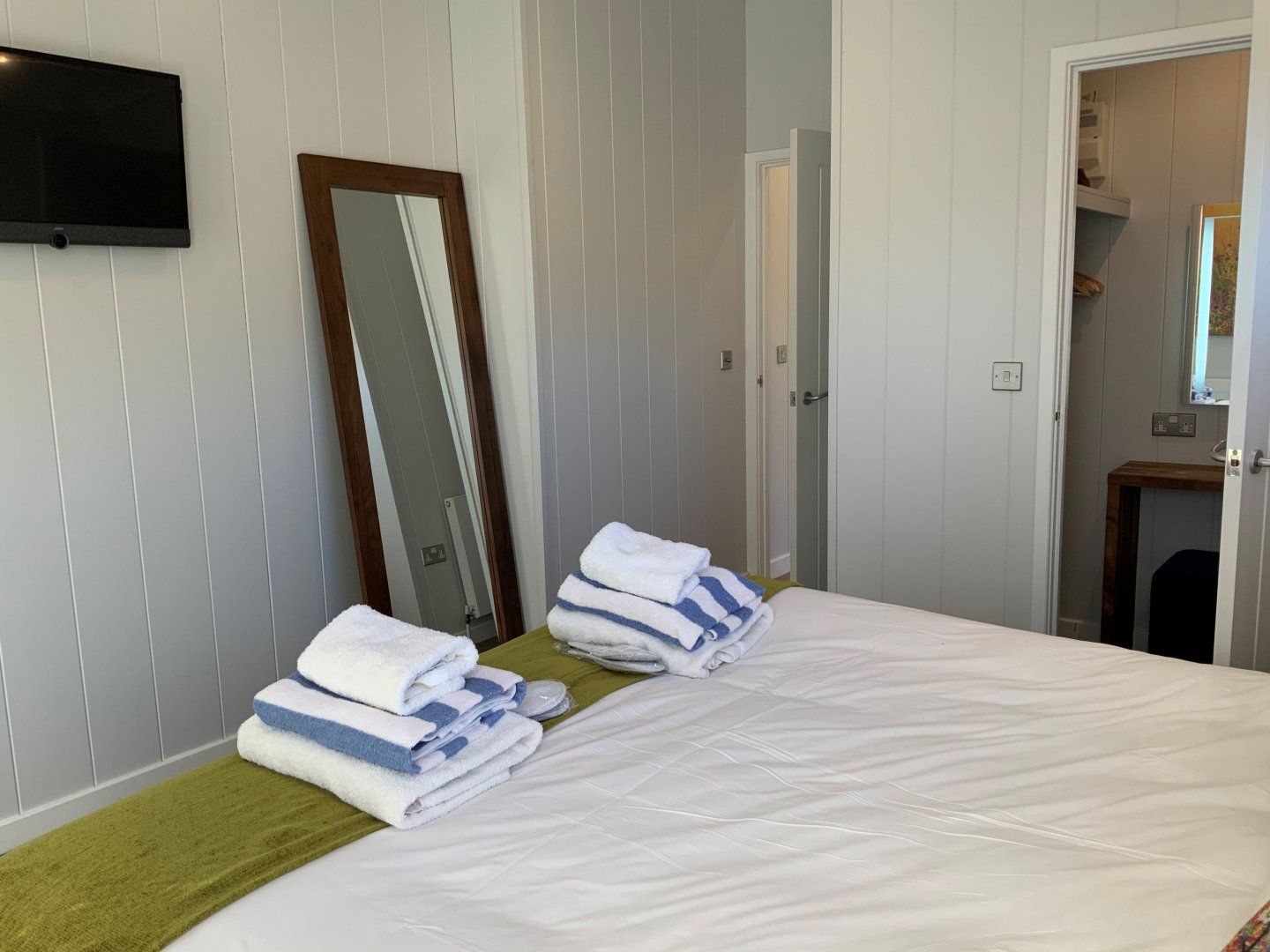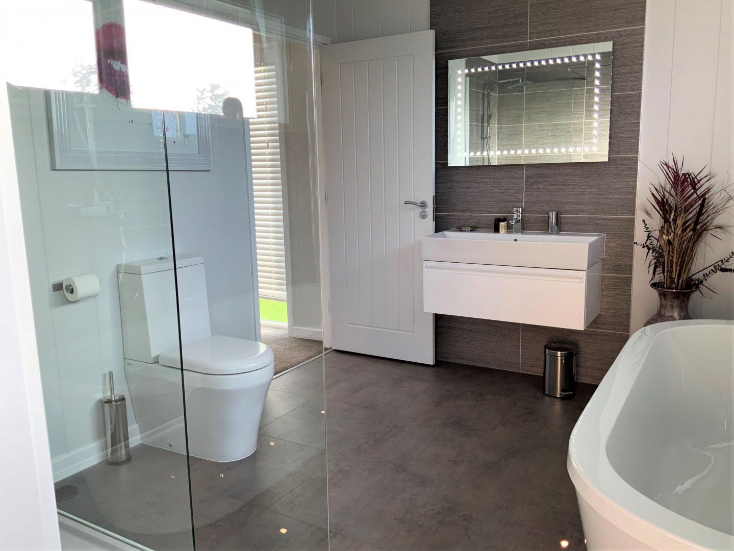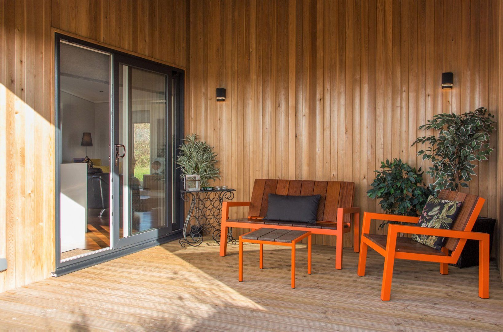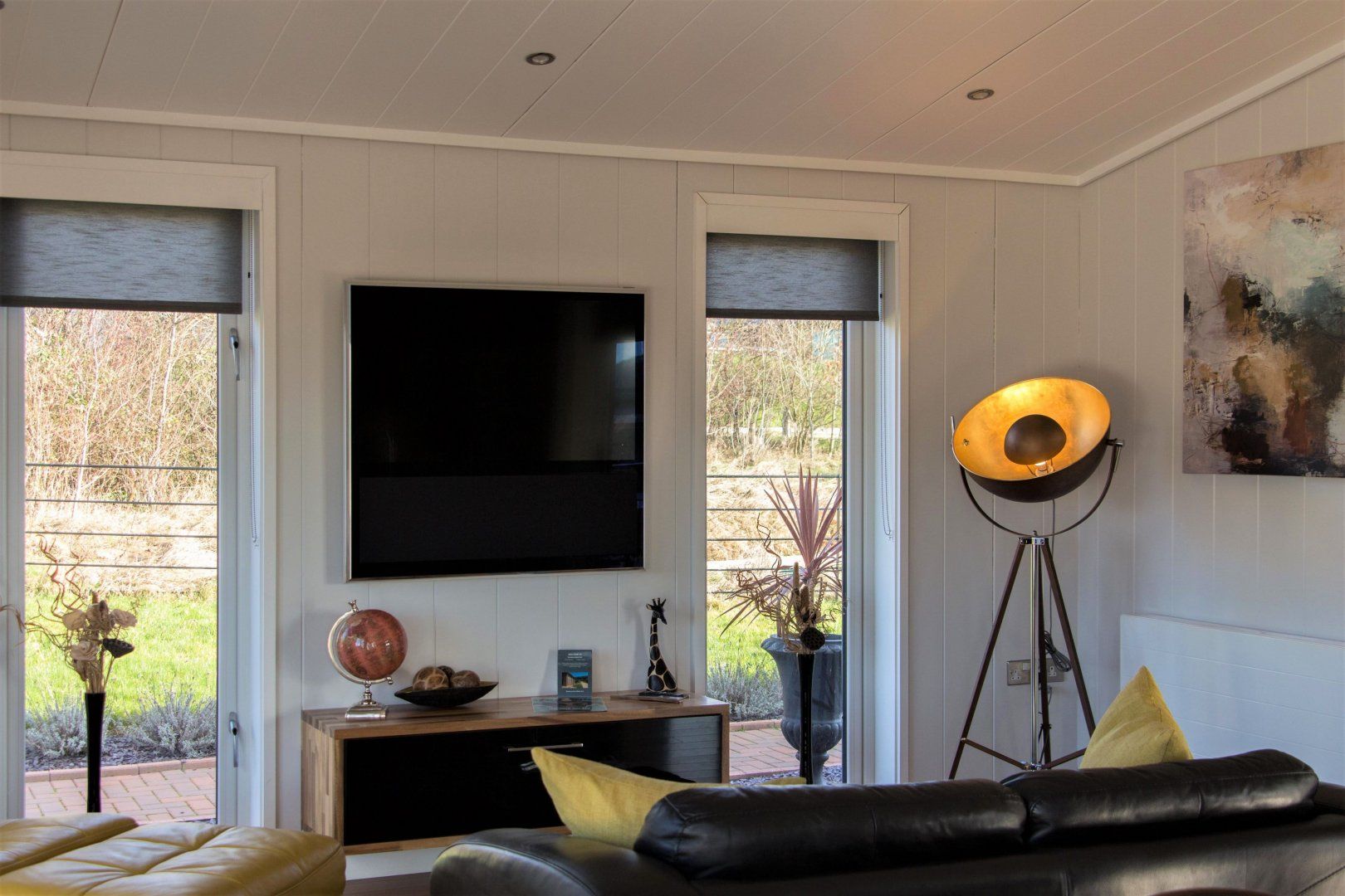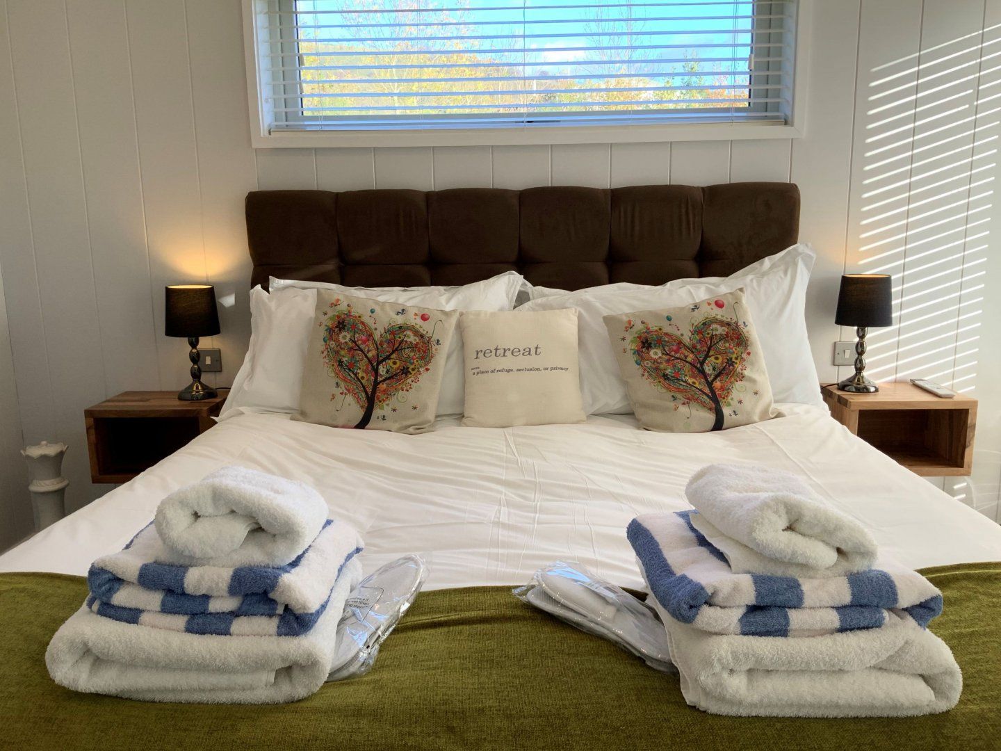 Steering clear of the traditional style of lodge homes, this place is chic and glamorous, with contemporary timber cladding, a glossy black kitchen and comfy, modern furnishings. We love the L-shaped deck, where you'll find your private hot tub and a secret covered area which comes into its at night – just wait until you switch on the starlight roof. But there's even more to love indoors, with a cosy log burner for winter stays and a fabulous bathroom with a big, freestanding bath and a walk-in rainfall shower. Perfect for couples, this place is great if you're a fan of country walks and moonlit dips (and who isn't?).