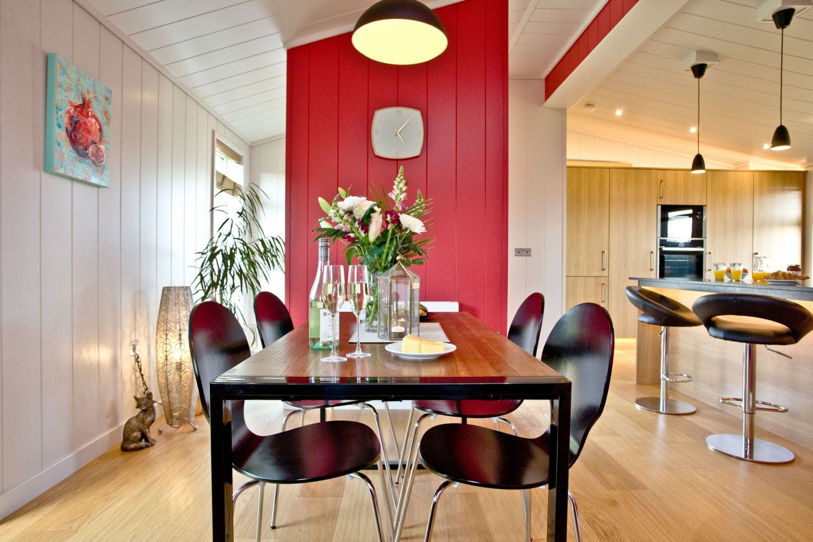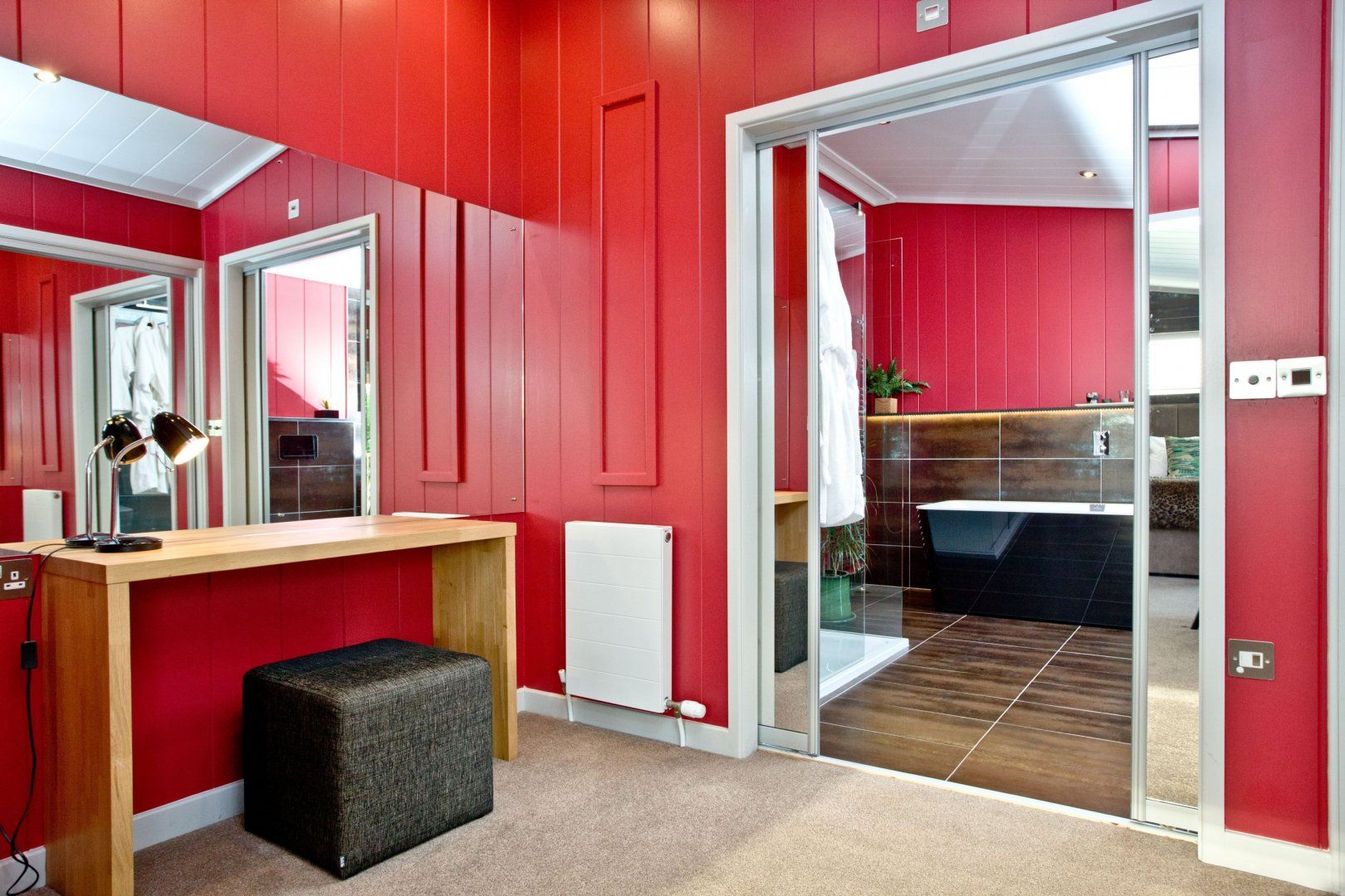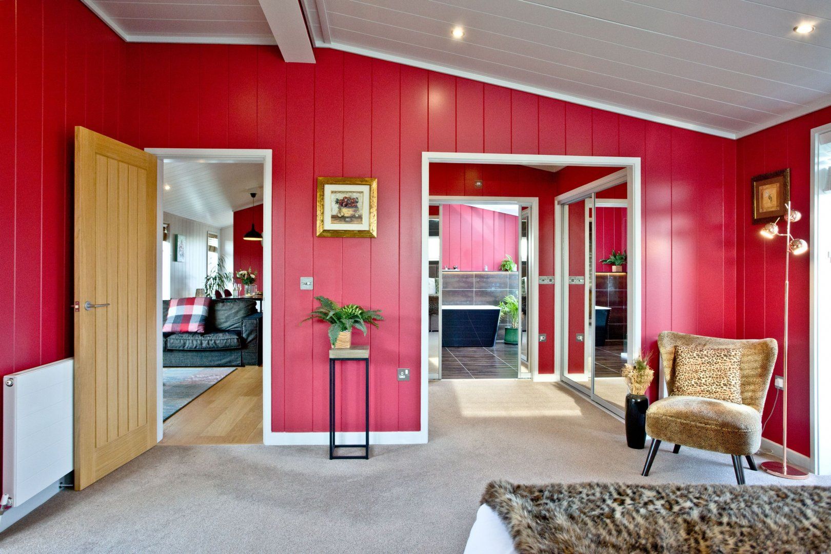 This Somerset cottage sets the tone for romance with its vibrant cherry-red walls. On sunny days, step out onto the terrace for a farm-to-table breakfast whipped up in your sleek kitchen. Spend long afternoons lounging on the decking or exploring the layers of rolling Mendip Hills that surround your cosy cabin. Take the forty-minute ramble to Cheddar and pick up a substantial wedge of its famous cheese, to be enjoyed later on with some crackers and a glass or two of wine. If you’d like to travel a little further afield, hop in the car and take the forty-five-minute drive to Bath for some retail therapy and Roman history. Head home with a bottle of the finest fizz just in time for sunset. Share it in the hot tub as the stars begin to emerge through a violet sky.