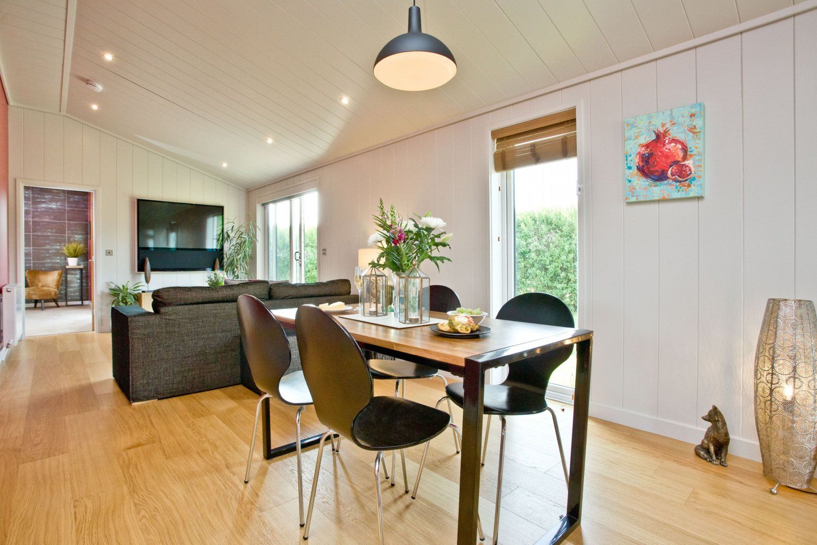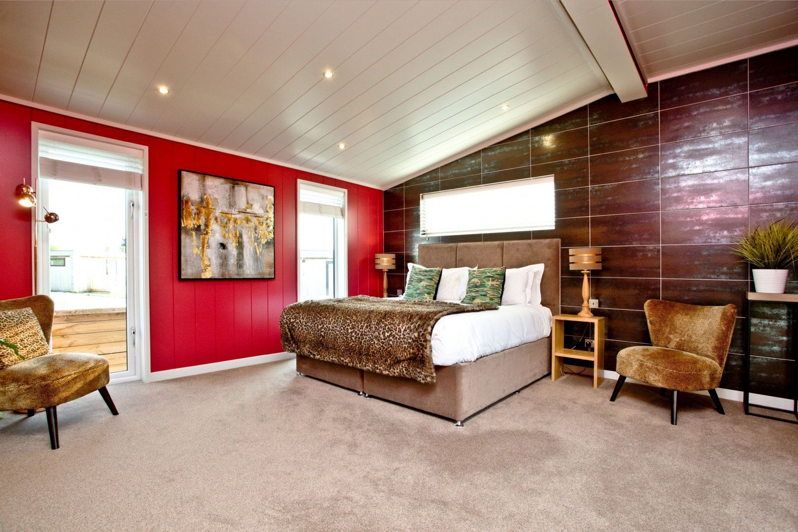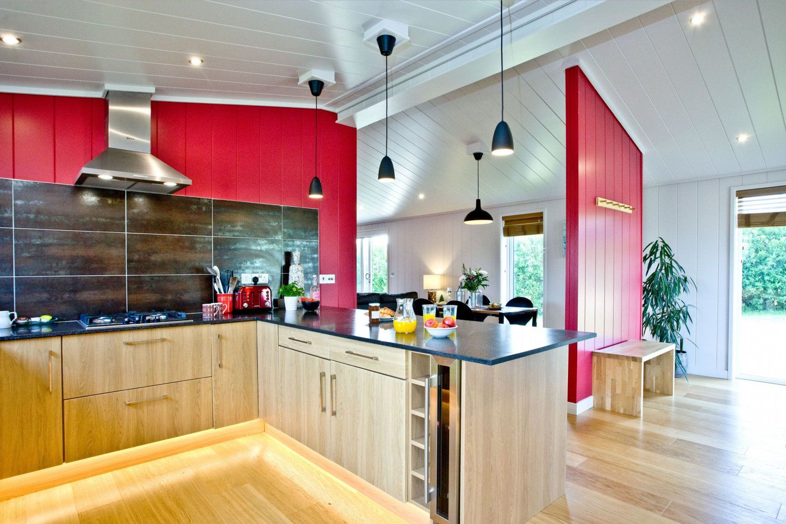 This Somerset cottage sets the tone for romance with its vibrant cherry-red walls. On sunny days, step out onto the terrace for a farm-to-table breakfast whipped up in your sleek kitchen. Spend long afternoons lounging on the decking or exploring the layers of rolling Mendip Hills that surround your cosy cabin. Take the forty-minute ramble to Cheddar and pick up a substantial wedge of its famous cheese, to be enjoyed later on with some crackers and a glass or two of wine. If you’d like to travel a little further afield, hop in the car and take the forty-five-minute drive to Bath for some retail therapy and Roman history. Head home with a bottle of the finest fizz just in time for sunset. Share it in the hot tub as the stars begin to emerge through a violet sky.