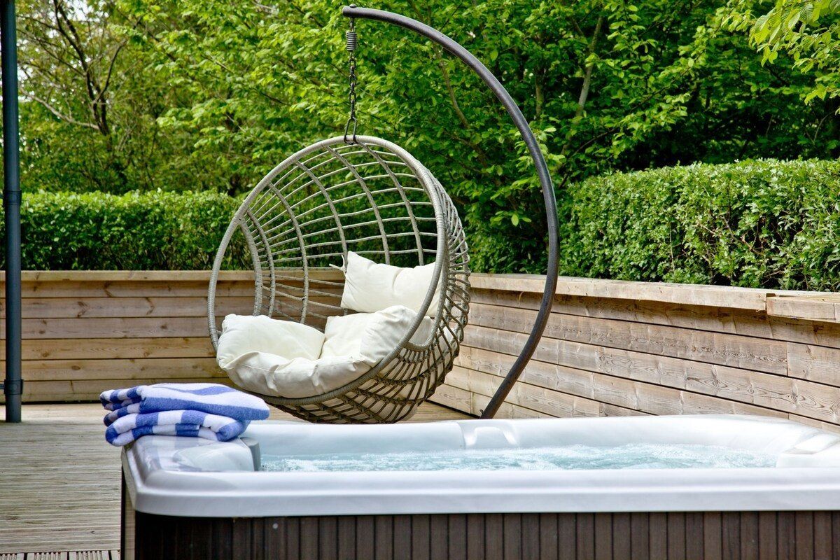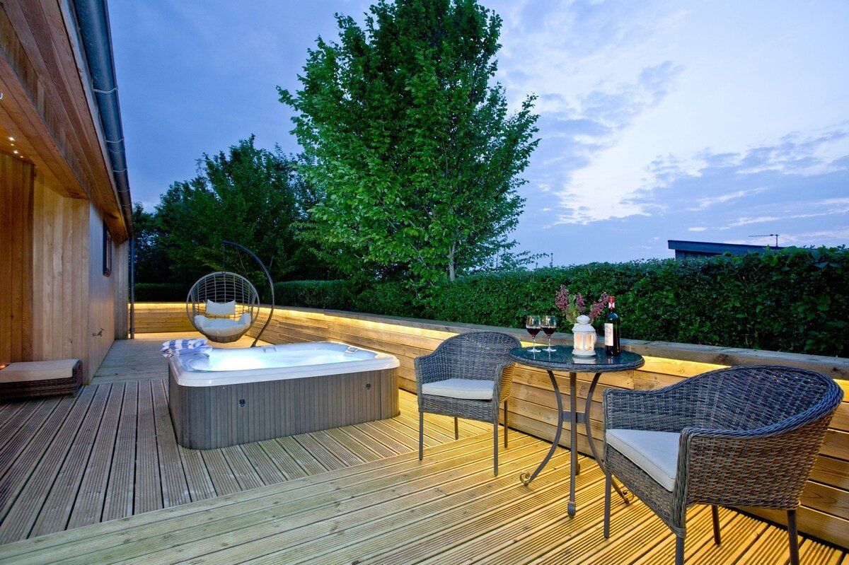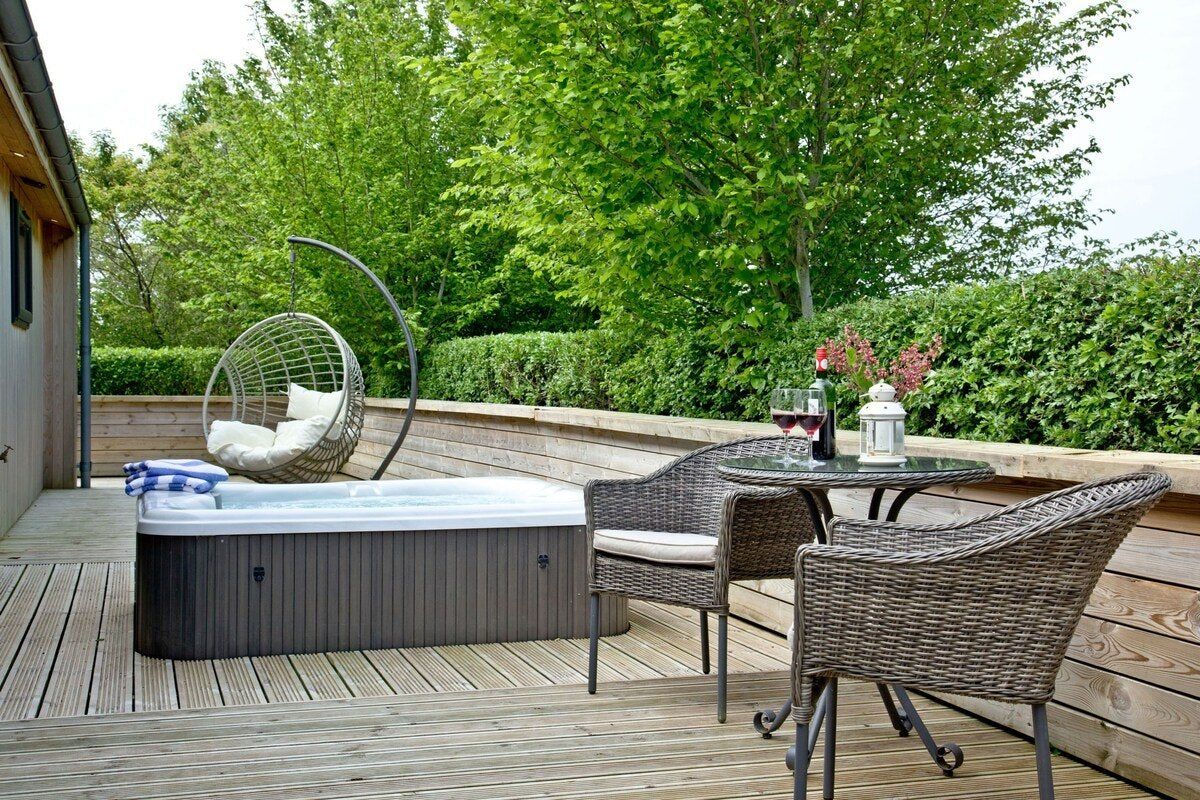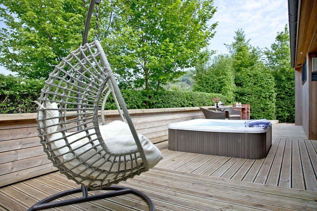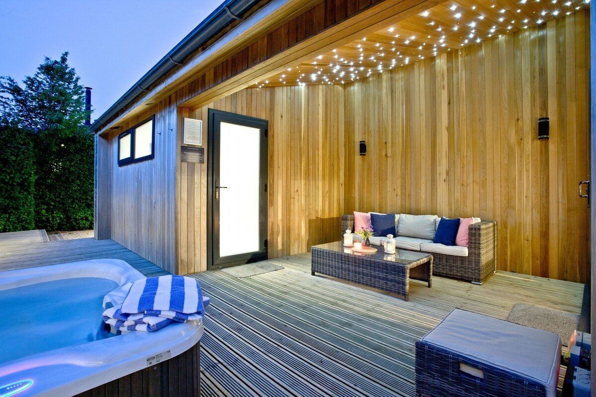 Get Cosy is a perfect little spot to escape to when you need a few days out in nature. This eco-friendly lodge, furnished with high-quality furniture and amenities is located in the heart of the Somerset countryside — far away from the hustle and bustle of any big city. The patio offers lively views and will hopefully help you decide on where to go for a walk and when you come back, soak in the jacuzzi and then cook a delicious meal in the well-equipped kitchen. The wrap-around terrace is also furnished with a barbecue and a hanging chair, so in the warmer months, most of your time will be spent outside. In the evening, make a dent in your watch list with the help of the big screen TV and then retreat to the luxurious bedroom.