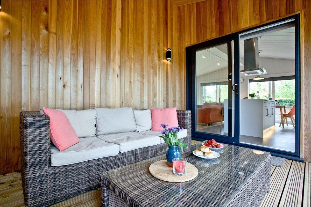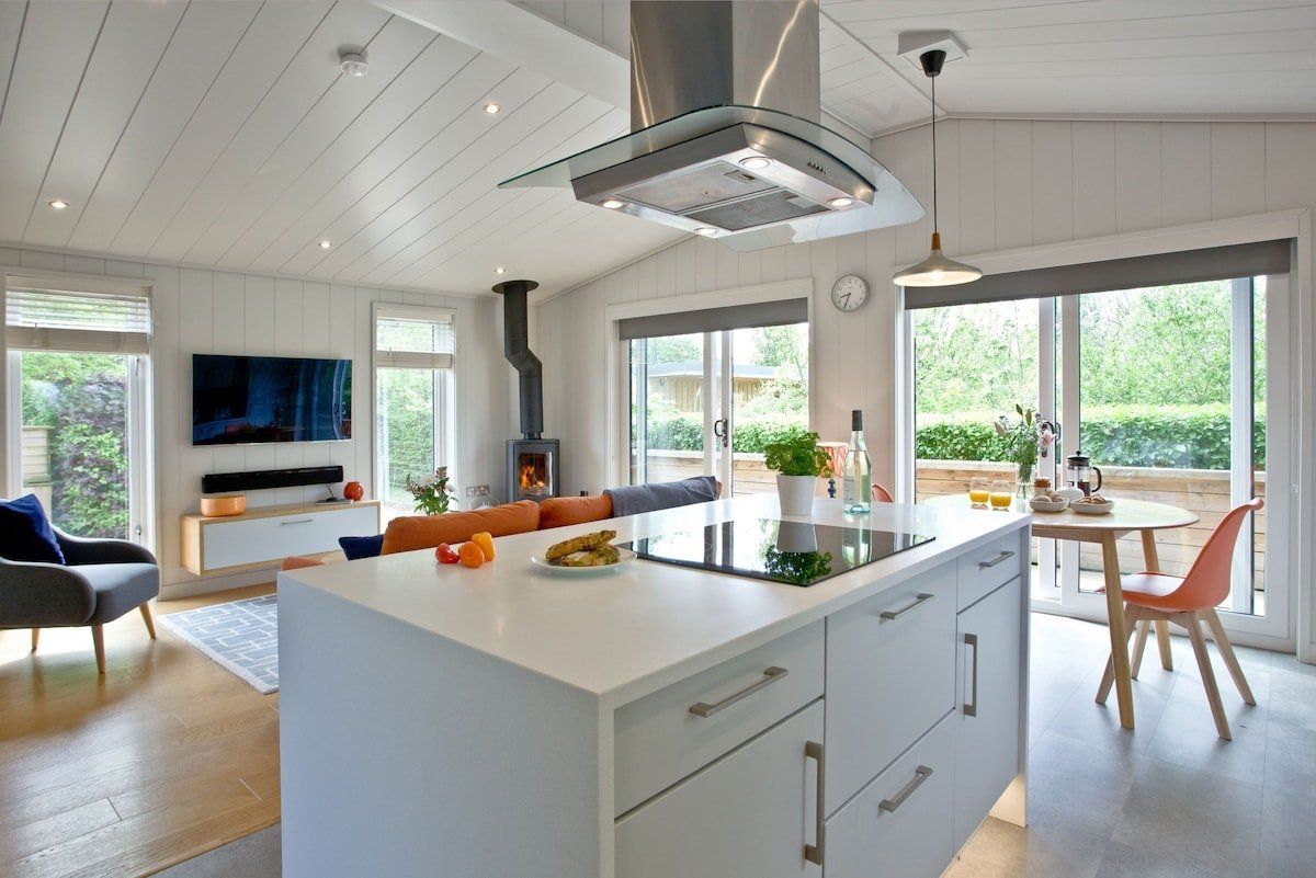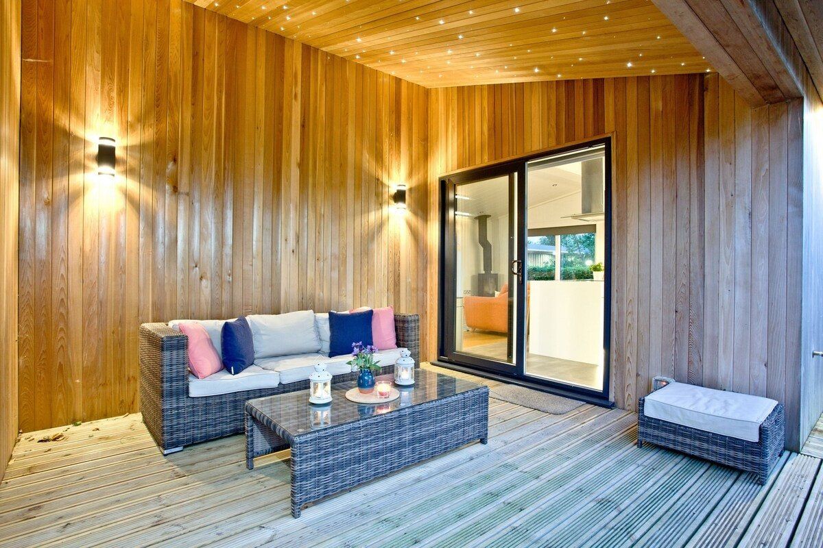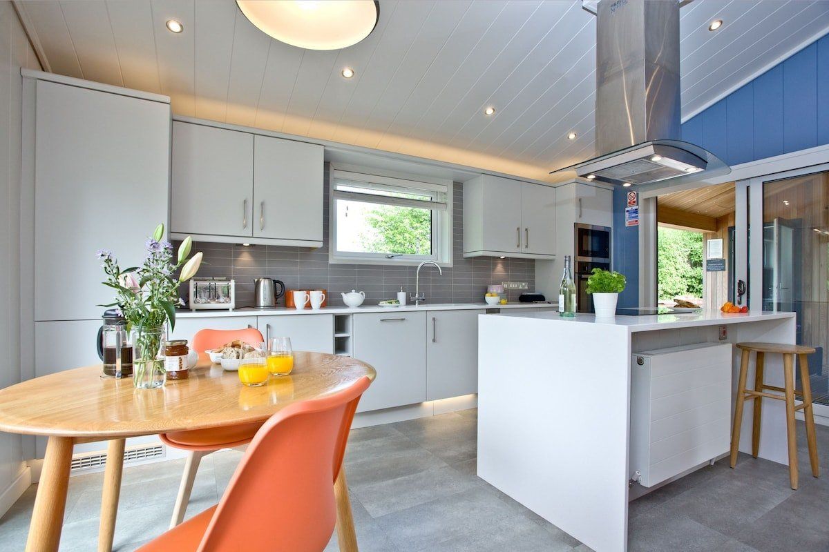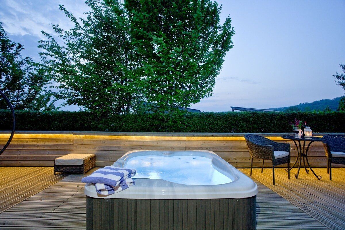 Get Cosy is a perfect little spot to escape to when you need a few days out in nature. This eco-friendly lodge, furnished with high-quality furniture and amenities is located in the heart of the Somerset countryside — far away from the hustle and bustle of any big city. The patio offers lively views and will hopefully help you decide on where to go for a walk and when you come back, soak in the jacuzzi and then cook a delicious meal in the well-equipped kitchen. The wrap-around terrace is also furnished with a barbecue and a hanging chair, so in the warmer months, most of your time will be spent outside. In the evening, make a dent in your watch list with the help of the big screen TV and then retreat to the luxurious bedroom.