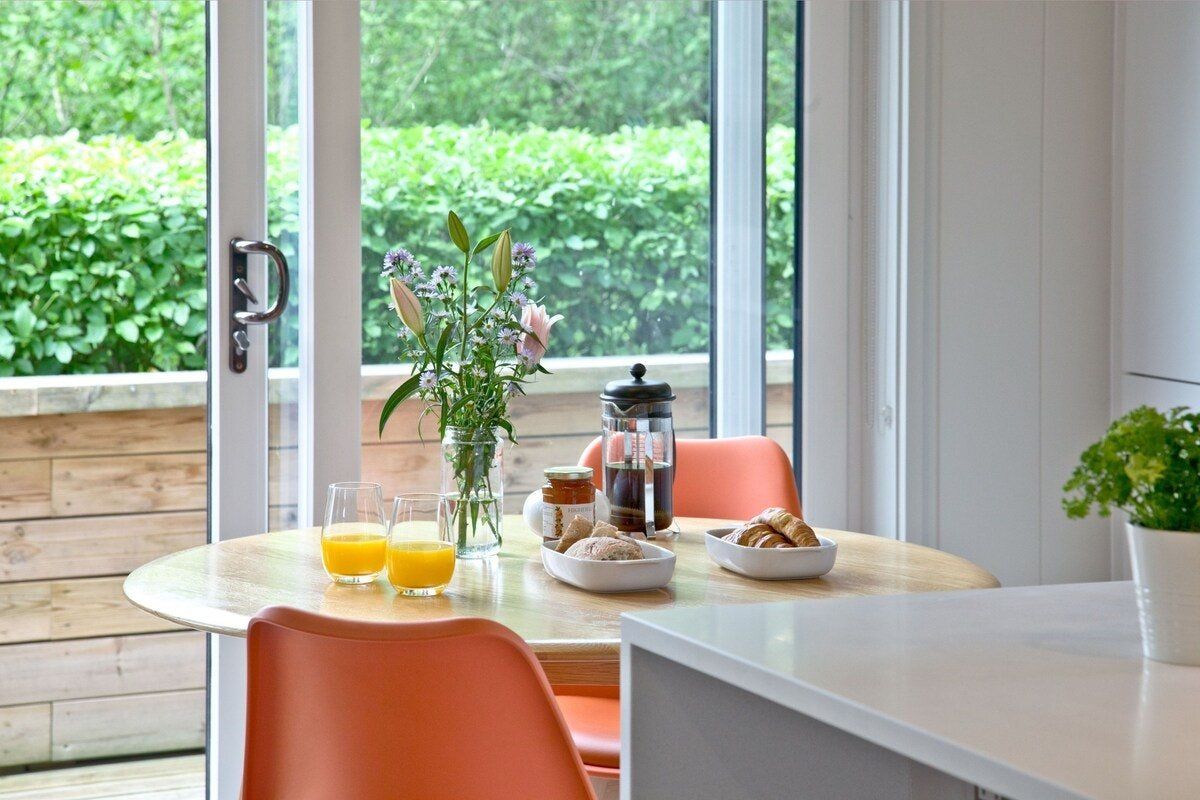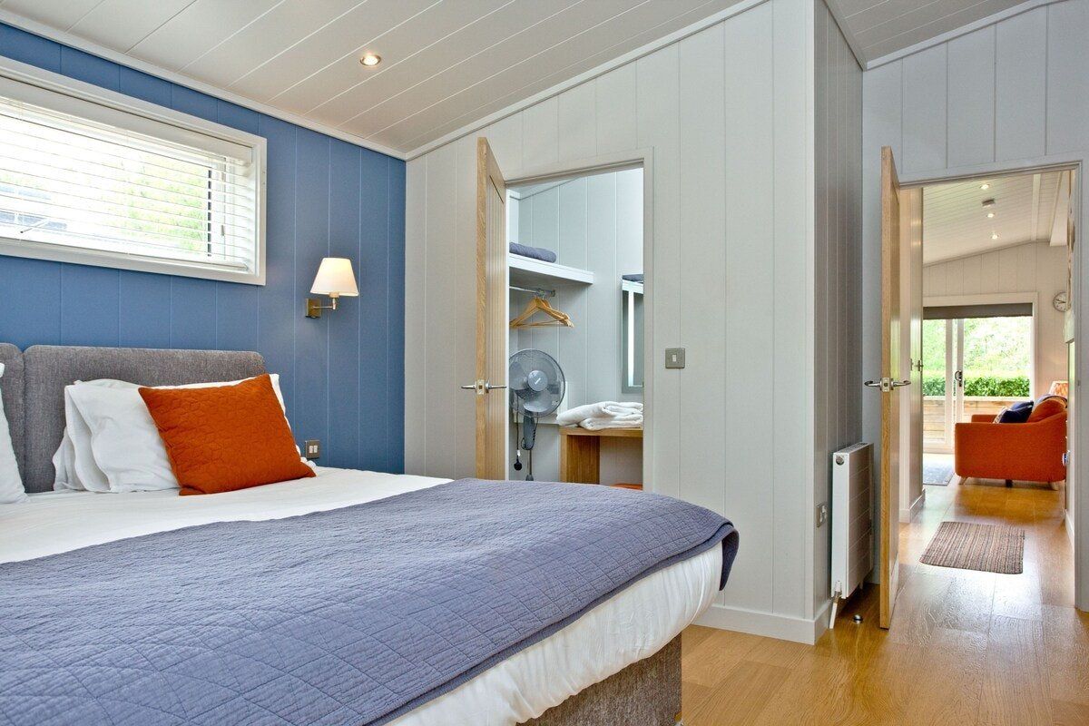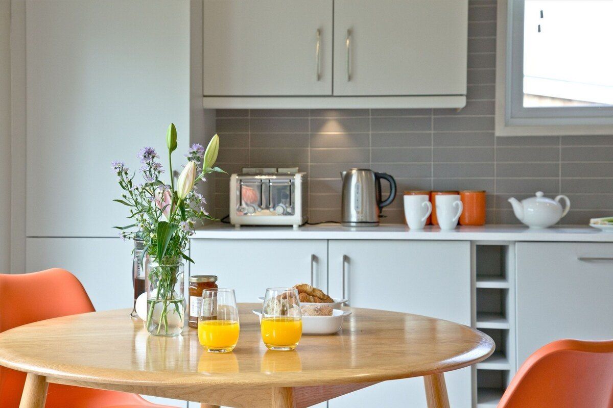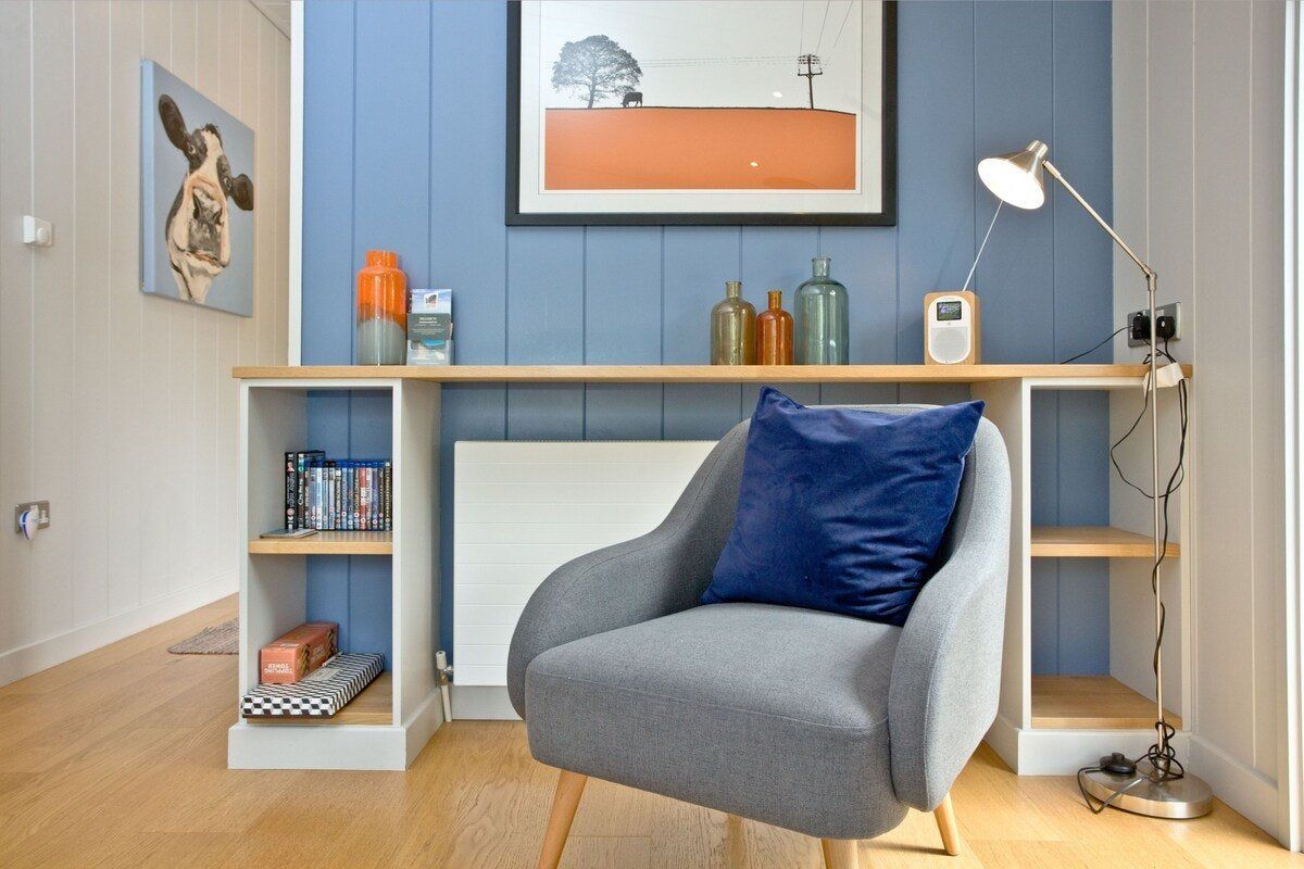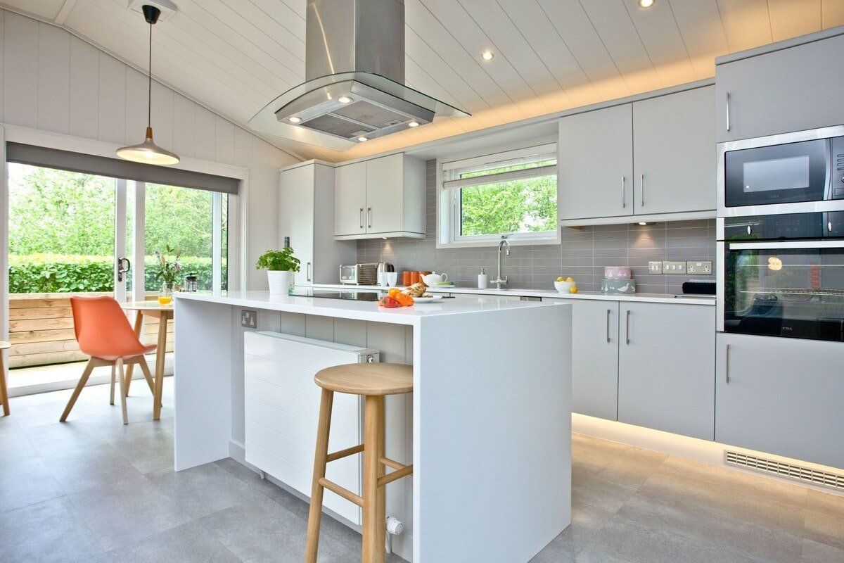 Get Cosy is a perfect little spot to escape to when you need a few days out in nature. This eco-friendly lodge, furnished with high-quality furniture and amenities is located in the heart of the Somerset countryside — far away from the hustle and bustle of any big city. The patio offers lively views and will hopefully help you decide on where to go for a walk and when you come back, soak in the jacuzzi and then cook a delicious meal in the well-equipped kitchen. The wrap-around terrace is also furnished with a barbecue and a hanging chair, so in the warmer months, most of your time will be spent outside. In the evening, make a dent in your watch list with the help of the big screen TV and then retreat to the luxurious bedroom.