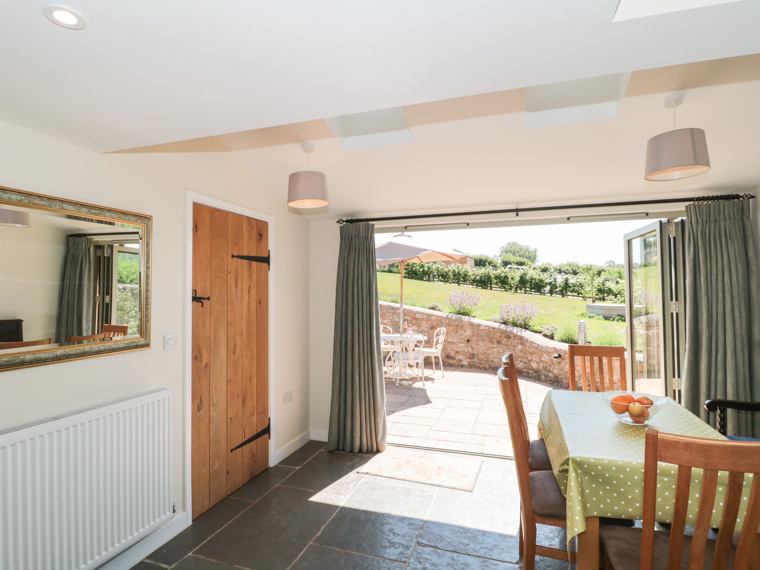 Holiday home Two bedrooms: 1 x super-king-size (zip/link, can be twins on request) with freestanding bath, separate WC and basin, 1 x super-king-size (zip/link, can be twins on request). Wet room with walk-in shower, basin and WC. Open-plan living space with kitchen, dining and sitting area. Woodburner with a basket of logs and firelighters provided. Electric central heating. Electric oven and hob, microwave, fridge/freezer. Dishwasher, washing machine. Fibre optic Wifi and Smart TV for guests who have Netflix/iplayer accounts, please log out before departure. Fuel and power, bed linen and towels inc. in rent. Welcome pack inc Somerset bread, butter, Wookey Hole mature Cheddar cheese. Ample off-road parking for four cars. Enclosed patio and lawned garden with furniture. Surrounding fields have cows and sheep. One well-behaved dog welcome. Please enquire first if you have a second dog. Sorry, no smoking. Shop 2 miles, pub 0.5 miles. Please note: There is a drop from the garden to the patio beneath. Please note: there is live stock in the fields around the property