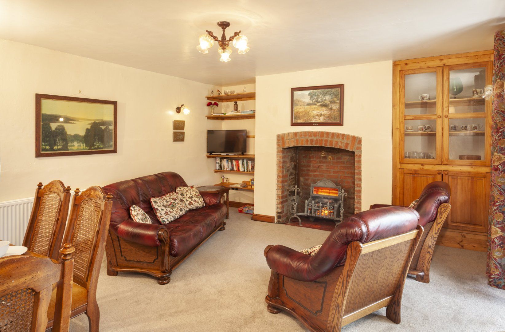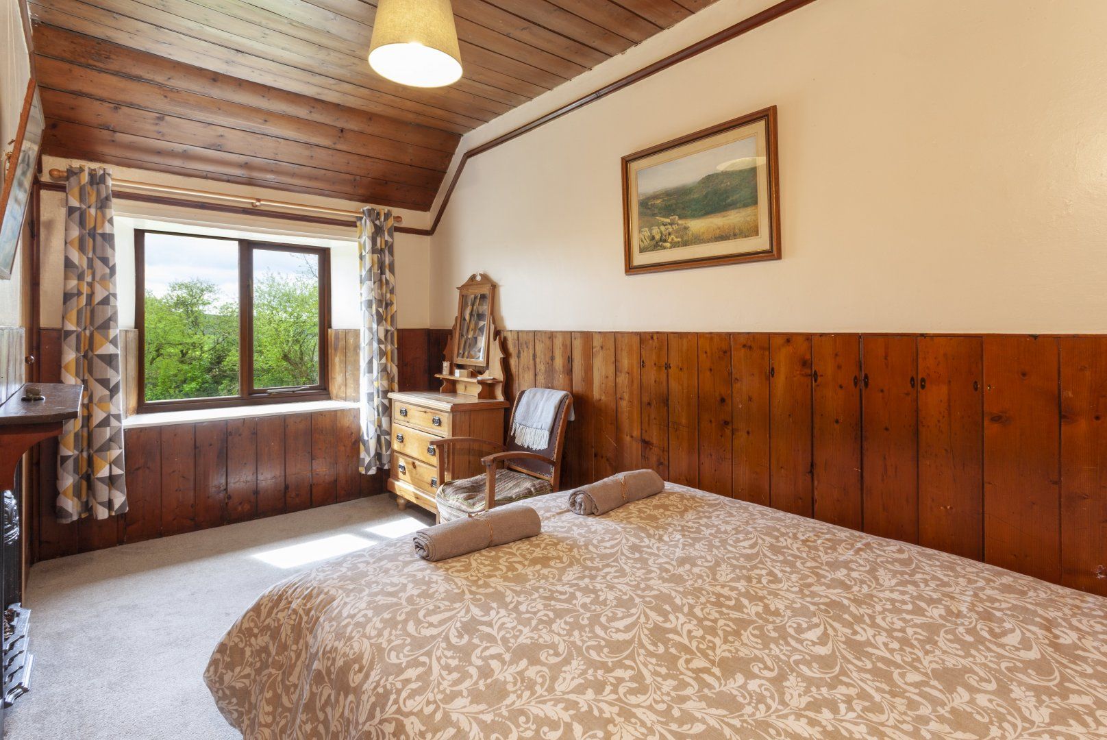 The ground floor level includes the comfortable sitting room with electric wood burner effect fire perfect for cosy evenings in. The kitchen has a traditional oil-fired Rayburn as well as an electric oven with hob, microwave, fridge, dishwasher, toaster, kettle and cafetiere plus plenty of cupboard space, and a selection of cookware, crockery, cutlery and glassware. To the front of the property is a small conservatory with comfortable seating overlooking and leading out to the garden, an ideal spot to relax and enjoy a good book. The ground floor bathroom comprises walk in electric shower, hand basin and toilet.