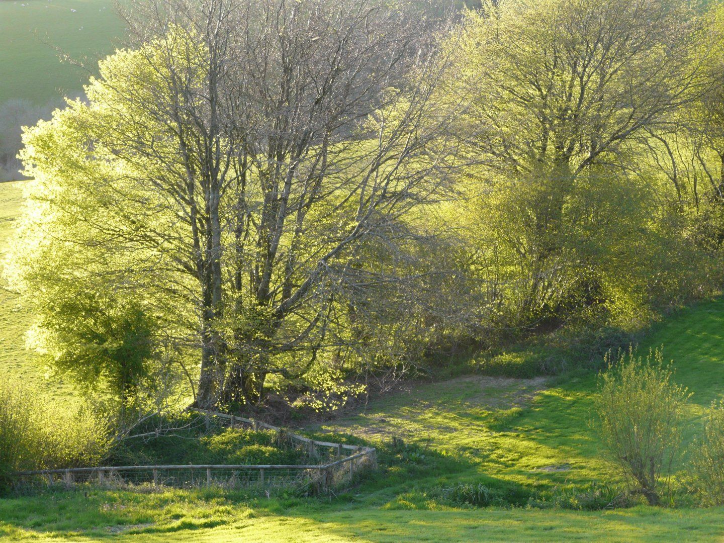 Large enclosed gardens (ideal for dogs!) with sloped lawns, pond, table, chairs, and benches, and far-reaching, west-facing views—sometimes of spectacular sunsets!