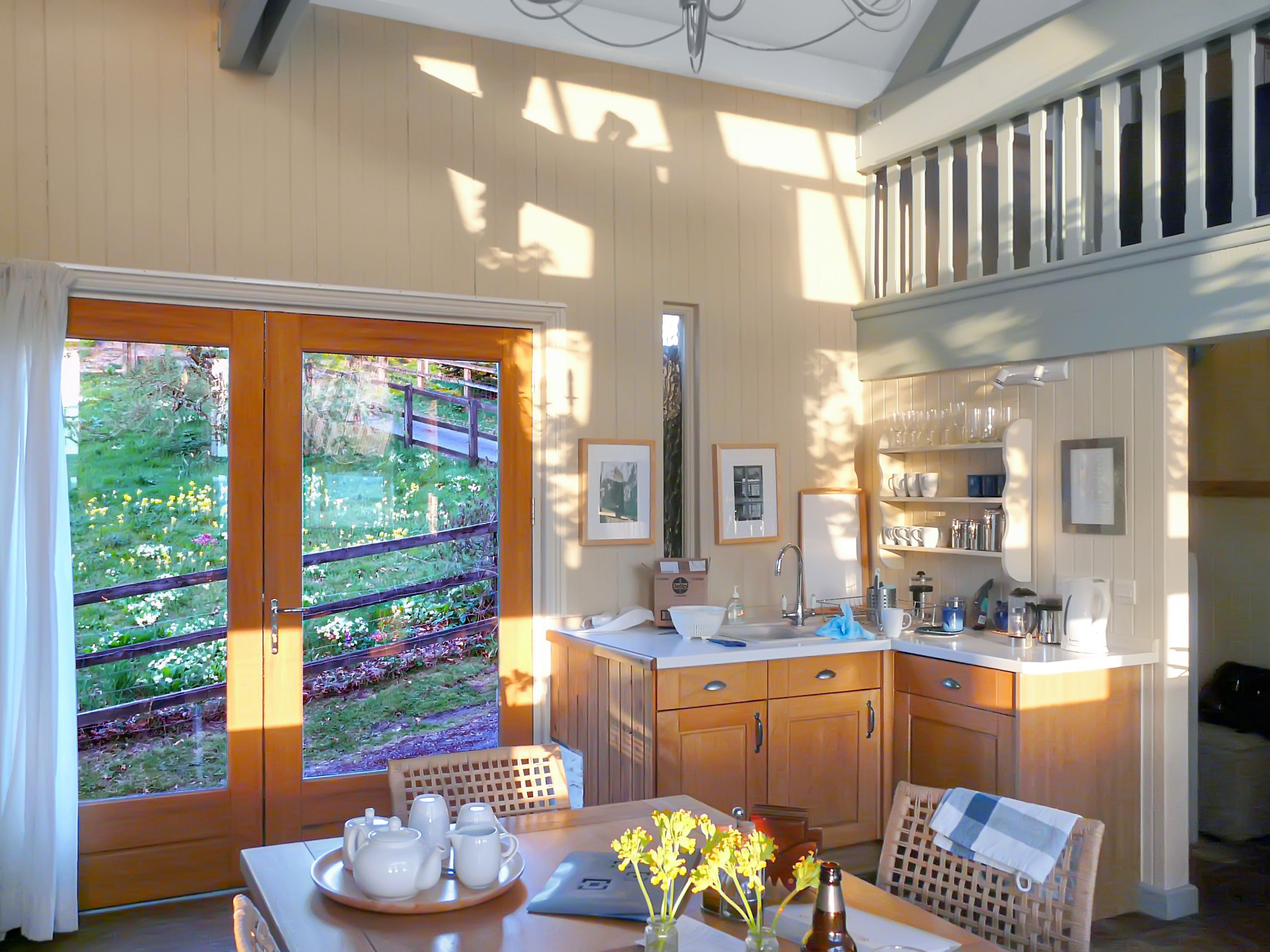 For those with restricted mobility, this barn can offer space and easy access to all amenities, though wheelchairs would not be possible. There is one step between bedroom and living area. The conservatory is another step down, but has wide open double doors giving a complete view of the landscape from the living room level.