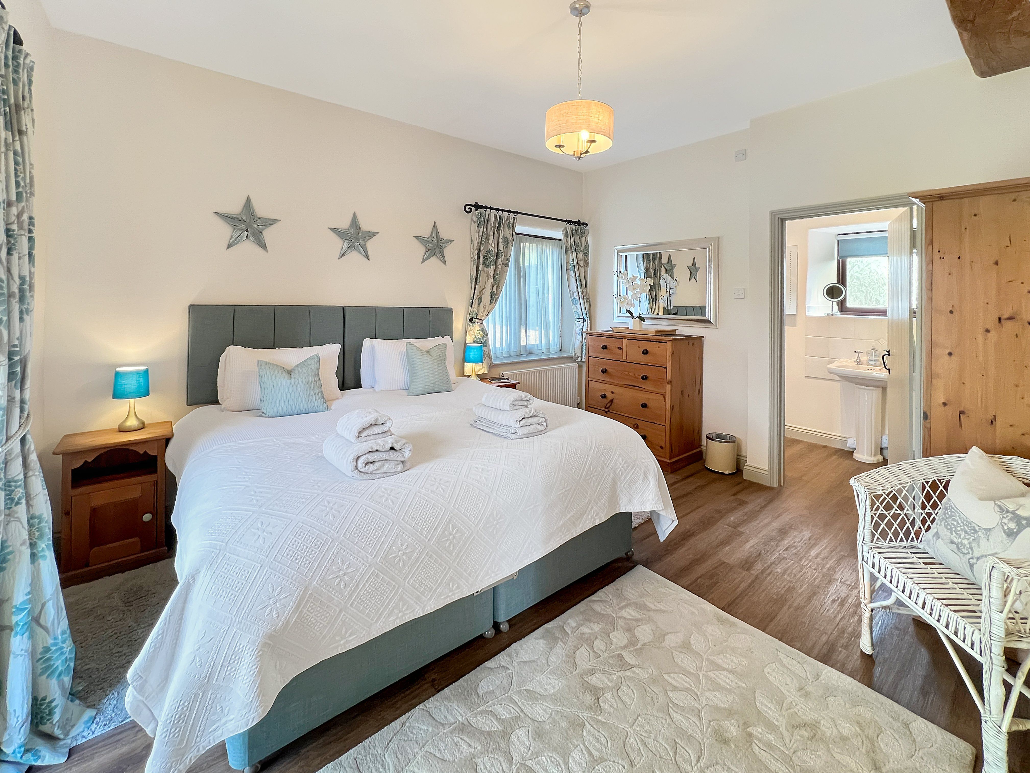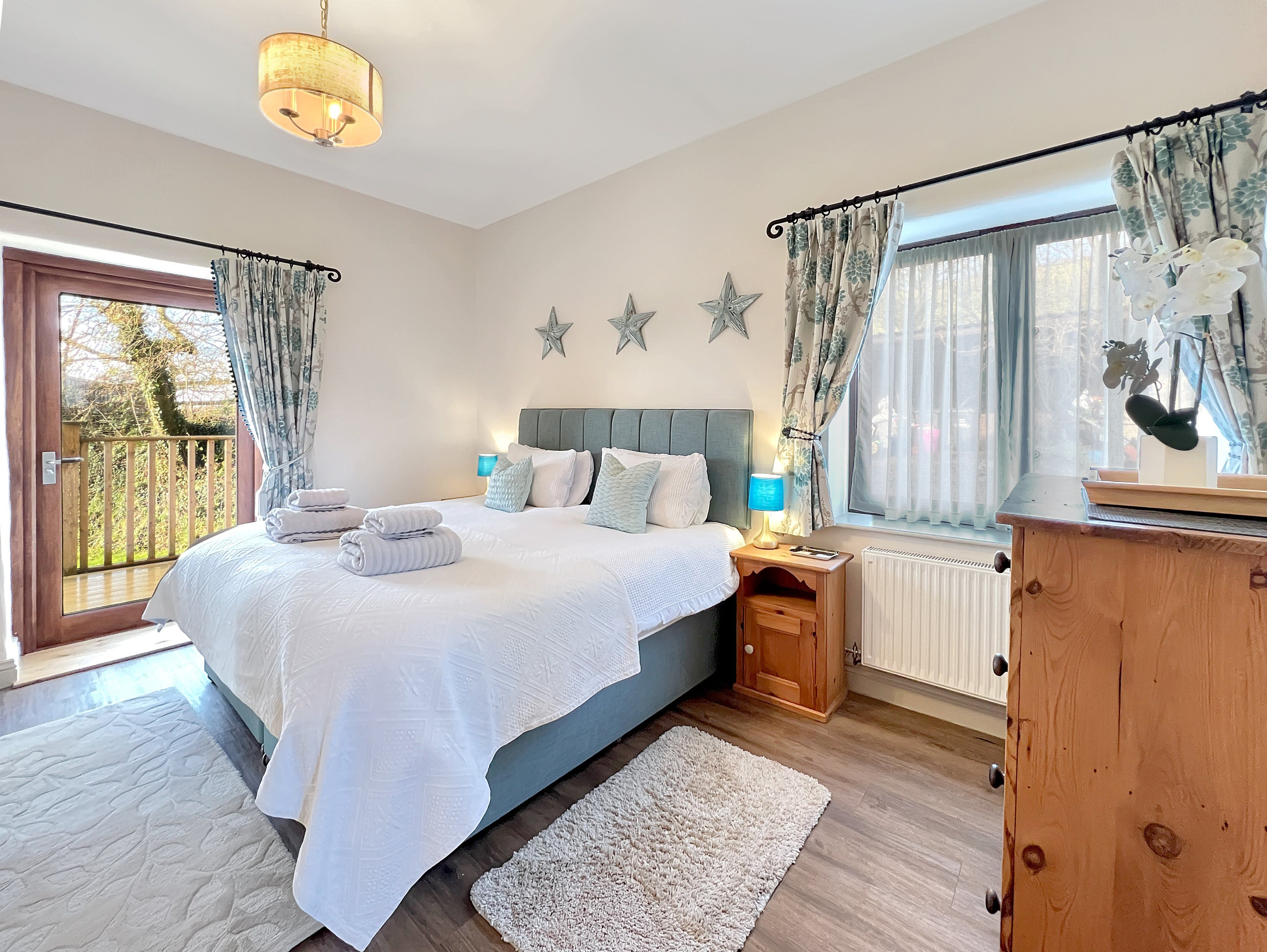 There is plenty of room in the bedroom for a travel cot (available on request provided).