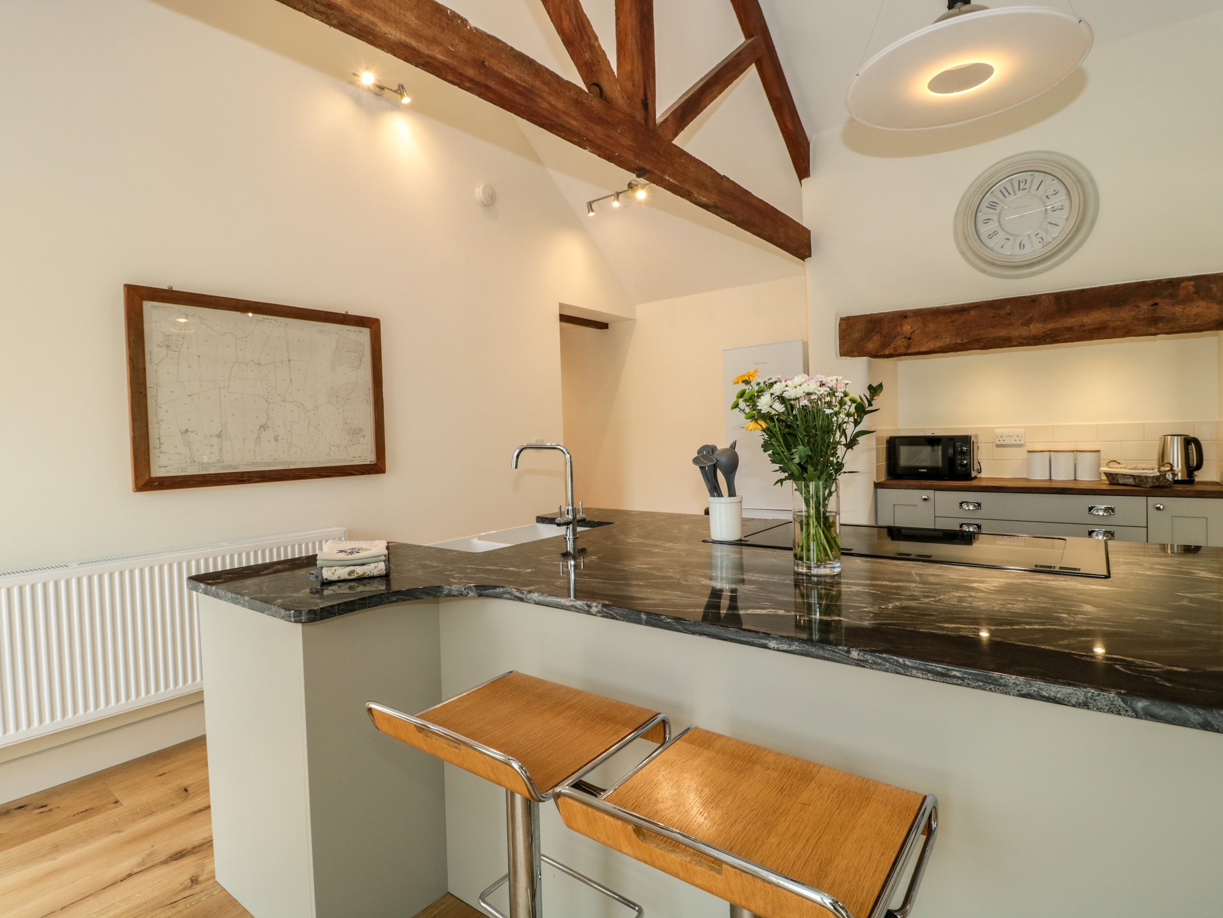 Tom's Barn is a delightsome detached barn conversion resting in Mudford Sock near Yeovil, Somerset. Hosting two bedrooms, including a king-size with a Smart TV and a twin with a Smart TV, along with a bathroom, this property can sleep up to four guests. There is also an open-plan living space with kitchen, dining area and sitting area. Outside there is off-road parking for two cars and a enclosed rear lawn with furniture, as well as an enclosed front garden with gravelled area, patio and furniture. For your next countryside getaway to Somerset, choose Tom's Barn.